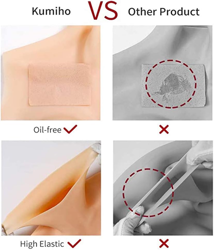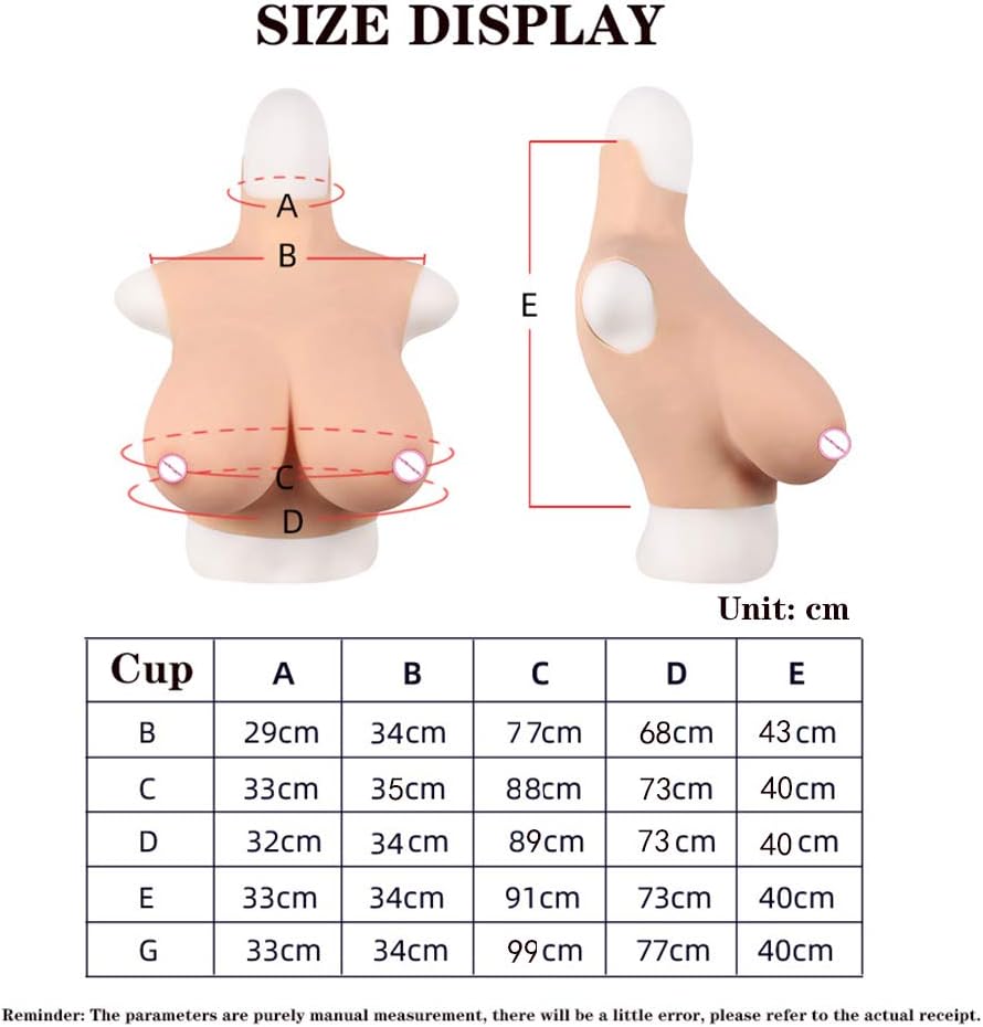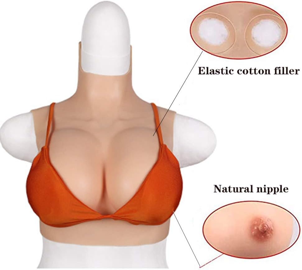 Imbottitura: imbottitura in cotone elastico, non si sforma, è più leggera e ha un'elevata elasticità. Progettata in base alle curve del corpo, non si sposta, ha una forte sensazione di scuotimento e la sensazione al tatto è più realistica. Aggiornamento: il nostro prodotto è realizzato in gel di silice medicale con maggiore morbidezza, ha proprietà di rimbalzo della memoria e le pieghe possono essere riparate automaticamente, è più morbido rispetto alla generazione precedente e può offrirti un'esperienza d'uso autentica. Adatto per occasioni speciali: travestitismo, cross dresser, travestito, attore, trans, pittura, fotografia, oggetti di scena e per persone di diverso colore della pelle. Morbida al tatto e movimento: offrono il naturale rimbalzo e la vibrazione dei seni veri e hanno una buona elasticità. Valorizzano e migliorano la tua immagine. Ben progettato: molto morbido, con macchie rosse, clavicola molto evidente, più elastico, il seno non si sgonfia, asciutto e facile da pulire. Design del collo alto migliorato, questo è più pratico e il colletto si adatta perfettamente al collo.