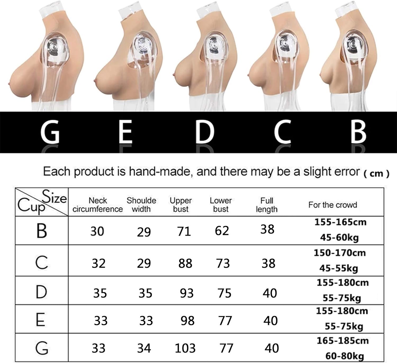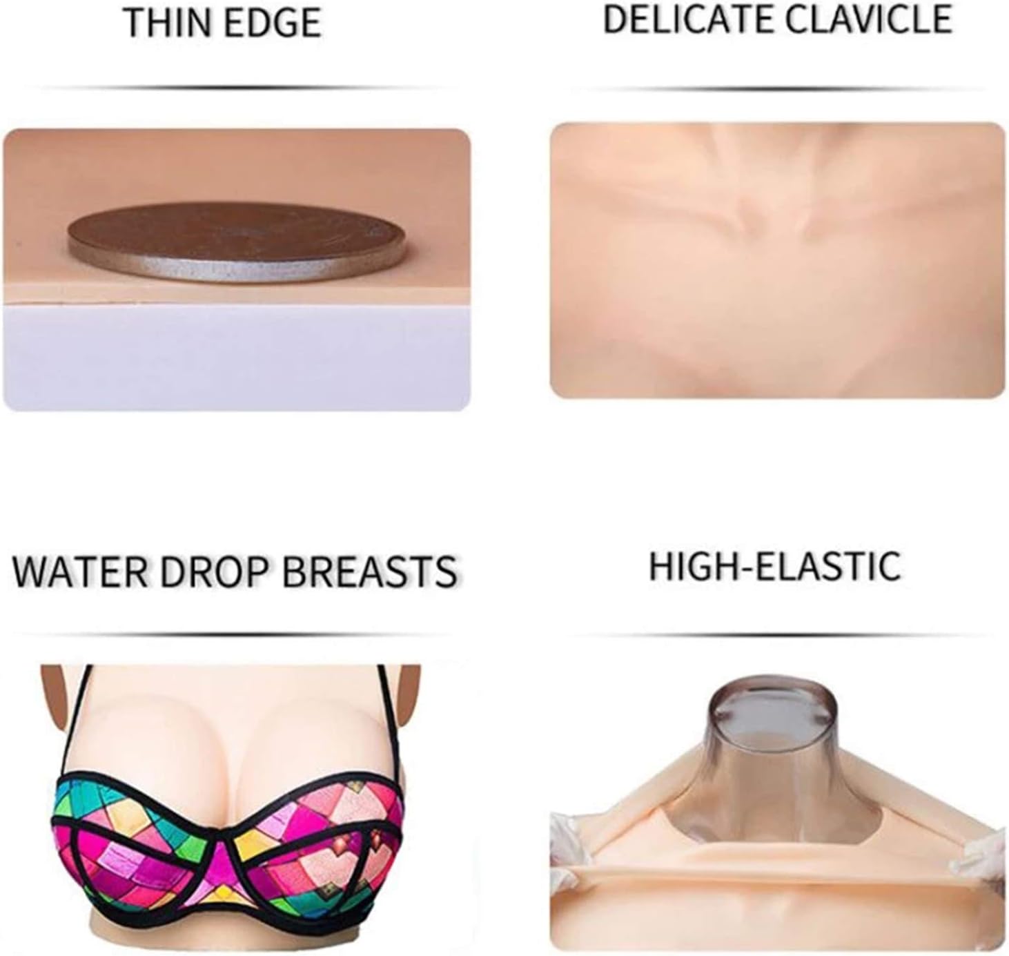 [Caratteristica] Può essere allungato al 150%, riempitivo in filo di seta, forma, linea della clavicola chiara e dritta, tocco come un vero essere umano. [Qualità alimentare] I bordi sono gradualmente più sottili, comodi, elastici, non appiccicosi, morbidi, la mano è morbida e liscia e il tocco è reale. [Privacy]È disponibile una scatola speciale per proteggere la privacy, nessuno può sapere cosa c'è dentro. [Colletto alto] Con l'impostazione del colletto alto non dovrai più preoccuparti di rivelare il tuo segreto quando indossi abiti con il colletto basso. [Persone adatte] Abbigliamento da travestitismo da uomo a donna, come crossdresser, ladyboy, travestitismo, cosplayer o donne ecc.