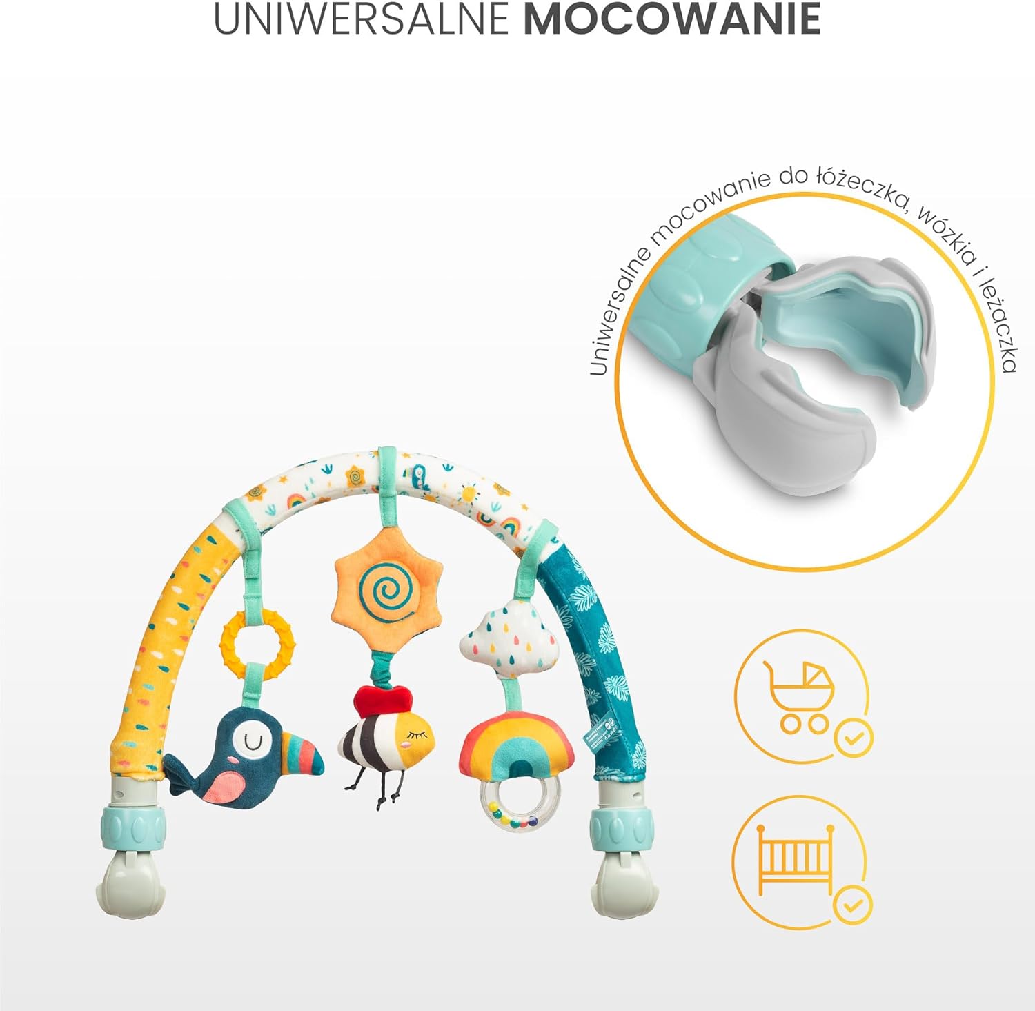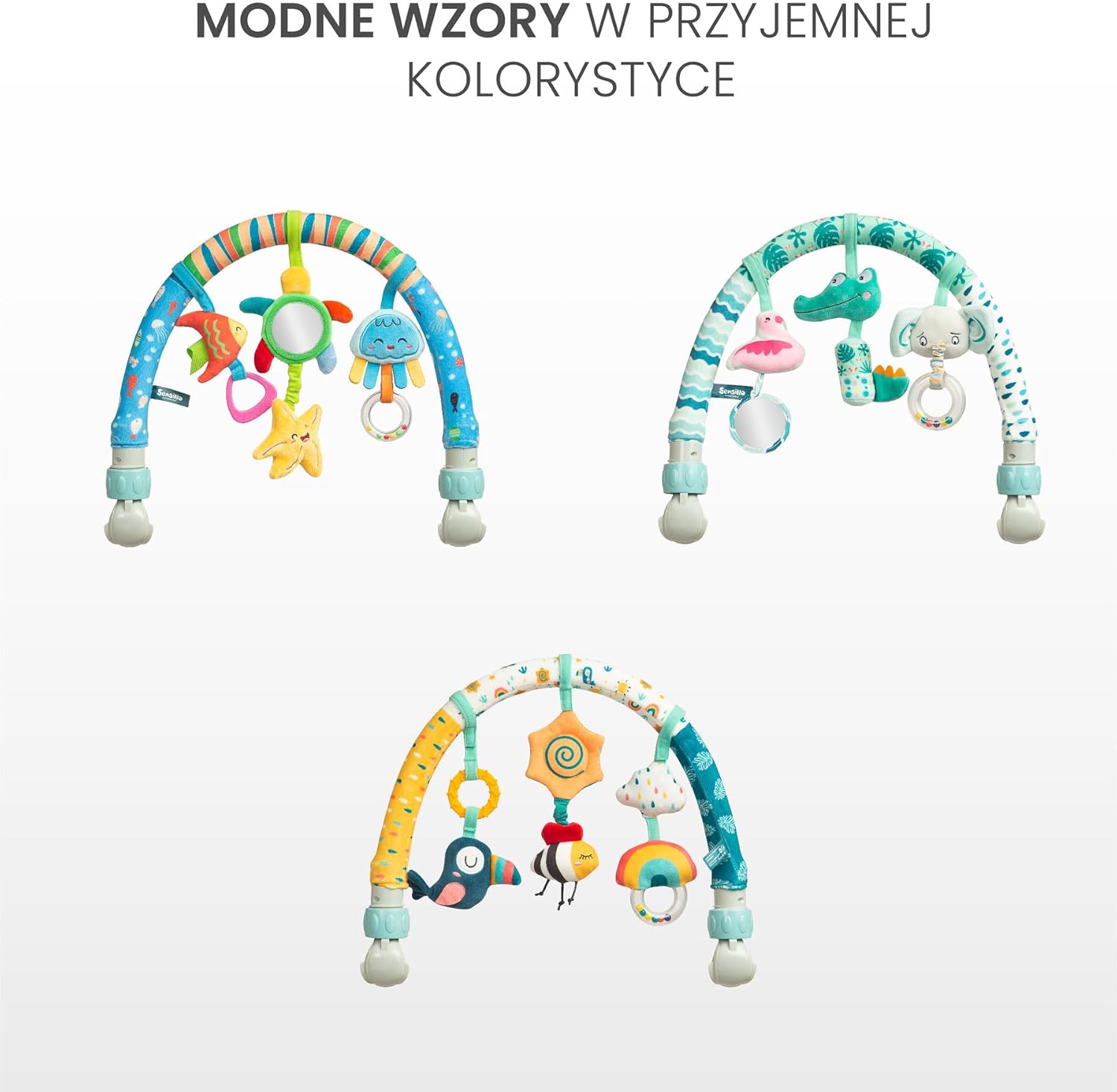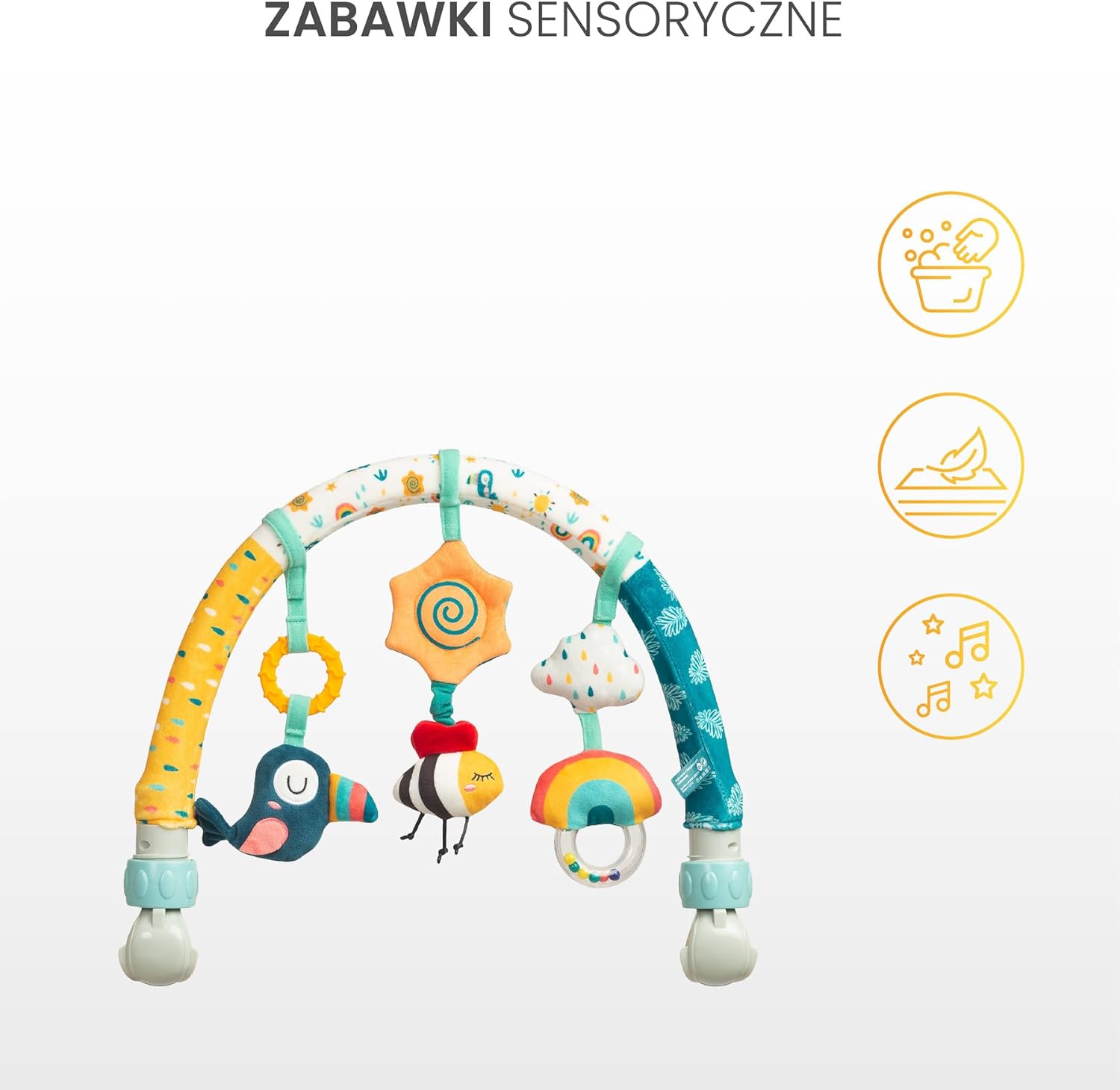 Divertimento e sviluppo in uno: La fascia educativa con funzione di gioco non è solo un grande giocattolo, ma anche uno strumento per promuovere lo sviluppo sensoriale del bambino. Adatto per bambini da 0 a 18 mesi. Una ricchezza di stimoli: sonagli, texture morbide, elementi fruscianti e uno specchio stimolano i sensi del bambino e promuovono l'udito, la vista e la motricità fine. I giocattoli sono facilmente rimovibili e lavabili. Adattabilità universale: Il giocattolo si adatta alla maggior parte dei modelli di carrozzina e seggiolino auto. Il semplice aggancio consente un fissaggio rapido e stabile ovunque. Motivi colorati: disponibile in tre favolose versioni, ognuna con ciondoli unici che introducono il bambino in un affascinante mondo di suoni, forme e colori. Materiali sicuri e facili da pulire: I tessuti morbidi e adatti al bambino sono sicuri per l'uso quotidiano. Le parti possono essere rimosse e lavate, rendendo il giocattolo facile da mantenere pulito.