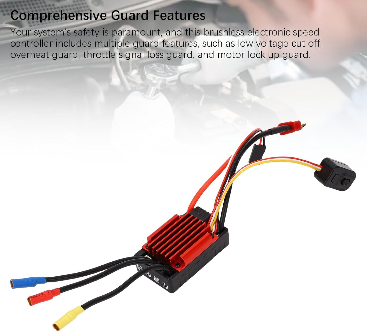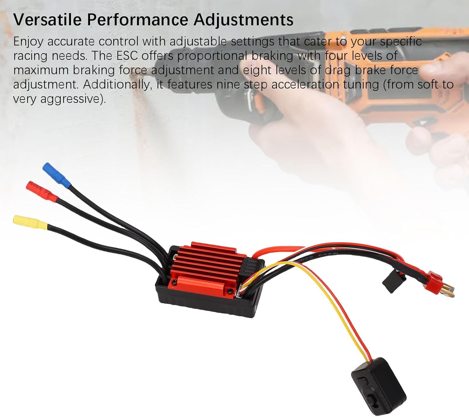 [Prestazioni per tutte le condizioni atmosferiche] Questo ESC con sensore brushless RC è progettato per resistere a condizioni severe con struttura resistente alla pioggia e alla polvere. per le gare competitive in qualsiasi ambiente, garantisce funzionamento stabile e durata, anche su terreni bagnati o polverosi. Il design robusto garantisce prestazioni durature, rendendolo ideale per gli appassionati di outdoor. [Programmazione semplice] Dotato di una porta di programmazione esterna. Questo ESC senza spazzole consente una connessione perfetta a una scheda di programmazione. Goditi una configurazione rapida ed efficiente con personalizzazioni facili da usare. L'interfaccia intuitiva garantisce una facile personalizzazione per principianti e utenti avanzati per ottenere prestazioni ottimali. [Sicurezza completa] La sicurezza del tuo veicolo RC ha la priorità con molteplici funzioni di protezione tra cui protezione da bassa tensione, protezione da surriscaldamento, protezione dalla perdita del segnale dell'acceleratore e protezione dal blocco del motore. Queste protezioni avanzate prevengono danni al sistema per garantire un funzionamento affidabile durante le intense sessioni di gara. [Regolazioni versatili] Ottieni un controllo preciso con impostazioni personalizzabili su misura per le tue esigenze di corsa. Questo ESC fornisce una frenata proporzionale con quattro livelli di forza frenante massima e otto livelli di forza di trascinamento. Inoltre, presenta un'accelerazione a nove stadi, da fluida a molto aggressiva, per prestazioni senza pari. [Ampia compatibilità] Adatto a vari veicoli RC, inclusi buggy e camion a corto raggio 1/10, questo ESC offre prestazioni versatili. Include uno switch mode Bec integrato con un'uscita massima di 3 A a 5,85 V. L'ampia gamma di applicazioni lo rende un must per gli hobbisti RC e i piloti competitivi.