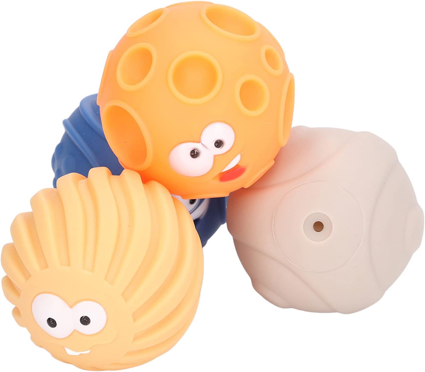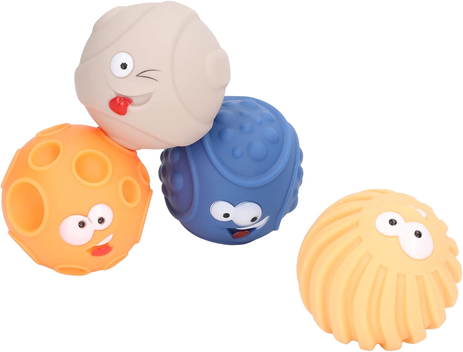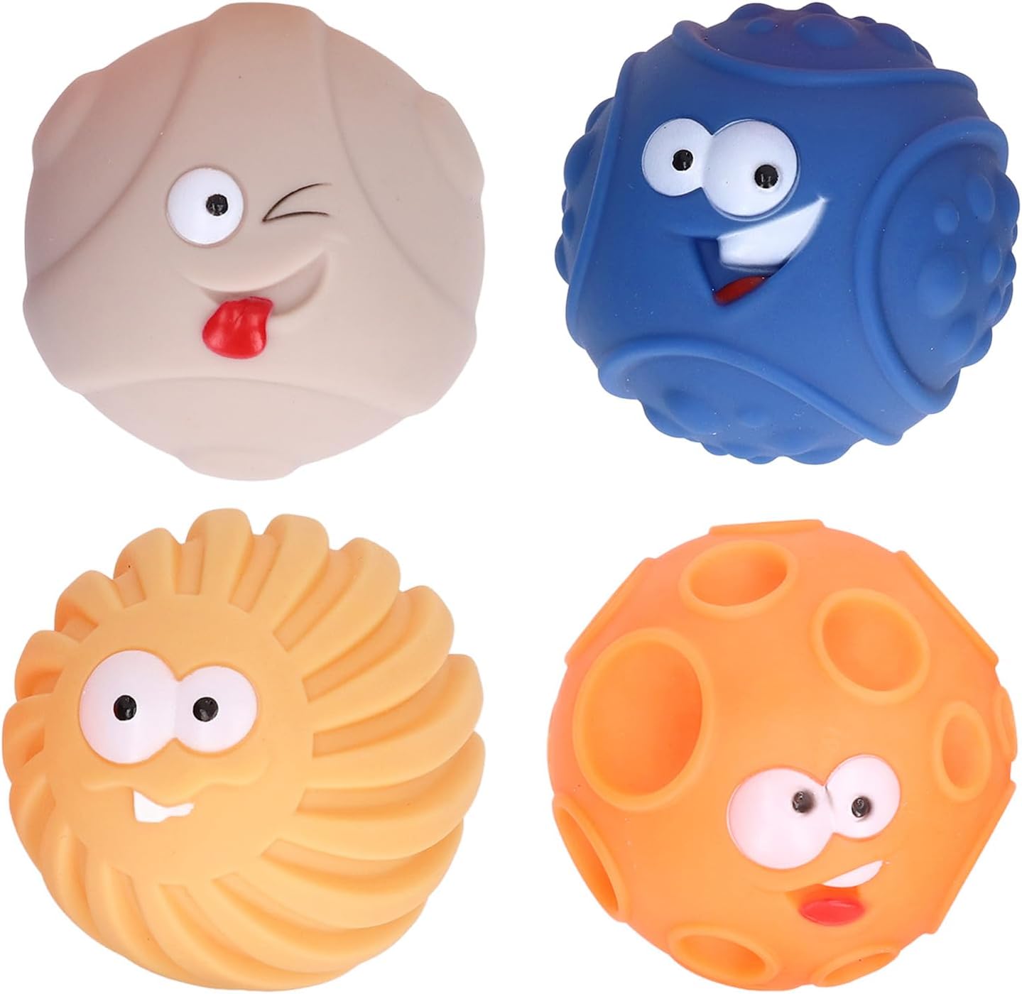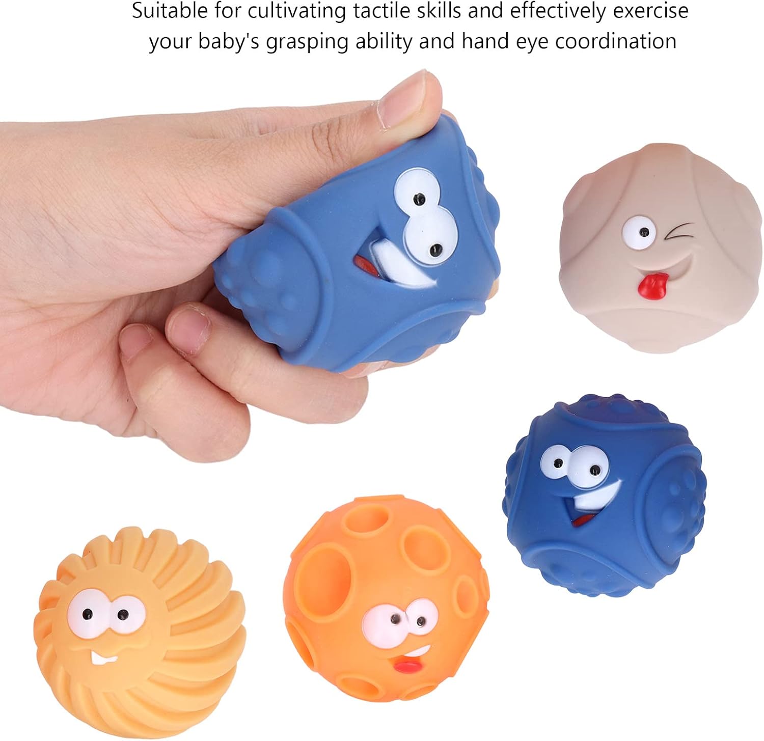 [COLORI LUMINOSI] I giocattoli Sensory Balls presentano più palline colorate luminose per divertimento visivo e gioia. [FACILE DA IMPUGNARE] 4 palline testurizzate di diverse forme e dimensioni per una facile raccolta e gioco. [SVILUPPARE ABILITÀ] Coltiva le abilità tattili e migliora la capacità di presa del bambino e la coordinazione occhio-mano. [UTILIZZO SICURO] Nessun piccolo tappo di plastica all'interno per evitare il rischio di soffocamento con maggiore comodità. [MORBIDE E CONFORTEVOLI] Sfere morbide e leggere che si contraggono e si espandono facilmente, producendo un suono BB.
