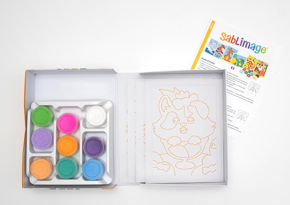 Una Mini gamma appositamente progettata per introdurre i piccoli, fin da 4 anni, all'arte della sabbia! Le piccole illustrazioni pre-tagliate e pre-incollate permetteranno loro di creare le loro prime opere d'arte con una garanzia di risultato estetico molto stimolante per il bambino!