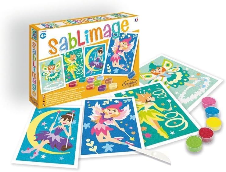 KIT SABLIMAGE: Spatante. Questa gamma di attività artistica è stata progettata in modo che i bambini molto piccoli possano realizzare bellissimi quadri ingenui senza sporcarsi. KIT CREATIVO: Per questo basta staccare le superfici preincollate e cospargerle con le diverse sabbie proposte. Tempo libero creativo: Un'attività divertente e artistica. KIT BAMBINO: Ideale per sviluppare creatività, abilità manuale e senso del colore. Idea regalo: questo kit creativo con clessidra sarà perfetto per ogni occasione. Compleanno, Natale, mercoledì, mercoledì.