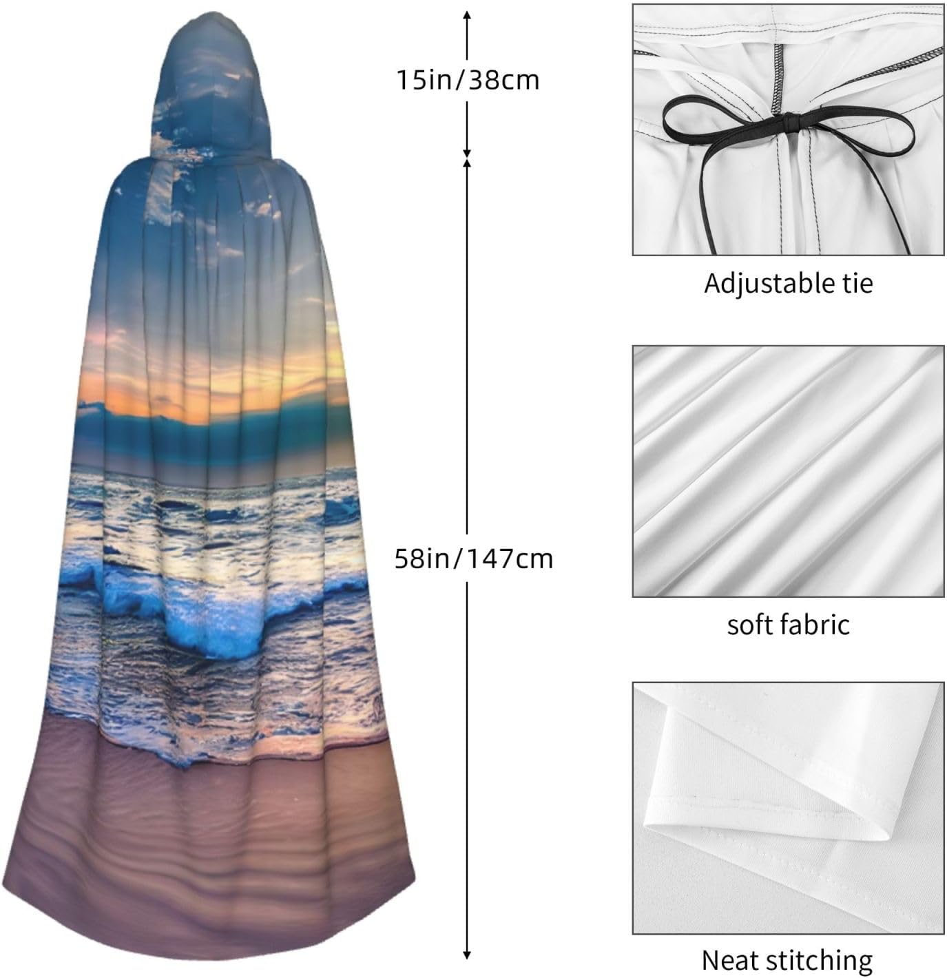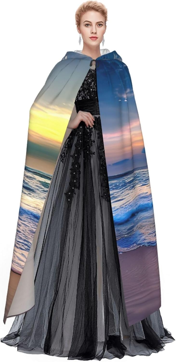 Realizzato in poliestere, questo mantello con stampa tramonto sul mare sereno con cappuccio garantisce longevità e comfort. Le sue dimensioni ottimali assicurano una copertura completa per tutte le età, facendoti risaltare in qualsiasi evento. Che tu sia diretto per Halloween, un evento cosplay, un costume da palcoscenico, una festa in maschera, una festa a tema, un ballo o una convention di fumetti, questo mantello è una scelta ideale. Il suo design unico, completo di un grande cappuccio e cravatte collare. Inoltre, puoi dire addio ai metodi di pulizia complicati. Questo mantello con cappuccio con stampa tramonto sul mare sereno è lavabile in lavatrice e a mano, offrendo una cura senza sforzo. Esci con stile e comfort con il nostro mantello con cappuccio, il tuo compagno per tutti gli eventi e le occasioni.