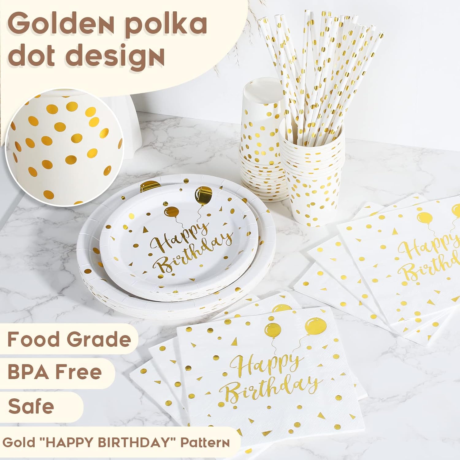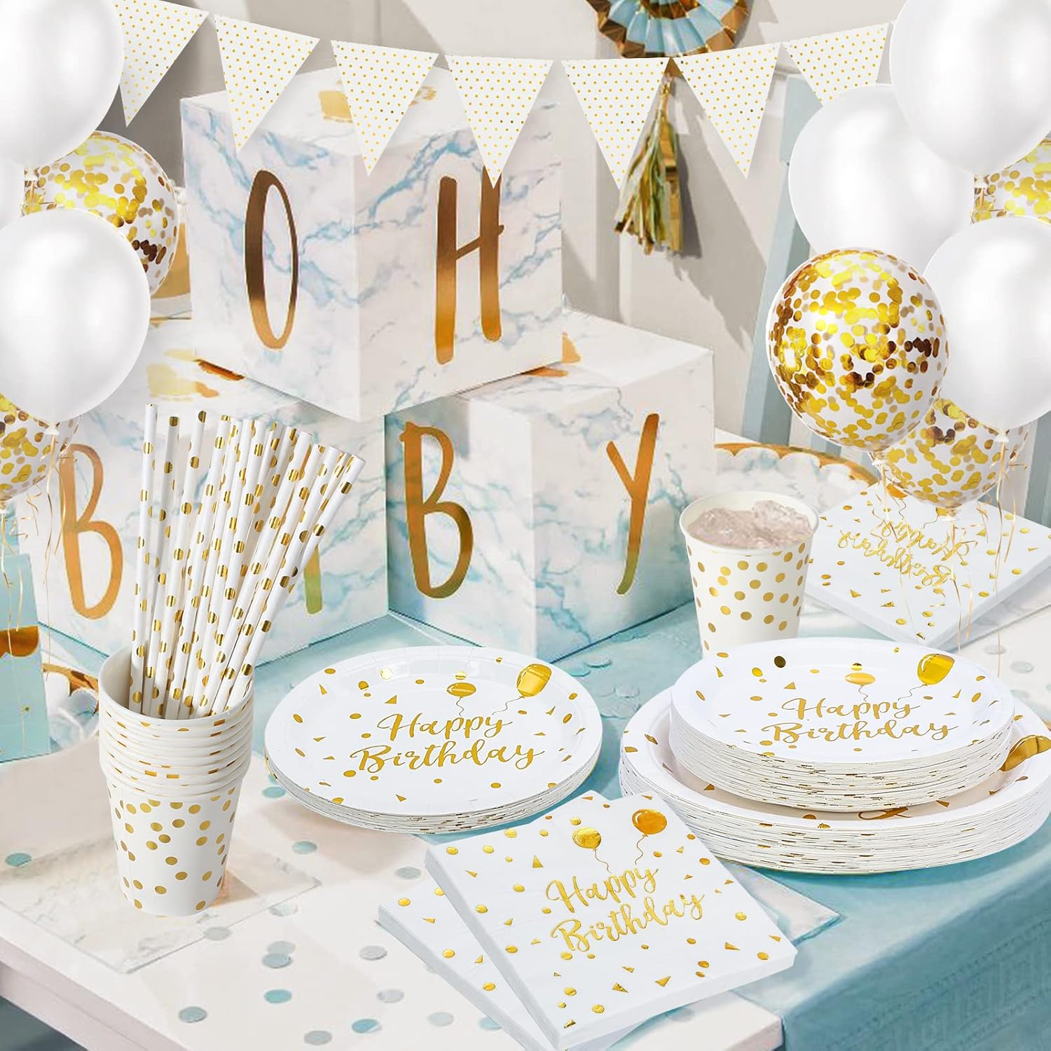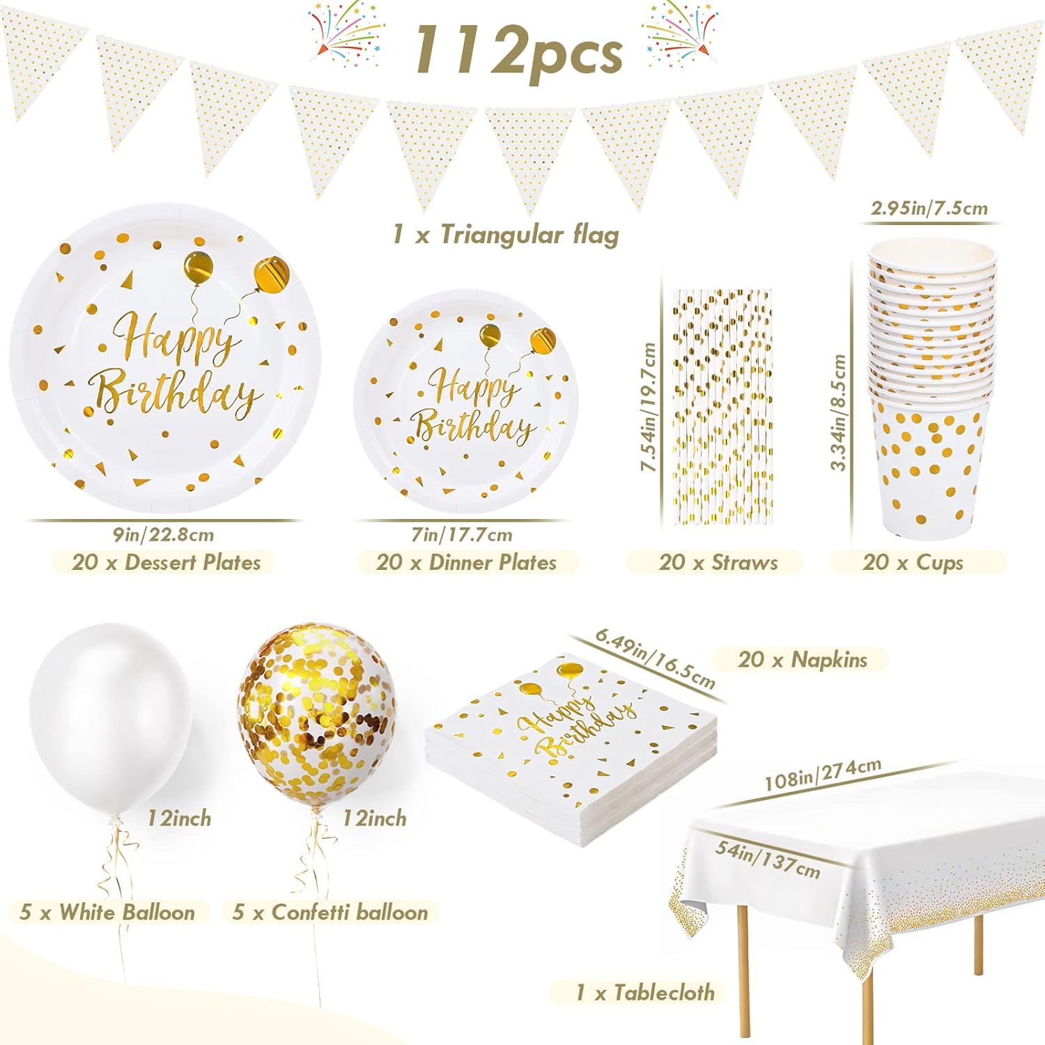 Servizio da Tavola per 20 Ospiti: Questo per la tavola contiene tutto il necessario per un massimo di 20 ospiti: 20 piatti piani 9 ", 20 piatti dessert 7", 20 tovaglioli, 20 tazze, 20 cannucce, 1 gagliardetto 10 palloncini, 1 pezzo di tovaglia. Usa queste squisite stoviglie per feste per rendere perfetta la tua festa. Materiale di Alta Qualità: Questo meraviglioso set di stoviglie per la tavola delle feste è realizzato con materiali di carta pesante di alta qualità, che rendono il set di stoviglie solido, a prova di ammollo, resistente al taglio e durevole. Il set di stoviglie in oro è sicuro al 100% per alimenti, non tossico, privo di BPA e sicuro per un'esperienza culinaria. Nota: si prega di non mettere i piatti e le tazze nel microonde. Design a Pois in Lamina d'oro: Questo pacchetto di accessori per feste è progettato su uno sfondo bianco e un motivo a pois in lamina d'oro. I piatti e le tazze di carta blu navy hanno tutti un attraente punto in lamina dorata. Eleganti e graziosi, in modo che si abbinino bene alla tua decorazione e stupiscano i tuoi ospiti. Adatto per Feste e uso Quotidiano: Molto adatto e conveniente per feste di compleanno, matrimoni, feste di laurea, baby shower, barbecue, picnic, cene in ufficio e altri usi. Non devi passare molto tempo a farlo. Goditi la Festa: Rendi questa festa a tema marinaro che stupirà i tuoi ospiti per tutta la notte. Risparmia tempo per pulire. Quindi puoi trascorrere più tempo con la famiglia e gli amici.