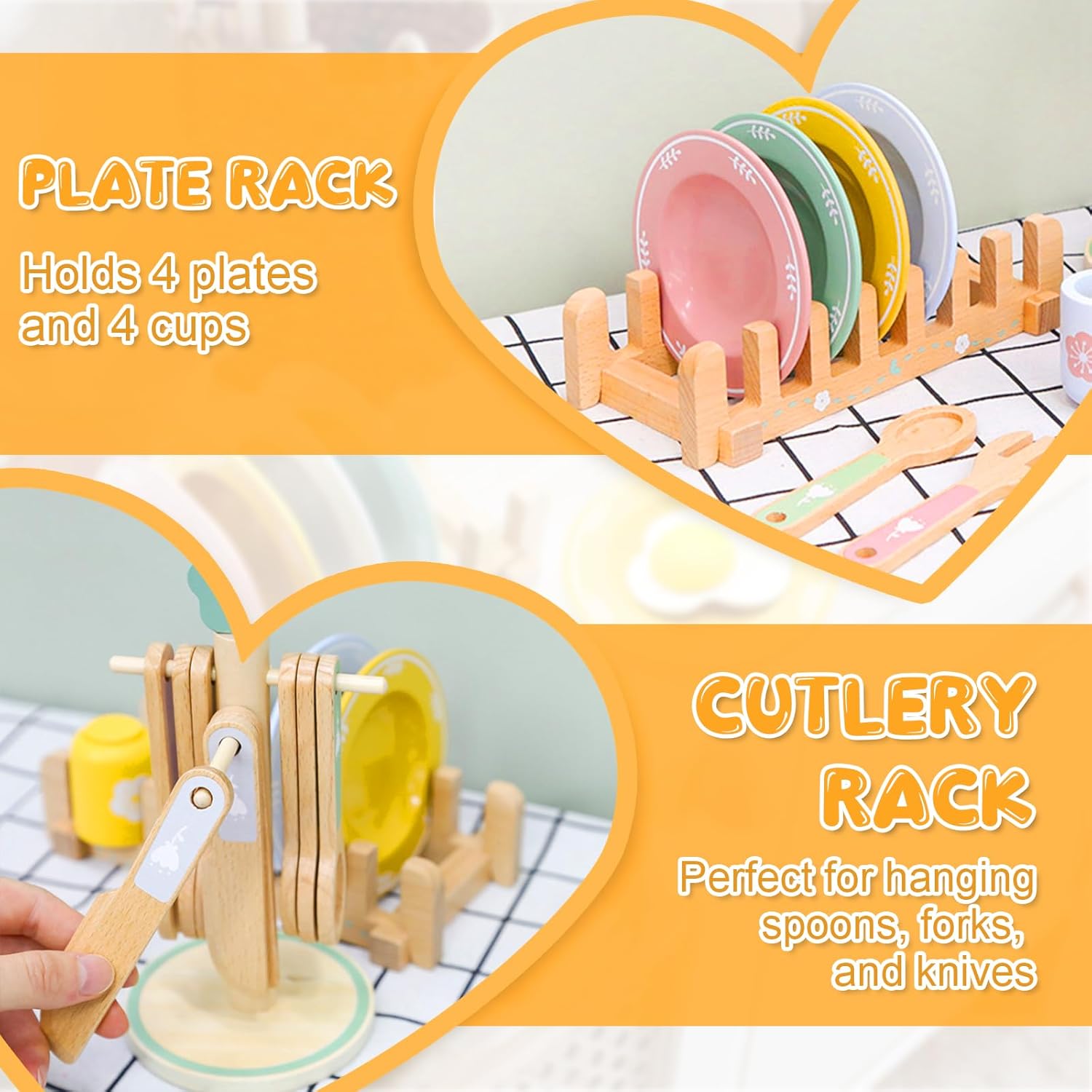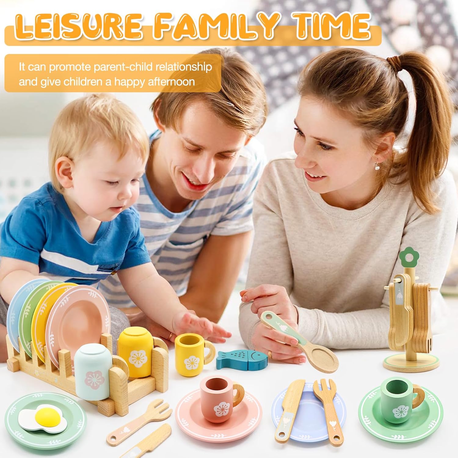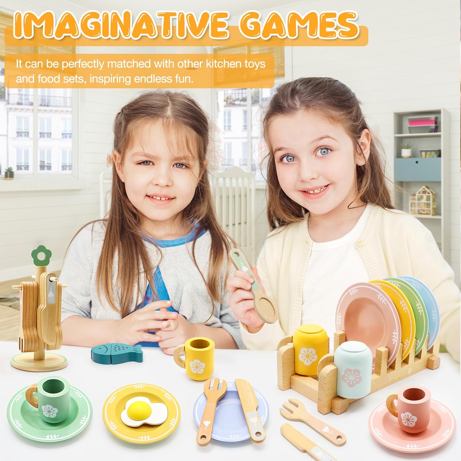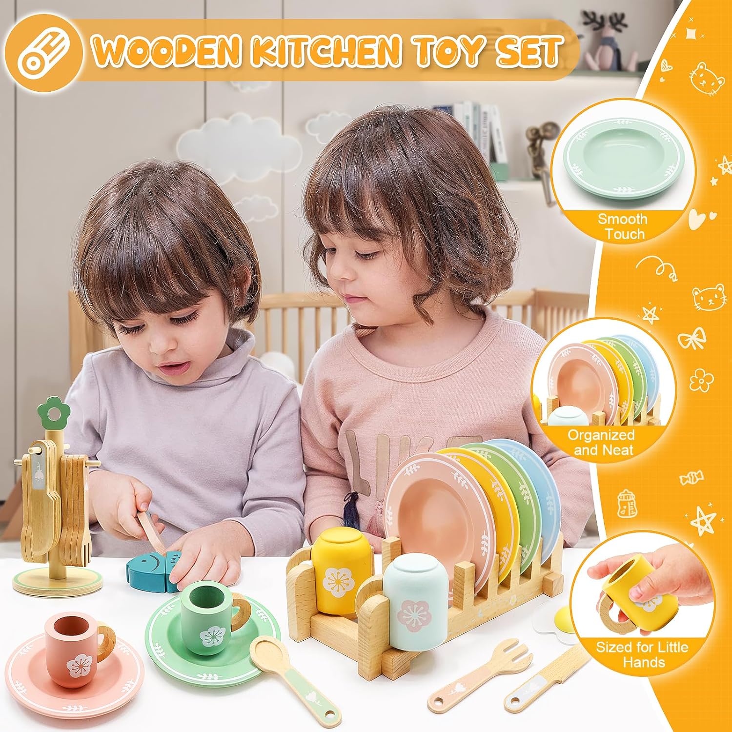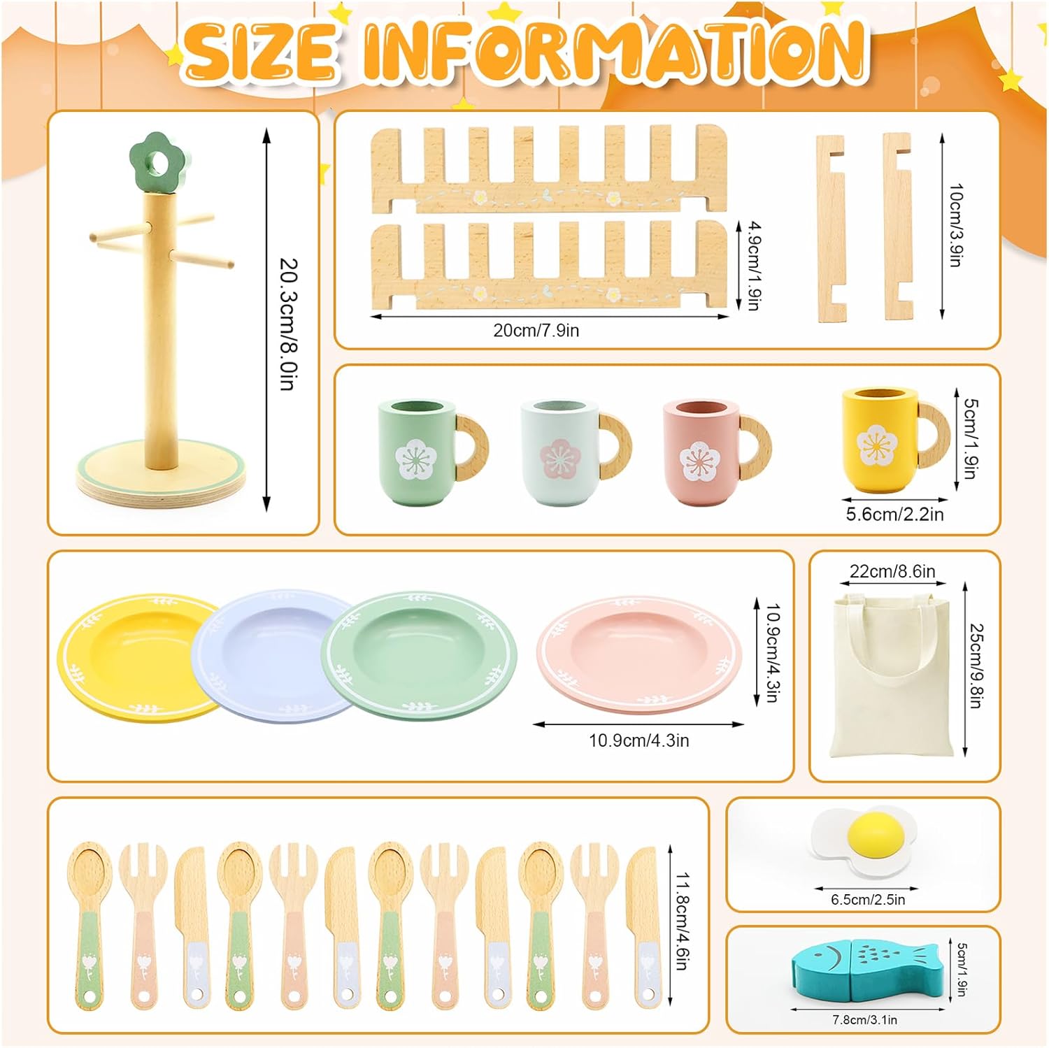 ️ 【Servizio da tè completo da 25 pezzi in legno per divertimento creativo】 Il servizio da tè in legno per bambini contiene tutti gli oggetti essenziali per una cucina giocattolo o un'esperienza di tea party: 4 tazze, 4 piatti, 4 cucchiai, 4 coltelli, 4 forchette, 1 porta piatti, 1 portaposate, 1 sacchetto di stoffa, 1 uovo e 1 pesce. Questo set completo di giocattoli da cucina in legno offre tutto ciò di cui il tuo bambino ha bisogno per sperimentare giochi di ruolo fantasiosi e creare i propri scenari di cucina. Il set viene fornito anche con una pratica borsa per il trasporto e la conservazione facili. Esperienza di apprendimento e competenza: questo set di accessori da cucina in legno non è solo divertente, è uno strumento educativo. Aiuta a sviluppare abilità importanti come l"interazione sociale, creatività e capacità motorie. Con l'aiuto degli accessori da cucina in legno per bambini, i bambini possono imparare a conoscere le maniere a tavola, il cibo e gli utensili da cucina e allo stesso tempo praticare l'organizzazione e il gioco cooperativo. Design sicuro e adatto ai bambini: questo set di accessori da cucina in legno per giocattoli è realizzato con materiali atossici e sicuri per i bambini, garantendo così una sensazione rilassante ai genitori. Il set ha bordi lisci e angoli arrotondati, quindi è assolutamente sicuro per i bambini piccoli per giocare. È il giocattolo ideale per i bambini e offre ore di divertimento senza rischio di lesioni. Regalo ideale per bambini piccoli e piccoli: perfetto per compleanni, vacanze o occasioni speciali, questo set da cucina giocattolo in legno è un regalo ideale per bambini a partire dai 36 mesi. Incoraggia la creatività e il gioco autonomo e aiuta i bambini a sviluppare importanti abilità di vita mentre godono ore di intrattenimento senza schermo con amici e familiari. Costruzione durevole e sostenibile: questo set di accessori da cucina è stato progettato per una lunga durata e si distingue per la lavorazione di alta qualità per una lunga durata. La struttura robusta garantisce che resista all'uso frequente da parte di bambini attivi, mentre i materiali sostenibili lo rendono una scelta ecologica per i genitori attenti all'ambiente.
