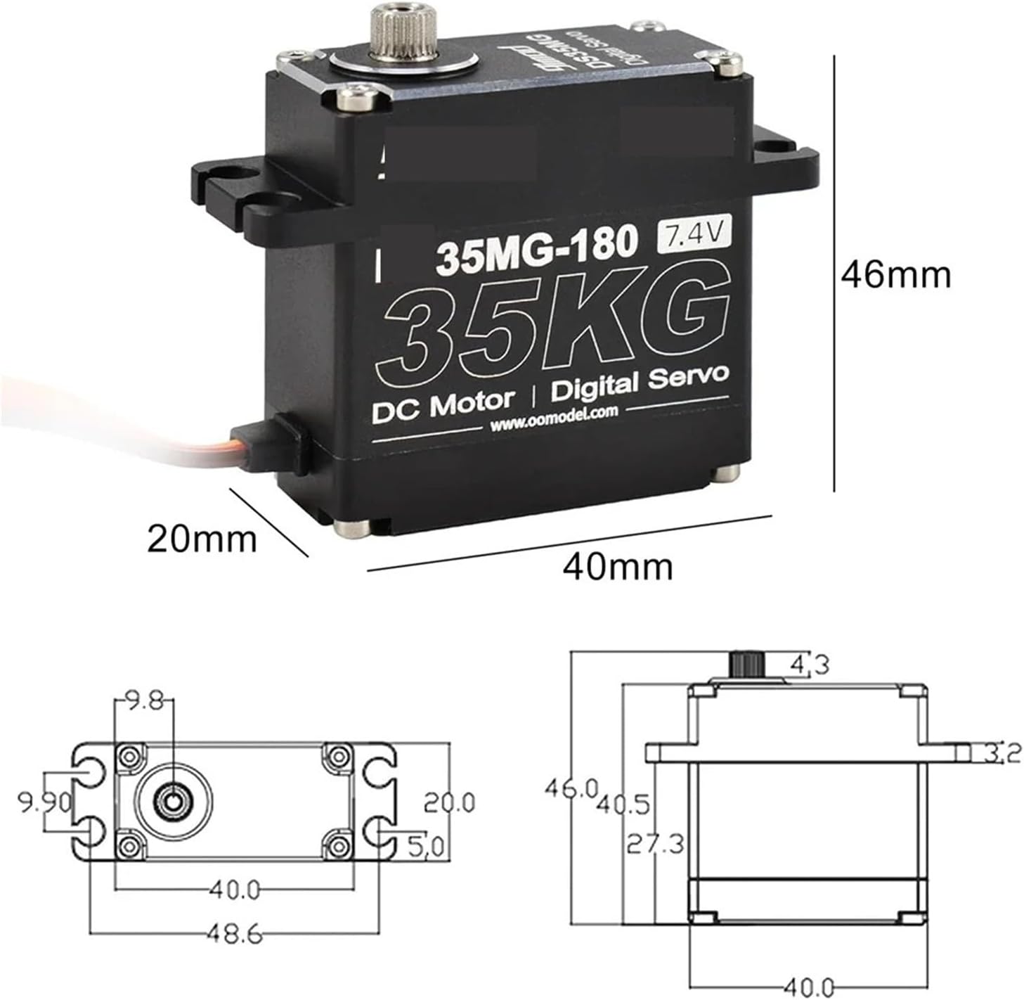 Servo da 35 kg - 180°/270° Alloggiamento interamente in alluminio, ingranaggi in acciaio inossidabile, coppia elevata(35kg 270 metal arm)