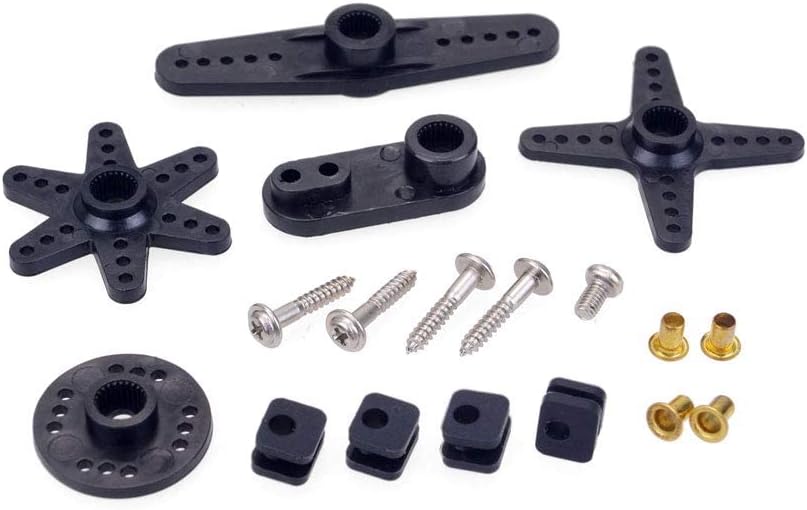 L'ingranaggio in metallo può sopportare carichi più elevati e garantisce il normale funzionamento del servo. Materiale plastico di alta qualità, durevole, resistente alla corrosione, lunga durata. Alta precisione, non facile da pianificare, affidabile da usare. Facile da installare e rimuovere. Contiene 5 parti di diversi bracci servo nella confezione per soddisfare le vostre diverse esigenze. Alta efficienza, basso rumore e basso consumo energetico durante il funzionamento.