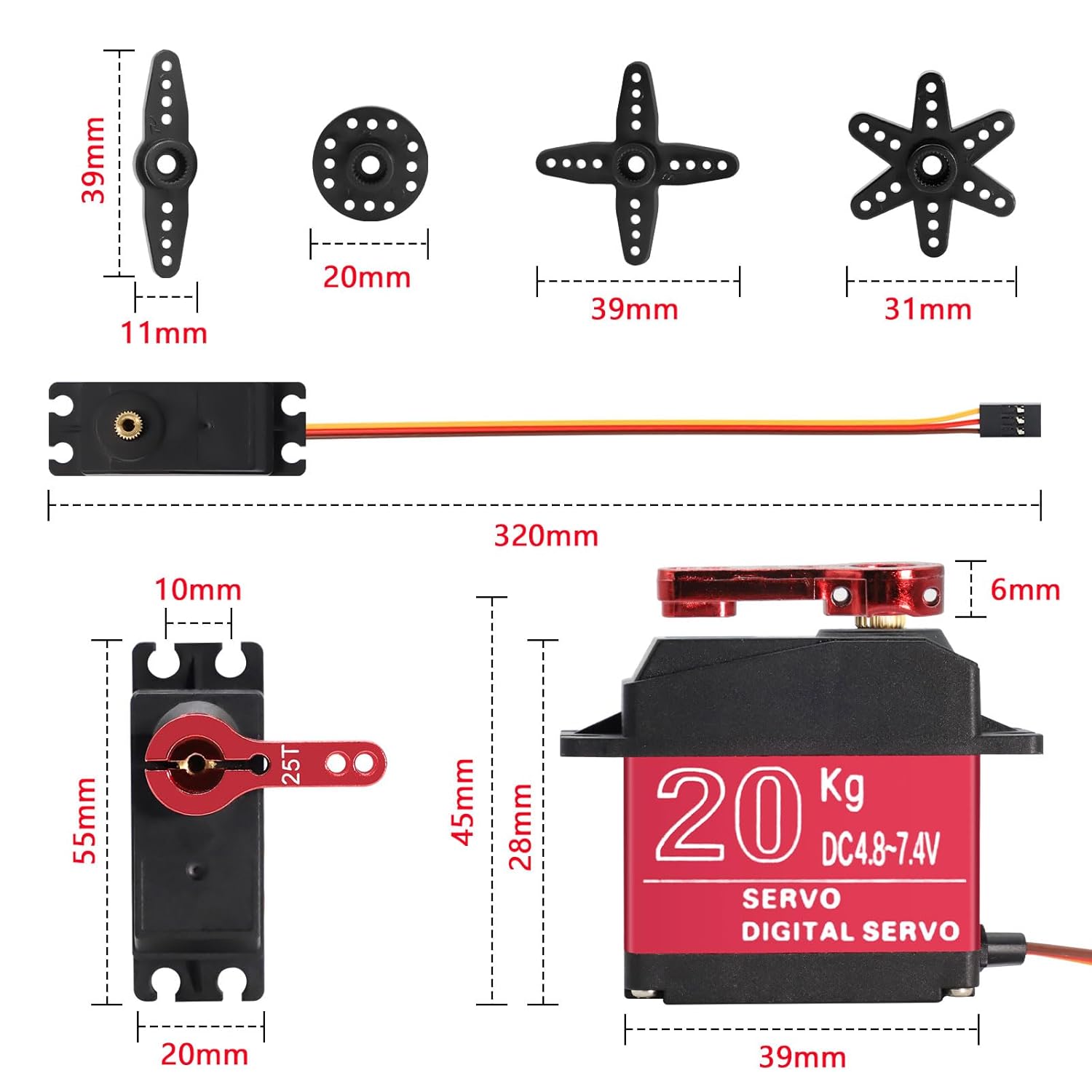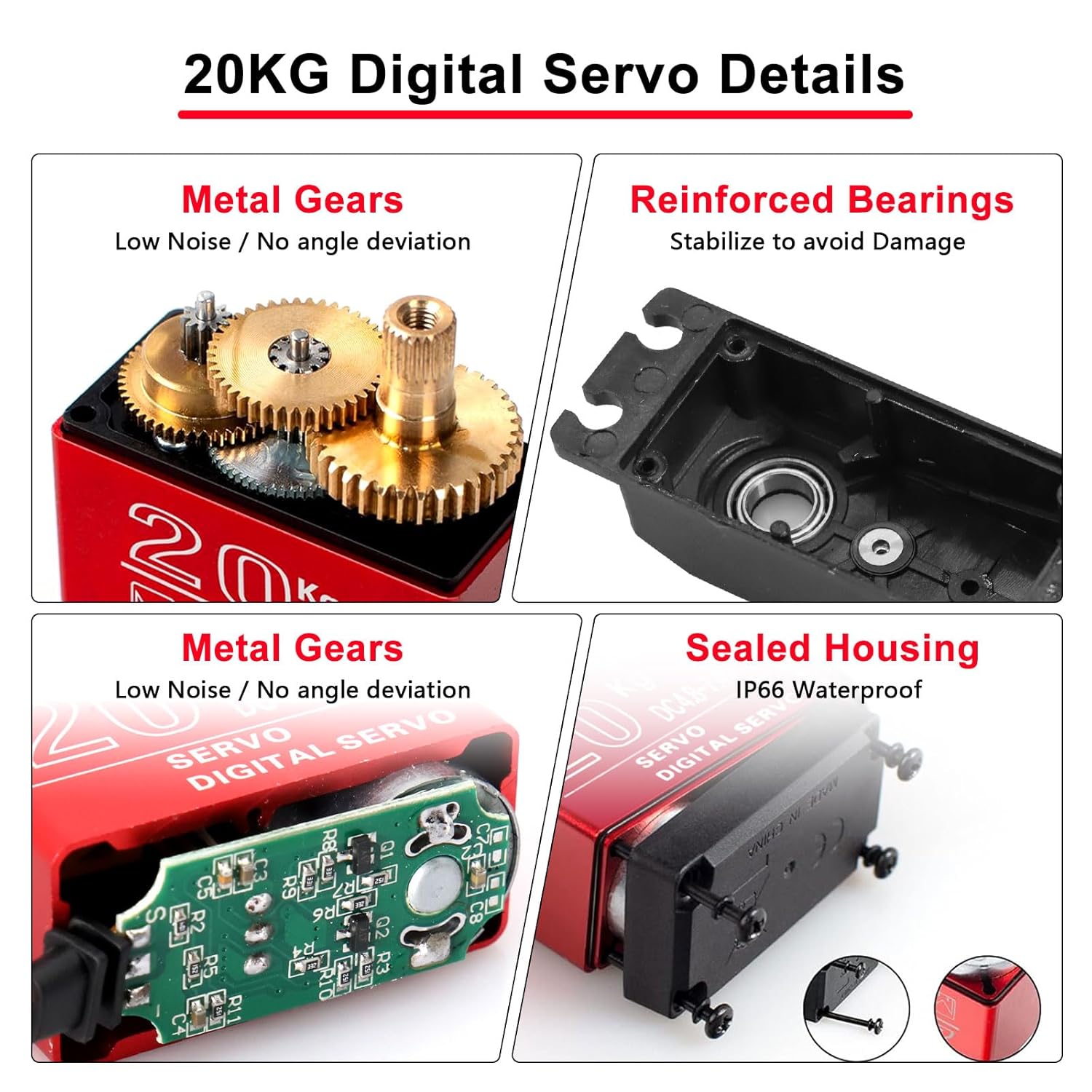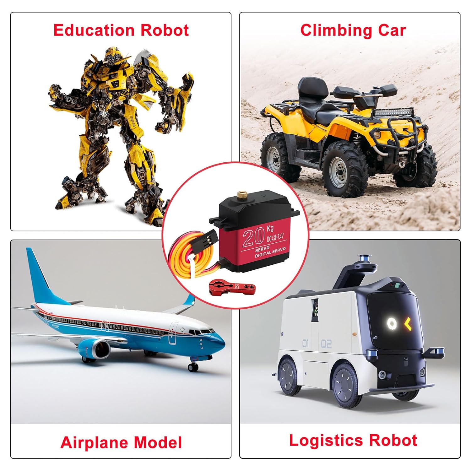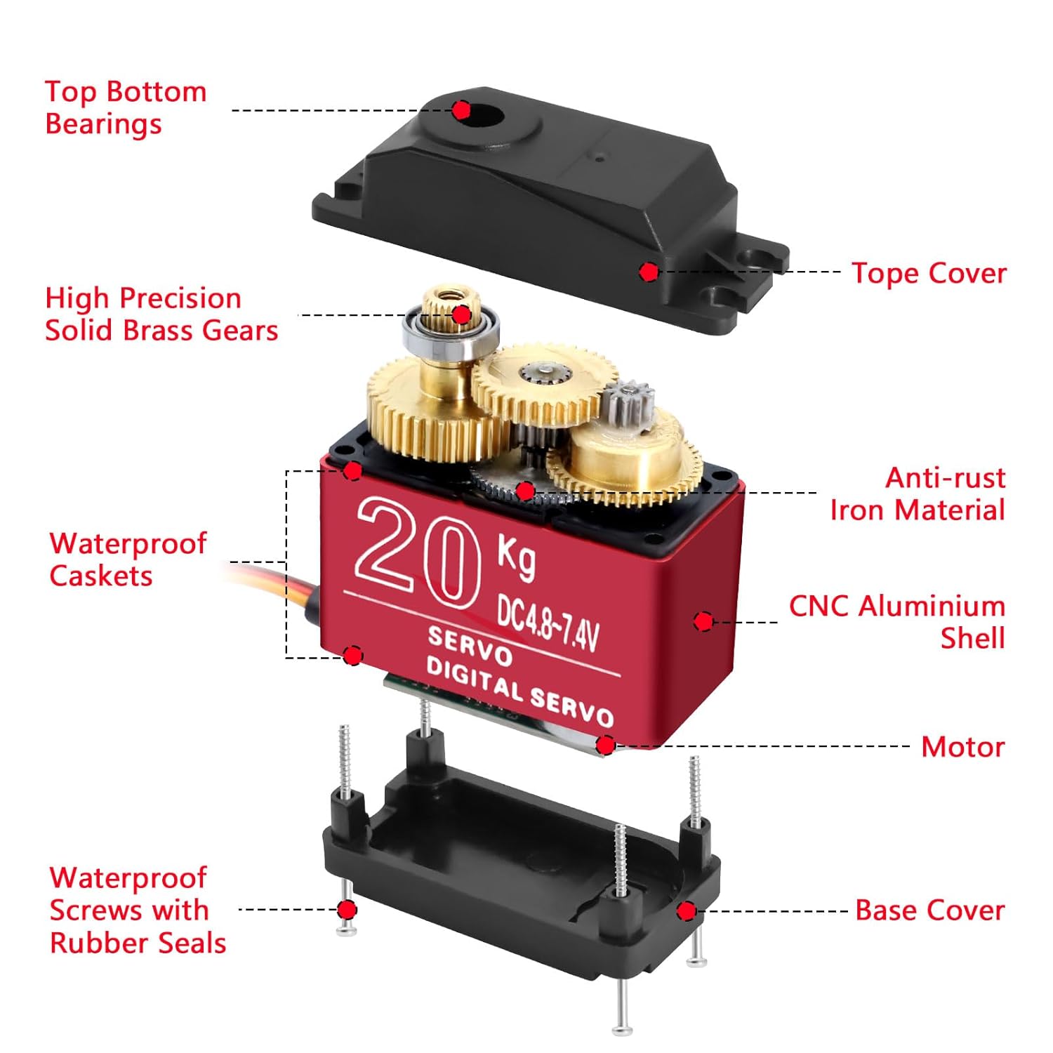 Servo ad alte prestazioni da 20 kg-180°: questo servo RC offre una coppia massima di 20 kg.cm a 7,4 V. Il robusto alloggiamento in alluminio anodizzato garantisce un'eccellente dissipazione del calore e riduce efficacemente il consumo di energia. 【Costruzione durevole】 - Il servo digitale è dotato di ingranaggi in acciaio inox e alloggiamento in alluminio. I materiali di alta qualità garantiscono una resistenza eccezionale e una lunga durata, anche in condizioni difficili. Controllo preciso: il servo motore è dotato di regolazione della posizione ad alta risoluzione e la reattività precisa consente movimenti fluidi e precisi, fornendo un controllo migliorato per i modelli RC. 【Impermeabile IP66】 - Il servo è realizzato con materiali di prima qualità e offre un'eccellente protezione contro acqua e polvere. La certificazione IP66 lo rende ideale per l'utilizzo in ambienti difficili. 【Per progetti fai da te】 - Compatibile con veicoli cingolati 1/8, 1/10 e 1/12, camion, fuoristrada, bracci robotici e altre applicazioni servo standard. Questo servo offre un controllo più stabile e preciso per un'esperienza di guida ottimizzata.