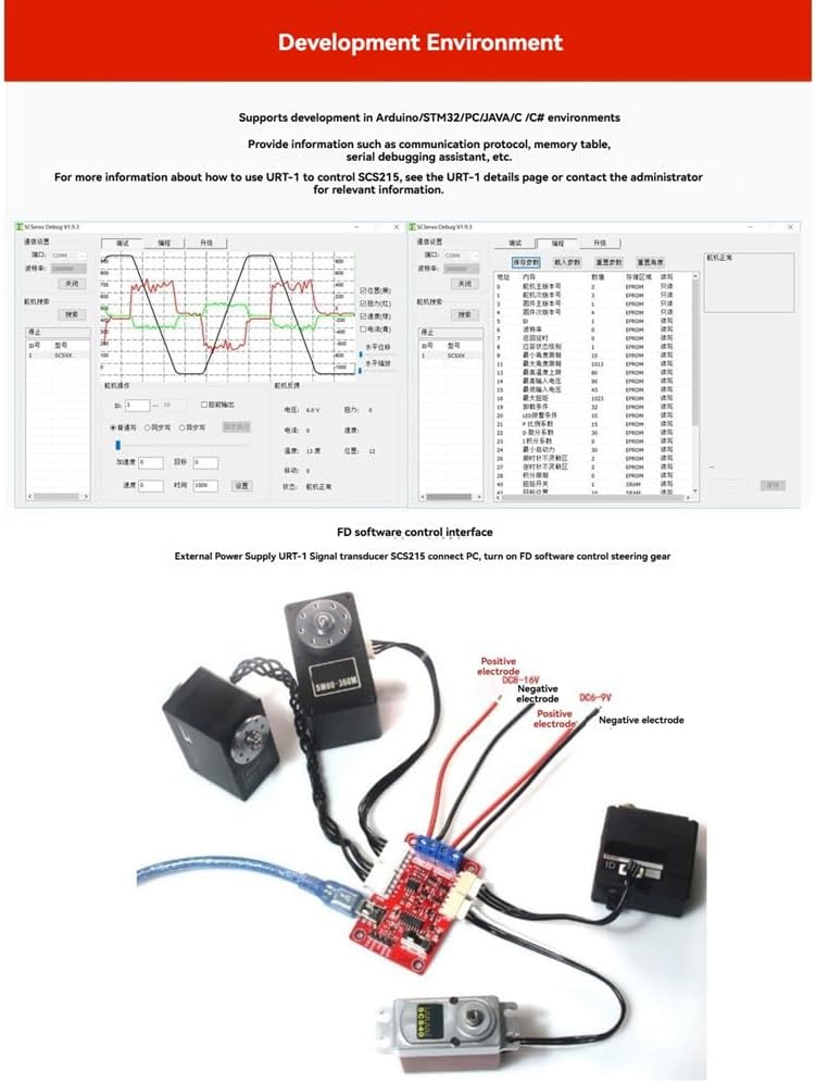 Doppia modalità di lavoro: supporta la modalità servo di controllo dell'angolo e la modalità ruota di rotazione circolare Feedback dei parametri di progettazione a circuito chiuso: supporta il feedback in tempo reale dei parametri di temperatura, velocità, tensione, carico e posizione Velocità di risposta sensibile: la velocità di trasmissione della comunicazione supporta fino a 1 Mbps Regolazione flessibile dell'angolo di rotazione: supporta la selezione dell'angolo di 0-300° e la rotazione continua di 360° Protezione da autoscarica In caso di surriscaldamento, sovratensione, se il servo è sovracorrente o sovraccarico, viene attivata la protezione da autoscarica