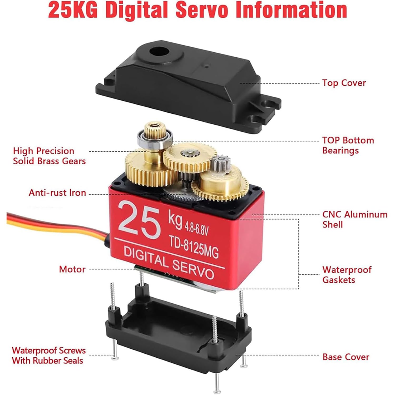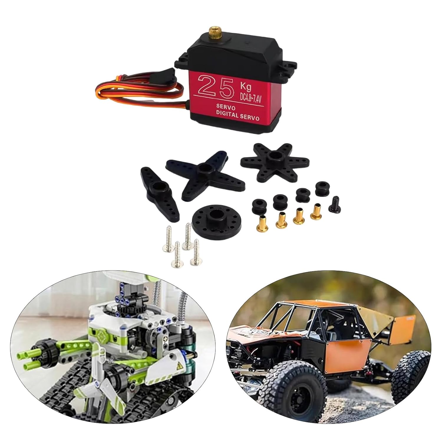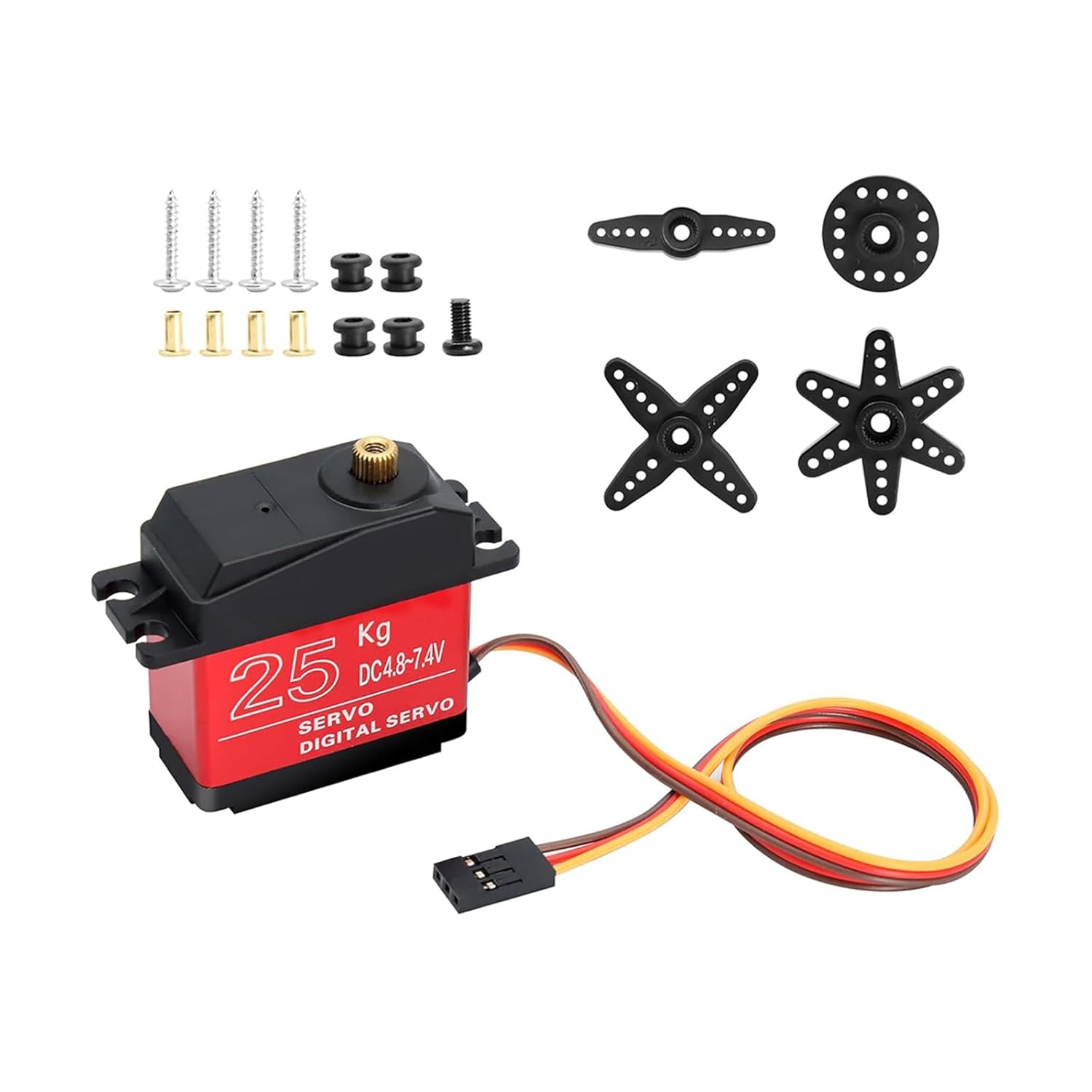 Costruito per la precisione, questo servo digitale offre tempi di risposta rapidi e controlli di alta precisione con i suoi sistemi di controllo avanzati, garantendo la perfetta esecuzione dei comandi. Nell'applicazione, questo servomotore viene utilizzato su aerei, elicotteri, barche, veicoli e progetti, migliorando la precisione del movimento su varie piattaforme. Migliora la funzionalità del tuo progetto con un servomotore da 25 kg, dove la tecnologia all'avanguardia incontra l'affidabilità, garantendo un funzionamento regolare anche negli ambienti più esigenti. Sblocca tutto il potenziale dei tuoi modelli con il servo digitale da 25 kg, dotato di ingranaggi in metallo per coppia e durata senza rivali. Per gli appassionati di robotica, modellisti e hobbisti che richiedono prestazioni di coppia elevate per le loro creazioni, dai droni ai bracci robotici.