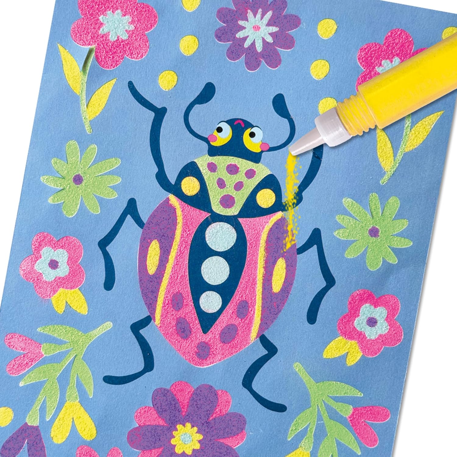 Scopri il tuo lato creativo con la sabbia colorata con bellissimi disegni della natura. Crea 4 splendidi capolavori con carte autoadesive con sabbia. Include 5 vivaci colori sabbia: giallo, azzurro, verde chiaro, rosa e viola. I comodi tubi dispenser lo rendono facile da cospargere e progettare. Semplici istruzioni passo passo incluse per una facile lavorazione.