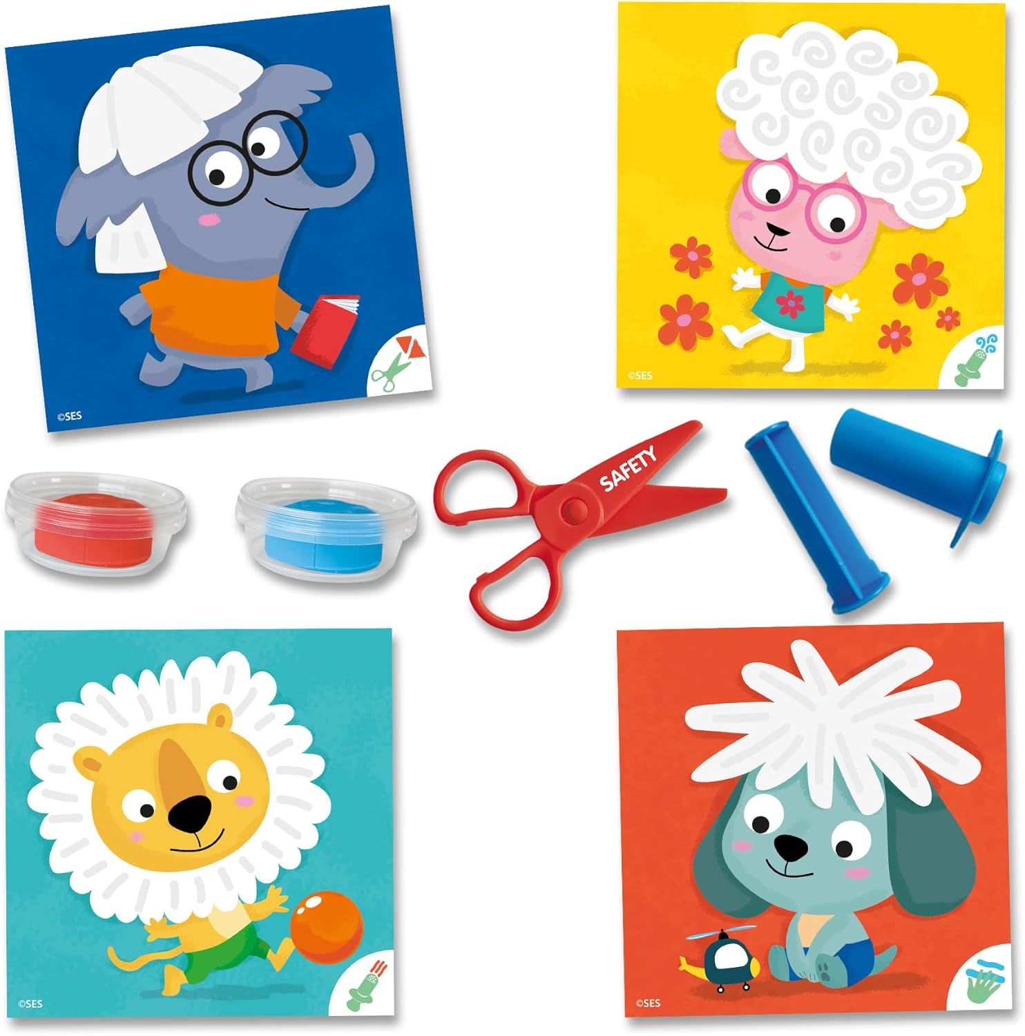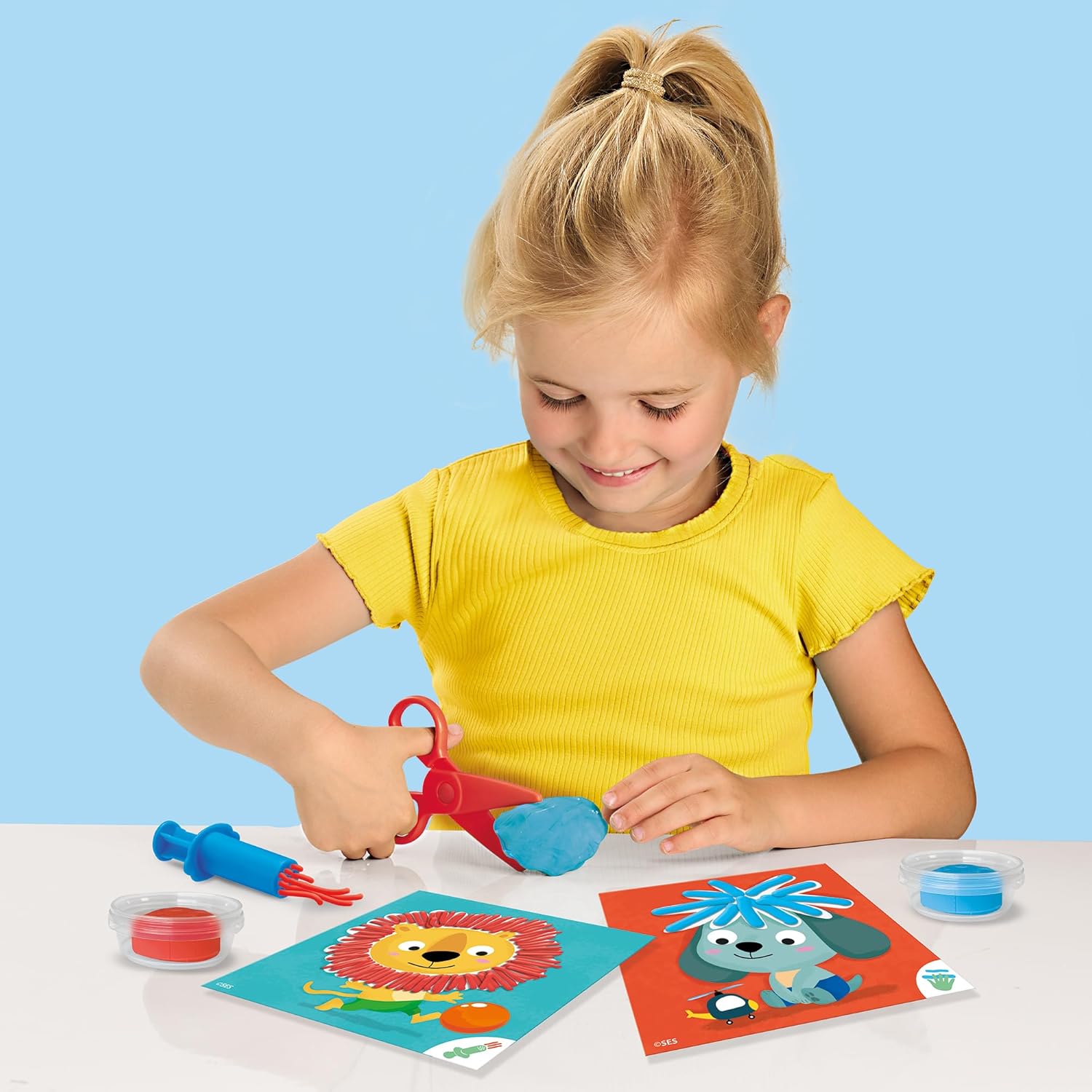 Crea acconciature colorate con il My First - Acconciature da impastare! Con le forbici sicure puoi tagliare plastilina e carta senza compromettere capelli o vestiti. Le forbici sicure tagliano plastilina e carta, ma rimangono delicate su capelli e vestiti veri, ideali per i bambini creativi. Usa le carte riutilizzabili con acconciature animali per ore di divertimento! I bambini possono sempre ridisegnare e acconciare le acconciature. Questo set contiene plastilina blu chiaro e rossa (40 g ciascuna), una pressa per impastare e forbici appositamente progettate per le mani piccole. Scoprite il divertimento infinito e promuovete le capacità motorie e la creatività del vostro bambino con il set di acconciature My First