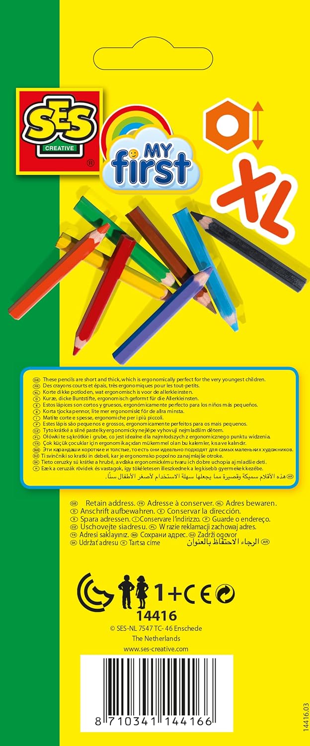 SES - da oltre 40 anni produce giochi e giocattoli educativi prevalentemente orientati alle attività creative; tutti i prodotti sono inventati, sviluppati e fabbricati in Olanda 8 matite corte e spesse, ergonomiche per i più piccoli Da 12 mesi