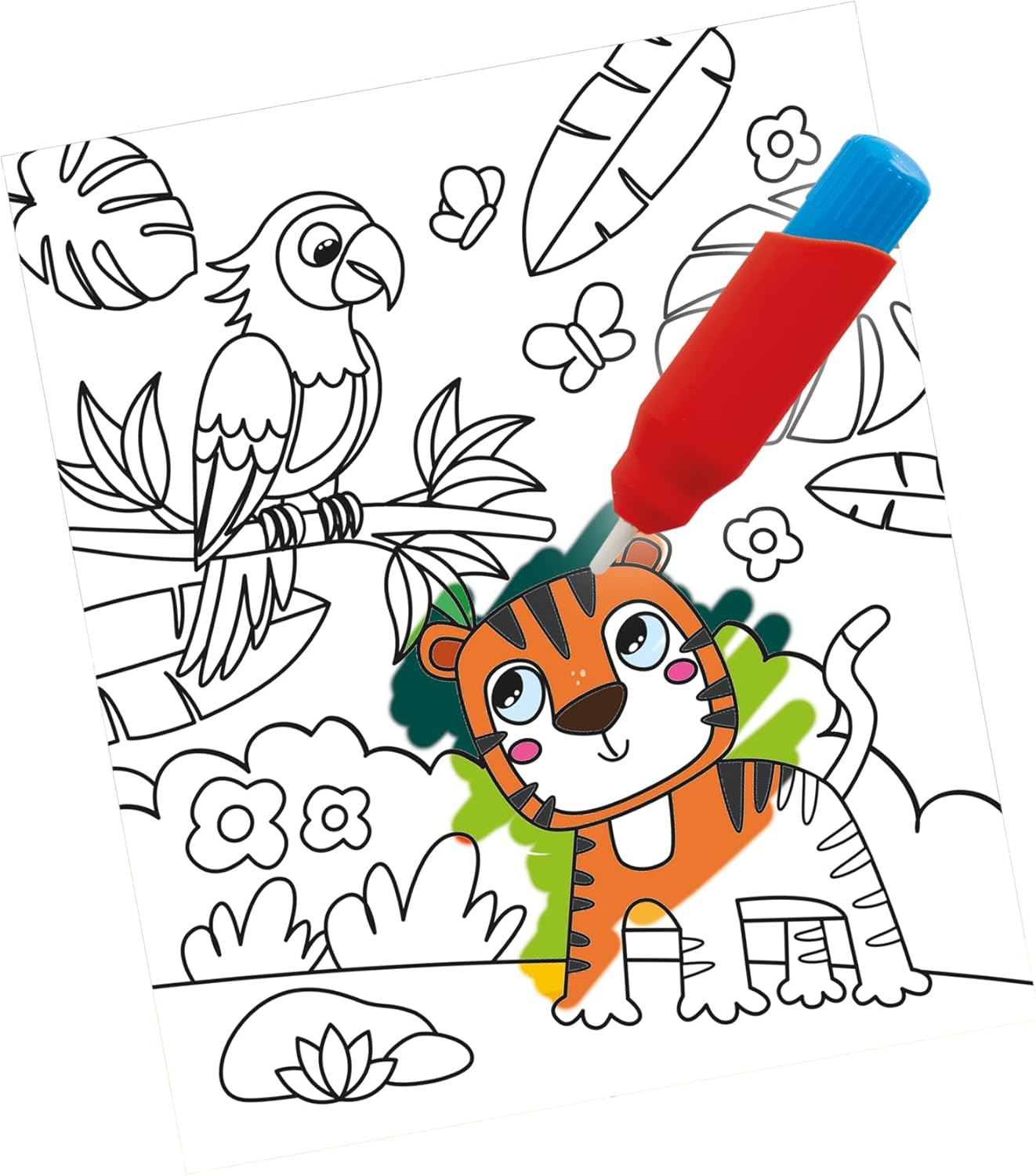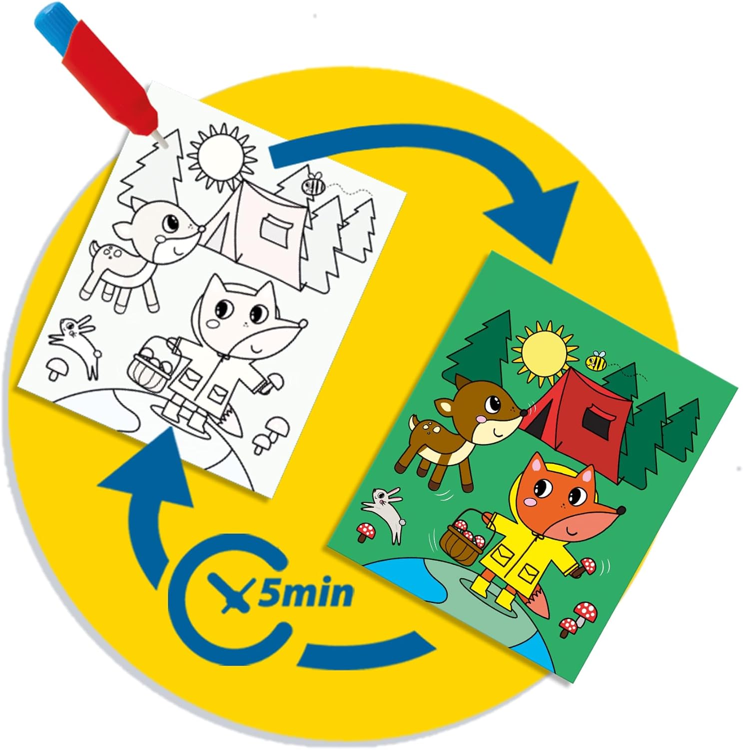 Goditi il divertimento creativo in viaggio con questo libro da colorare ad acqua in pratico formato da viaggio, ideale per piccoli artisti e perfetto per viaggiare! Il libro da colorare ad acqua contiene 5 pagine riutilizzabili e una penna speciale per dipingere con acqua, così i bambini possono dipingere senza macchie e disordine. Le immagini appaiono quando la matita d'acqua scivola sopra e scompaiono di nuovo quando si asciugano. I bambini possono dipingere all'infinito e creare sempre nuove opere d'arte. Compatto e leggero: questo libro da colorare ad acqua è perfetto per lunghi viaggi in macchina, tempi di attesa o viaggi, permettendo ai bambini di essere creativi ovunque e in qualsiasi momento. Realizzato con materiali sicuri e appositamente progettato per le mani piccole, dipingere con il kit ad acqua offre un modo senza stress e fantasioso per la progettazione. Pronto per la prossima avventura?