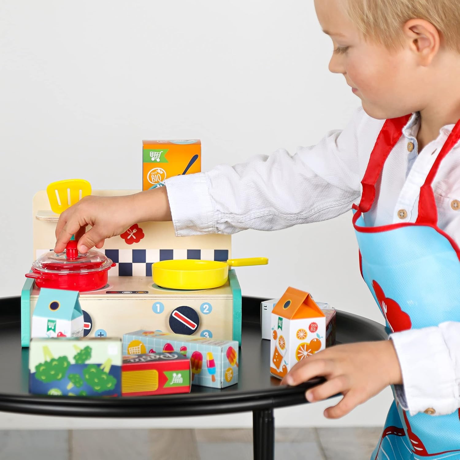 Cucina realizzata in legno vero Set di giocattoli completo per una vera esperienza di cucina Stimola l'immaginazione e la creatività mentre si gioca 16 articoli in miniatura Design moderno