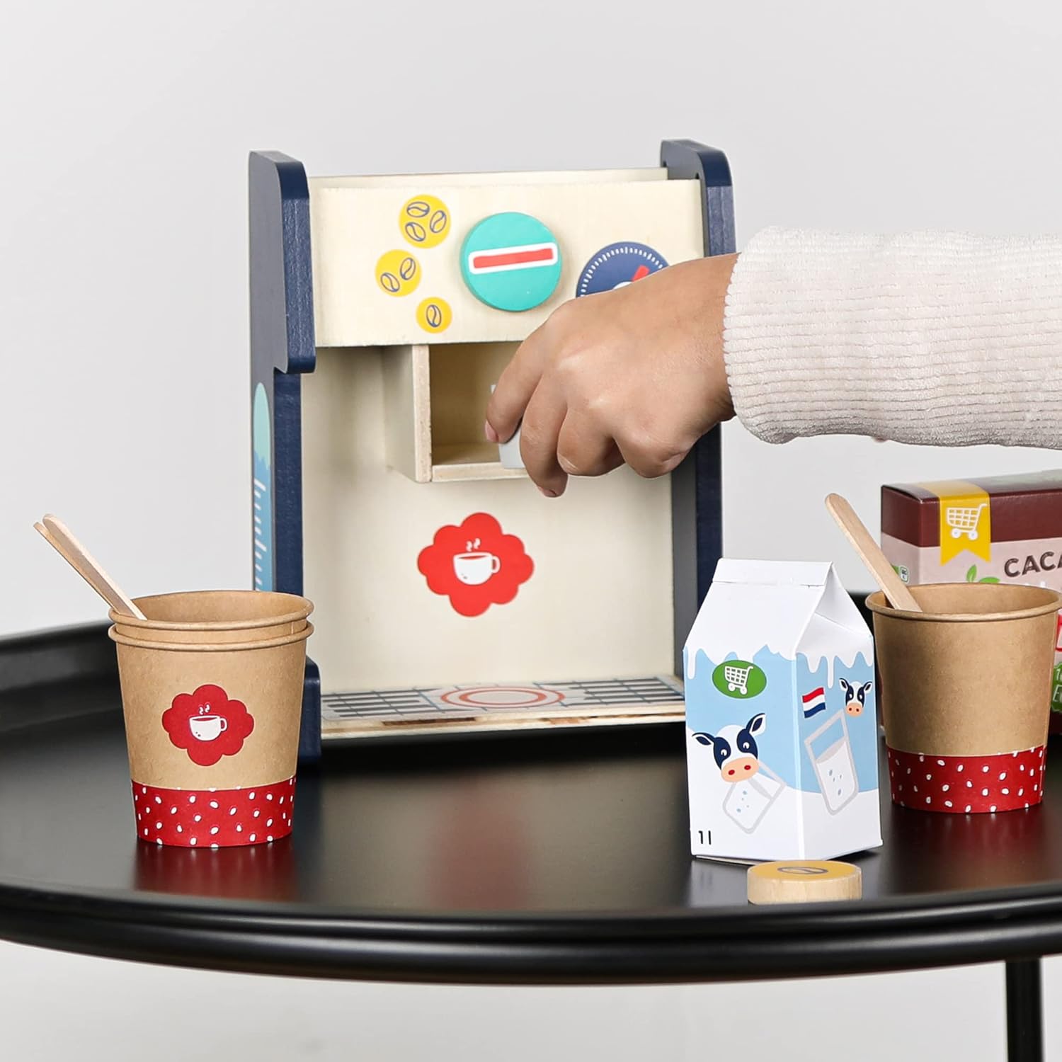 Set da caffè giocattolo realizzato in legno vero Design moderno, perfetto per qualsiasi ambiente Include accessori realistici Stimola l'immaginazione e la creatività mentre si gioca Tutto il necessario per giocare al barista per ore