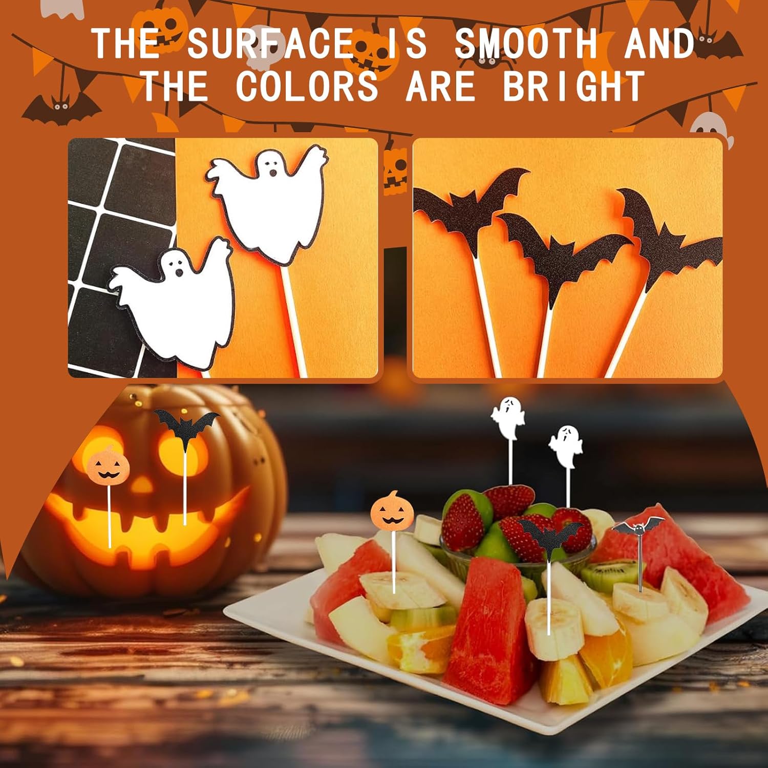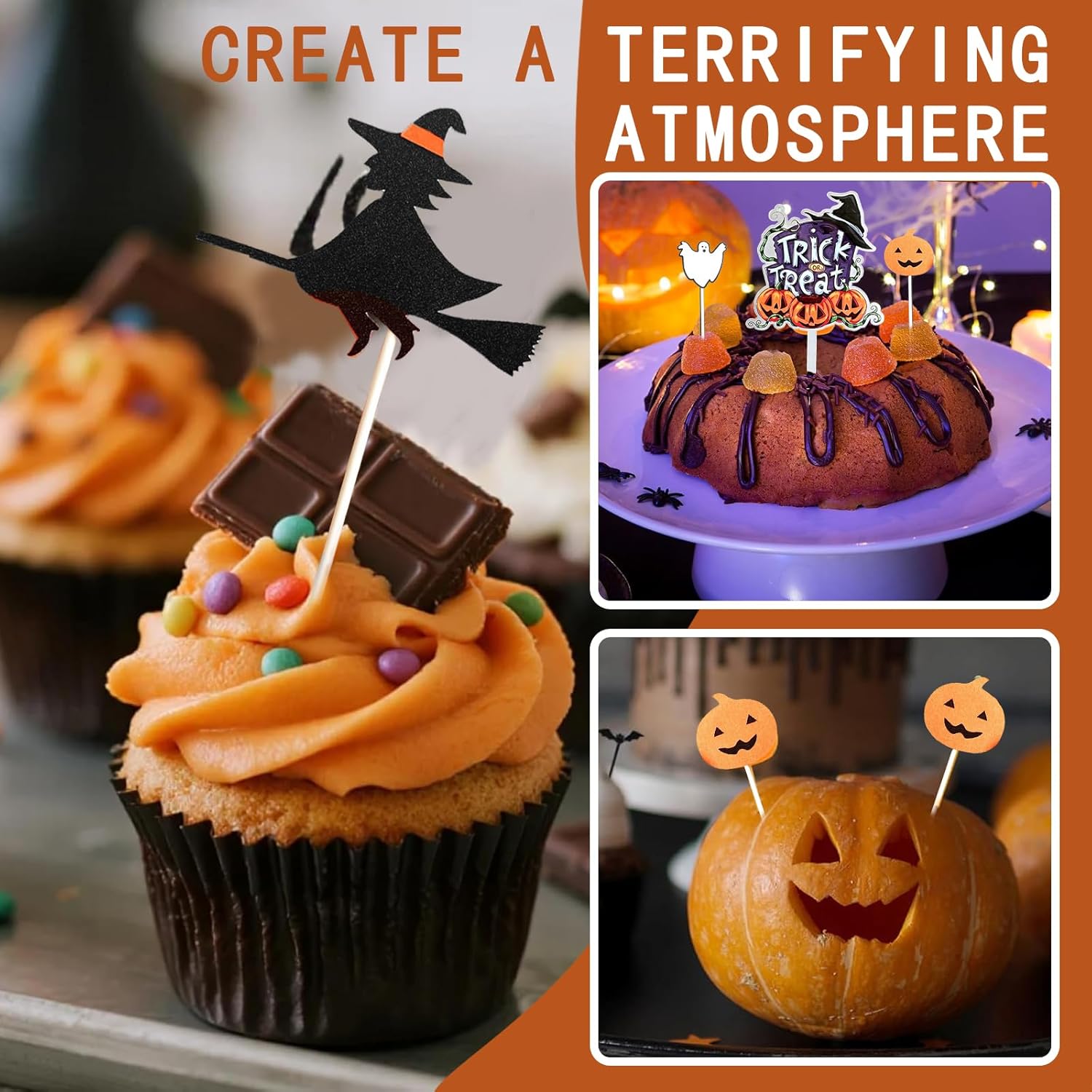 La confezione include: 10 bastoncini per spiedini di Halloween, 5 diversi tipi di design Halloween Stampa su entrambi i lati, molto leggeri e resistenti Facili e veloci da montare, adatti per torte, cupcake, biscotti, antipasti, ecc. Puoi usare questi graziosi topper per decorare torte, antipasti, frutta, cibo per feste e gelati Nota: questi graziosi topper per cupcake di Halloween non sono commestibili e non devono essere messi in forno, sono solo decorativi