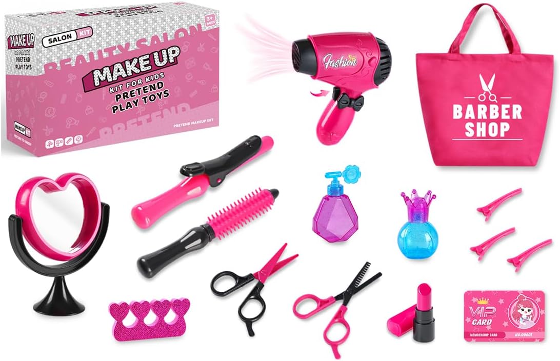 Set per parrucchieri: Asciugacapelli simulato 1, ferro arricciacapelli simulato 1, fermaglio simulato 1, borsa porta attrezzi per parrucchieri 1, forbici simulate 2, flacone spray 1, flacone di crema styling 1, mollette per capelli 3, rossetto simulato 1, carta VIP simulata 1, separatore di dita 1, specchio 1 Immergetevi in giochi realistici di parrucchiere: Questo set da parrucchiere per bambini da 15 pezzi mette il divertimento del parrucchiere a portata di mano del bambino. Esercitatevi a tagliare, lisciare, arricciare, acconciare e intrecciare i capelli con simulazioni realistiche Massima qualità e sicurezza di gioco: Gli strumenti del parrucchiere simulato sono realizzati in materiale ABS di alta qualità e tutti gli oggetti sono lisci e privi di bordi taglienti. Il design in scala è rivolto ai bambini dai 3 anni in su, per offrire una sensazione più realistica Design unico: Asciugacapelli di simulazione, adatto per creare diverse acconciature e migliorare l'esperienza di imitazione. I kit di acconciatura per bambini possono essere combinati per migliorare notevolmente l'esperienza di gioco Incoraggia la socializzazione e il legame familiare: Simulare il taglio dei capelli per superare l'ansia da taglio, condividere con gli amici per incoraggiare le abilità sociali o migliorare l'interazione genitori-figli. Con il kit di attrezzi abbinato, diventa subito un piccolo parrucchiere