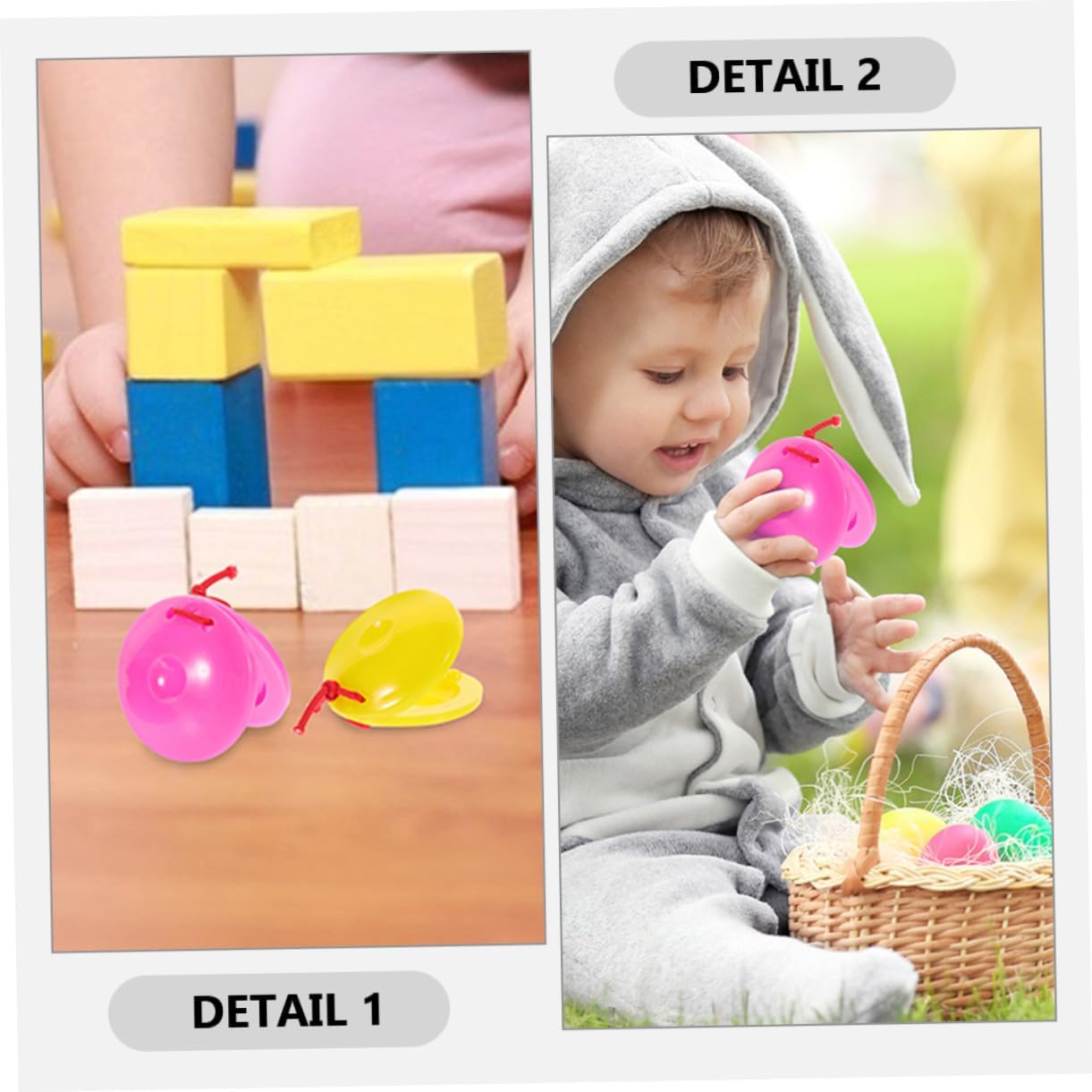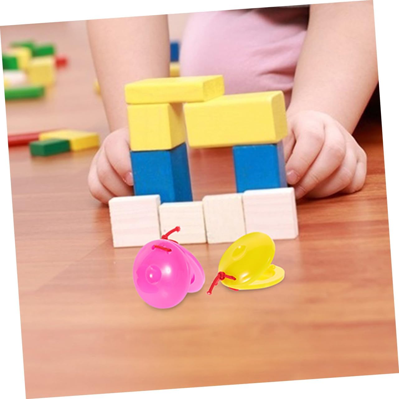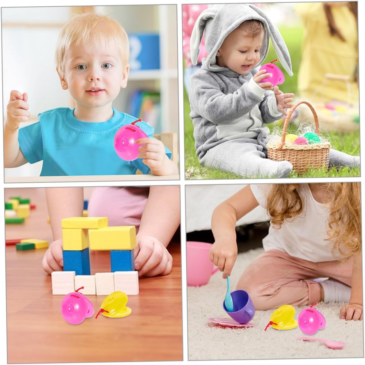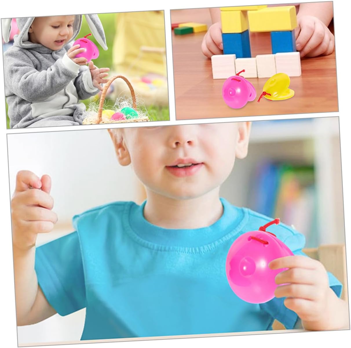 Strumenti per bambini piccoli: adatti per acquisti all'ingrosso da parte di asili nido e istituti di istruzione per la prima infanzia, percussioni fai da te per bambini Applicazione: può essere utilizzato all'asilo, in famiglia, nelle di musica e in altre occasioni, accessori per strumenti musicali per bambini, strumenti per bambini Facile da tenere e da usare: progettato con una presa comoda per i bambini piccoli che possono tenerlo e giocarci facilmente, strumento musicale, nacchere ritmiche Strumenti a percussione con nacchere a dita: la struttura dello strumento a nacchere è progettata per produrre un suono chiaro e nitido, nacchere di plastica per bambini Strumenti musicali: lo strumento nacchere migliora l'esperienza visiva dei bambini con il suo design colorato, nacchere musicali per bambini