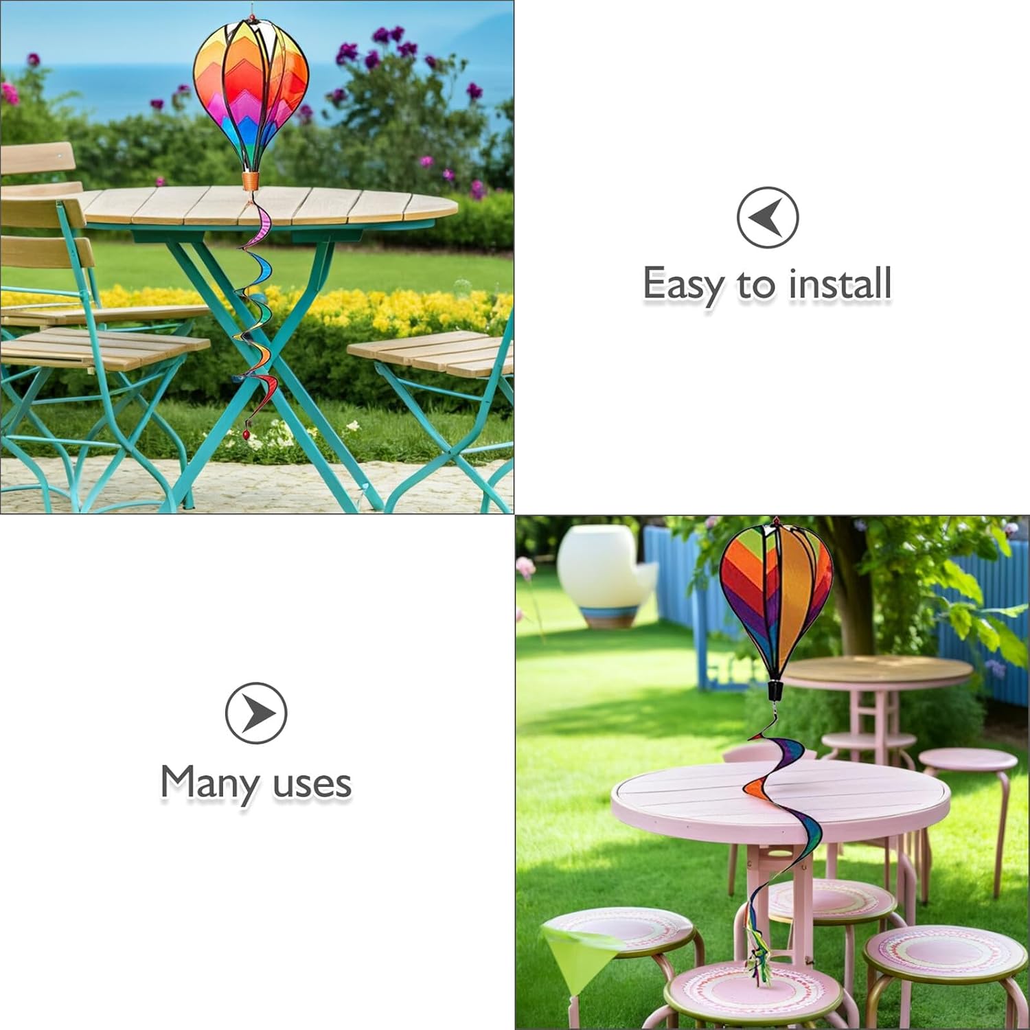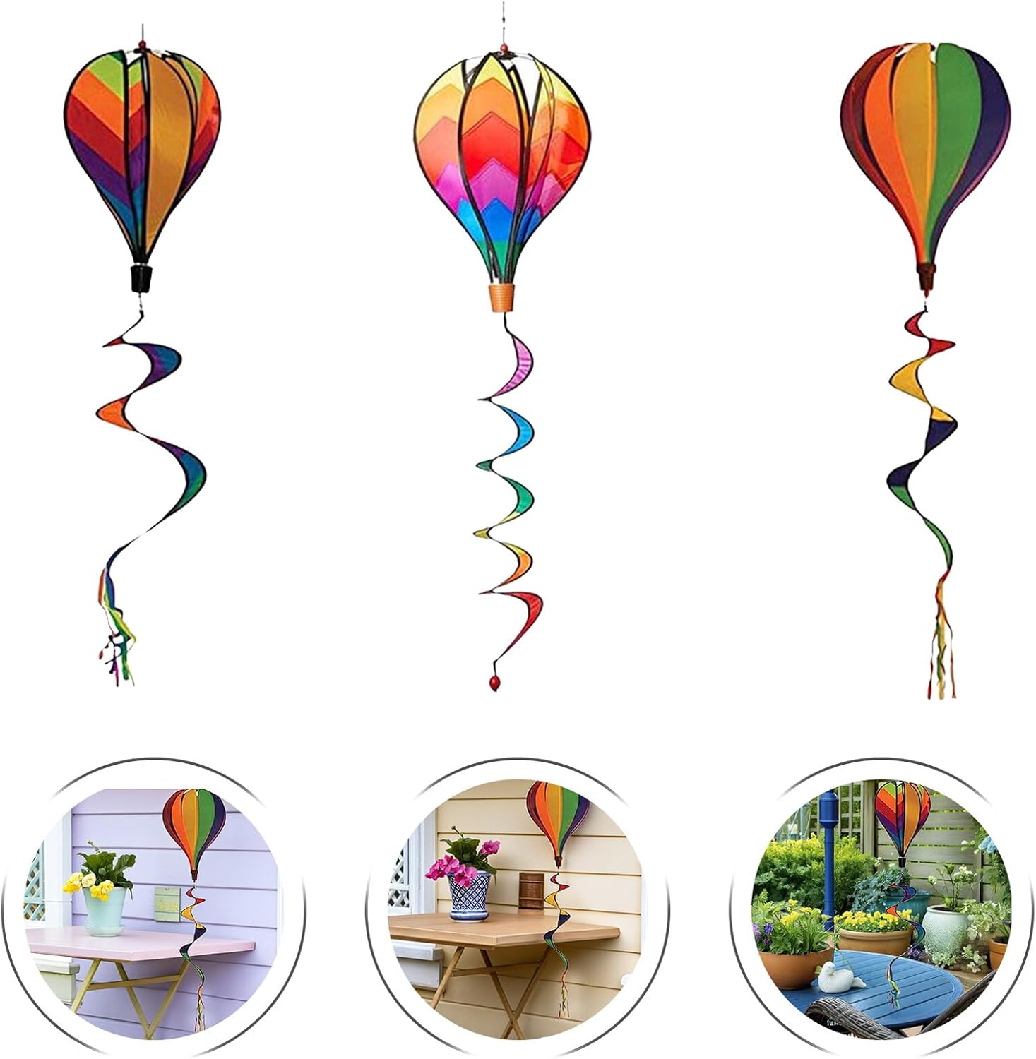 A forma di girandola: un'eccellente creazione, curata in ogni dettaglio per conferire loro un aspetto meraviglioso, decorazione con palloncini Girandole a vento a forma di : colorate, abbelliscono il tuo giardino; per una varietà di occasioni, cortili, giardini, aiuole, prati, feste, allestimenti di negozi, ecc., spirale sospesa a forma di Decorazioni a forma di : questa decorazione sospesa è perfetta per feste, asili, riunioni e così via, girandole a vento per mongolfiere da esterno Girandola da giardino con : perfetta per decorare cortili, giardini o campeggi all'aperto o picnic, decorazioni per esterni con Mulino a vento rotante colorato: le persone lo usano per scattare foto artistiche e di matrimonio, anche come decorazione!, sospesa
