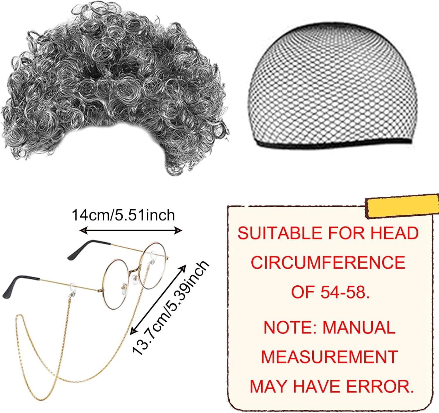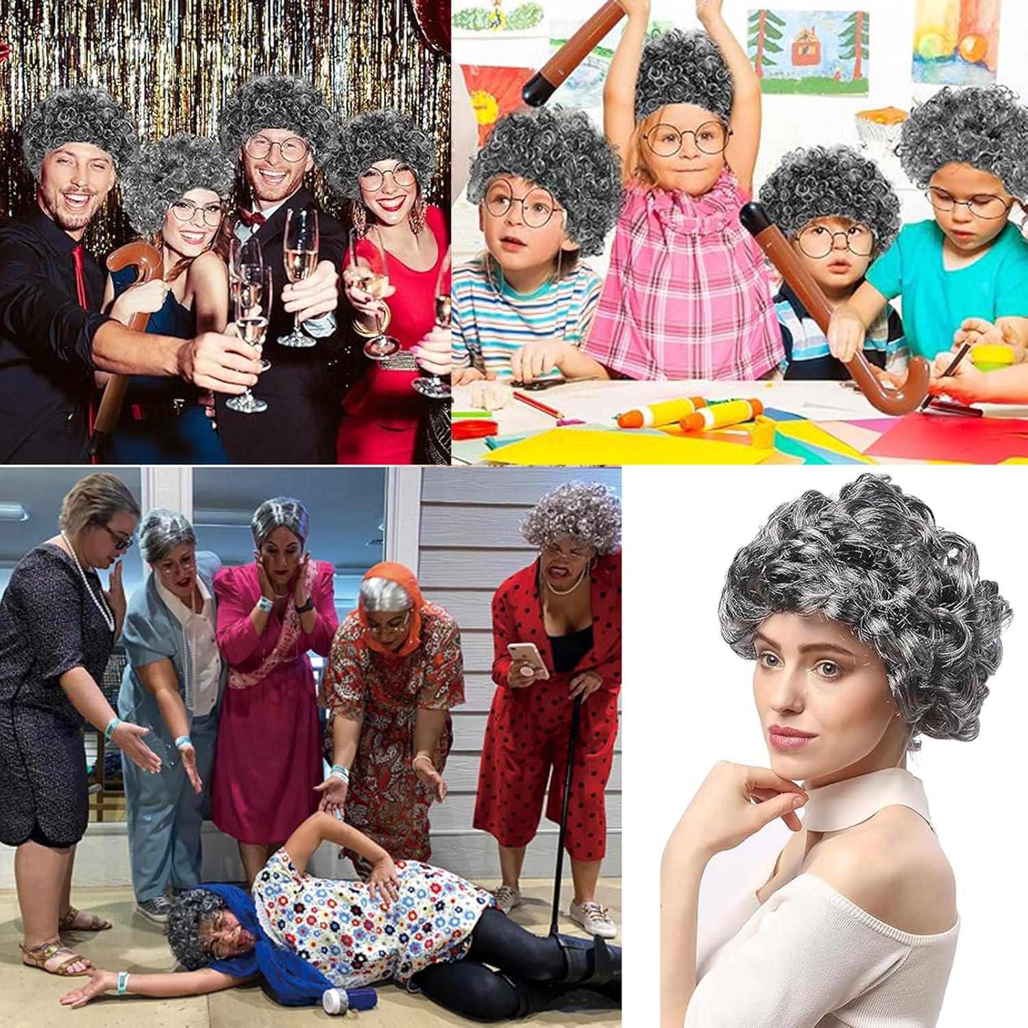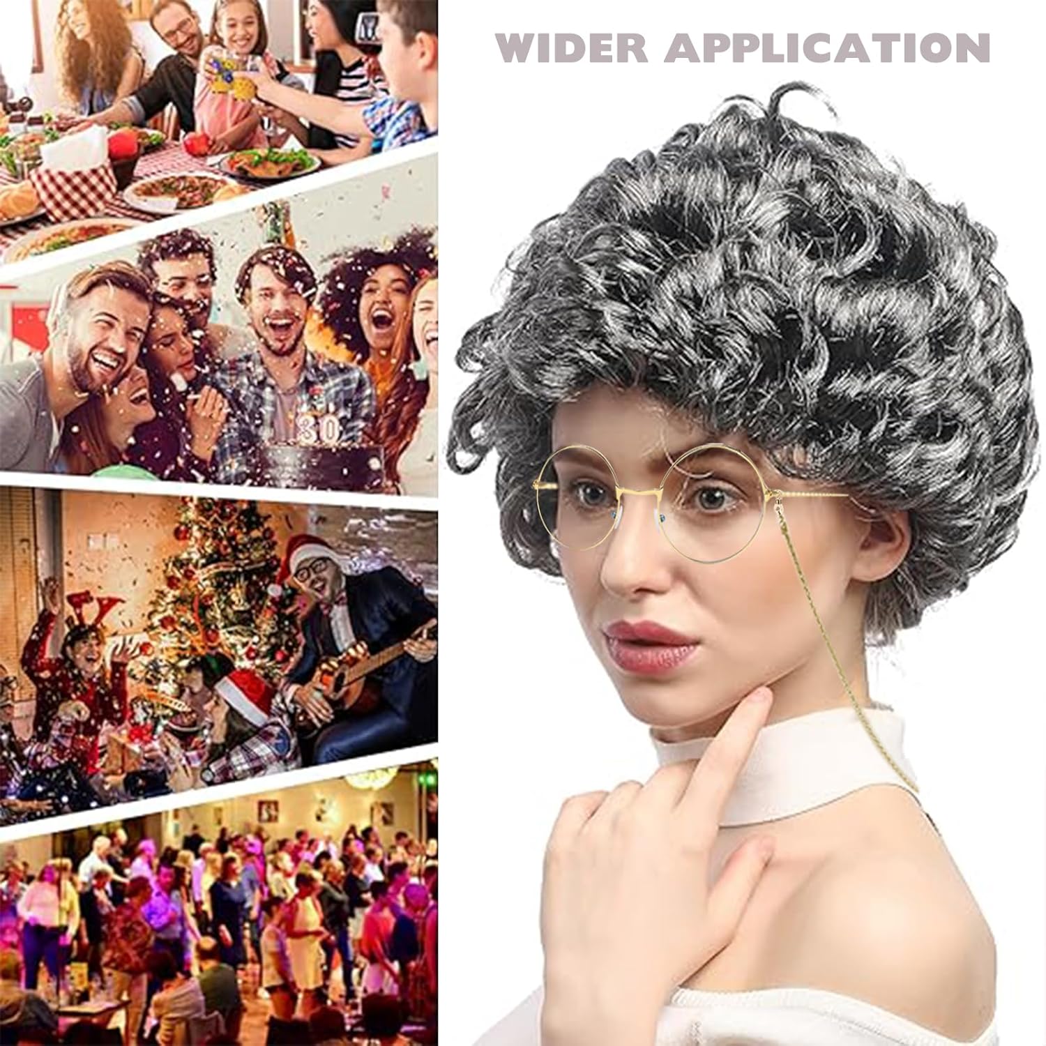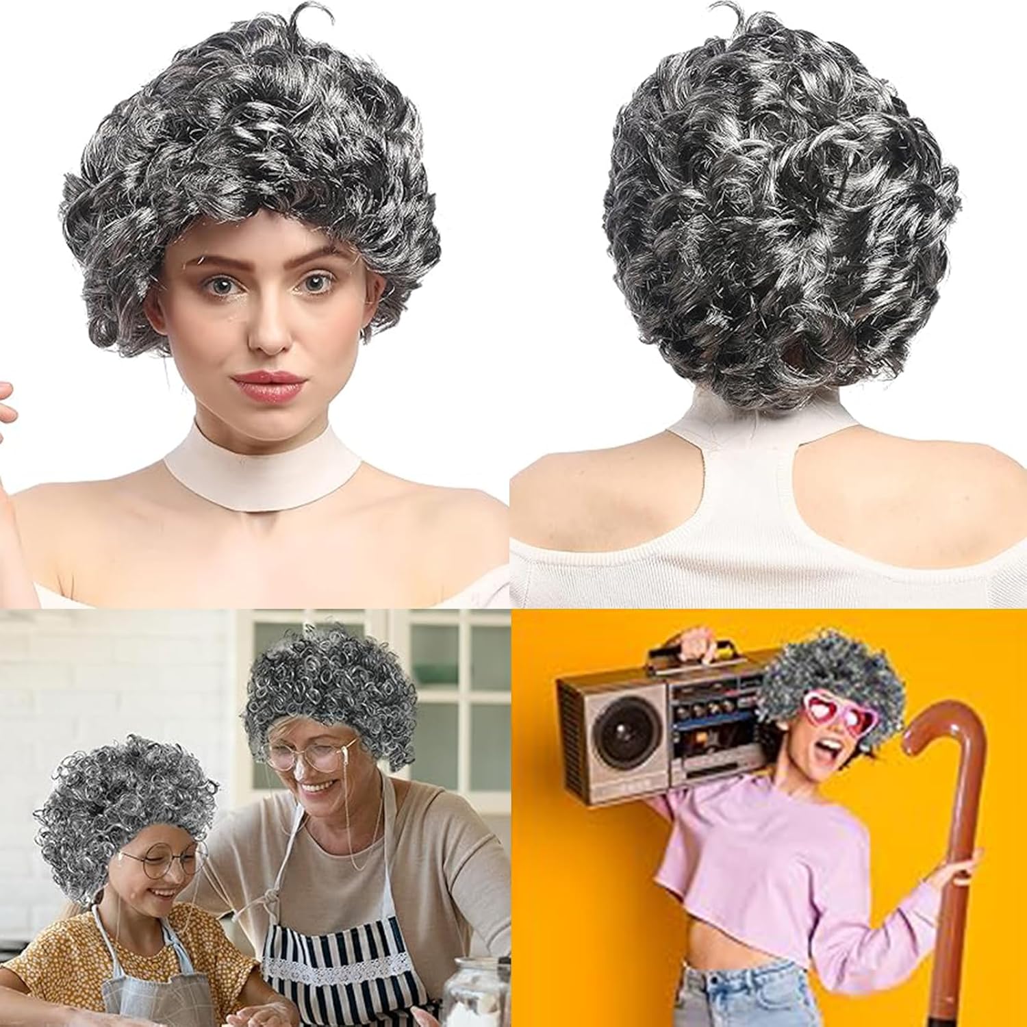 【Set cosplay vecchia signora】Otterrete 4 pezzi a Parrucca da Nonnina cosplay set, che comprende parrucca nonna, rete di capelli, occhiali, occhiali catena. Questi Costume Accessorio possono facilmente aiutarvi a giocare di ruolo e farvi diventare il fulcro della festa. 【Aspetto realistico】La Grigio Nonna Parrucca e gli occhiali della nonna con cinghie a catena per occhiali possono migliorare rapidamente l'aspetto della tua età. Questo set cosplay da vecchia signora è divertente e realistico, rendendo il vestirsi più piacevole! 【Materiali di qualità】Le nostre parrucche sono realizzate esclusivamente in materiale PET di alta qualità, morbido, naturale e comodo da indossare. La rete per capelli è in nylon, gli occhiali sono in metallo e lenti AC e la catena degli occhiali è in lega. 【Facile da Indossare】Il nostro parrucca nonna capelli grigi e Cuffia per Parrucca sono elasticizzate, adatta per bambini, adattarsi a teste di varie dimensioni, adulti e la maggior parte delle persone, comode da indossare e facili da togliere. 【Usi versatili】Travestimento da Vecchia Signora perfetto per costumi di Halloween, costume da vecchia signora, cosplay, Giornata mondiale del libro, spettacoli teatrali e qualsiasi evento in cui si desidera fare un'impressione!
