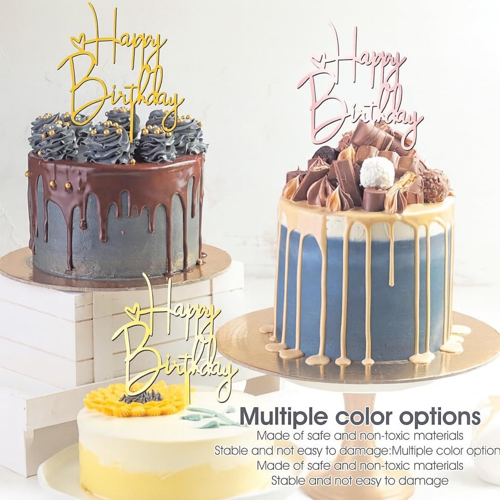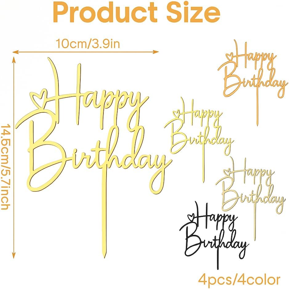 🎂 Decorazione Torta: 4 colori (Nero, Argento, Oro, Oro Rosa), dimensione 10×14,5 cm. 🏆 Qualità Eccellente: Realizzato in acrilico di alta qualità, resistente, riutilizzabile e facile da pulire. ✨ Design Elegante e Unico: Font artistico che aggiunge raffinatezza e atmosfera festosa. ⏱ Facile da Usare: Basta inserirlo nella torta, senza attrezzi, veloce e pratico. 🎉 Uso Versatile: Perfetto per compleanni, baby shower, lauree, anniversari, San Valentino e altro.
