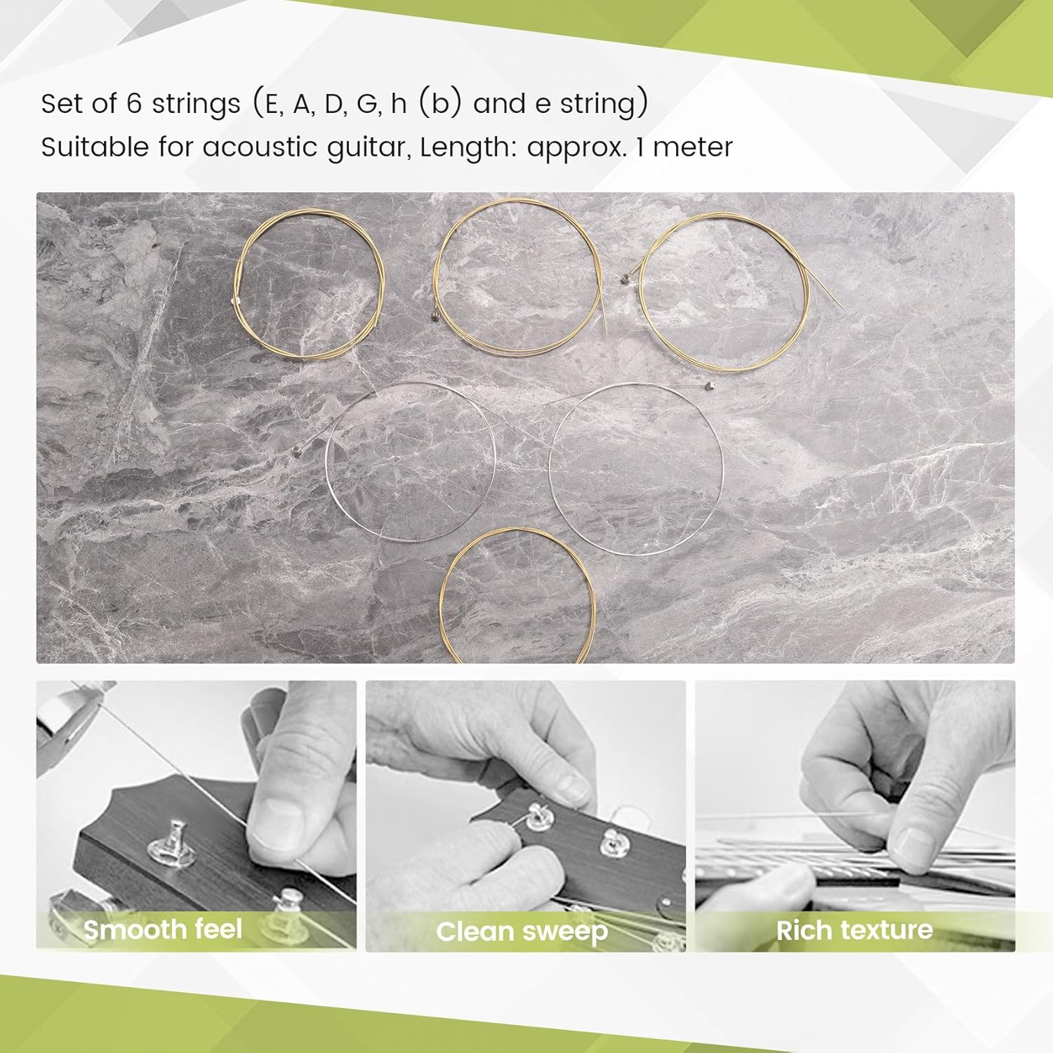 Nuovissimo e di alta qualità Lunghezza: ca. 1 metro Adatto per chitarra acustica Set di 6 corde (Mi, La, Re, Sol, Si (si) e Mi) Diametro: