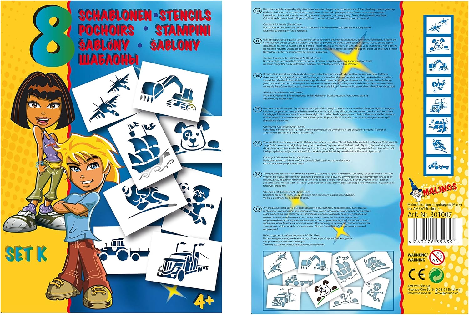 Confezione contenente: 4 timbri in legno,60 pennarelli, 1 inchiostro blu lavabile, 1 album da colorare, 30 stickers