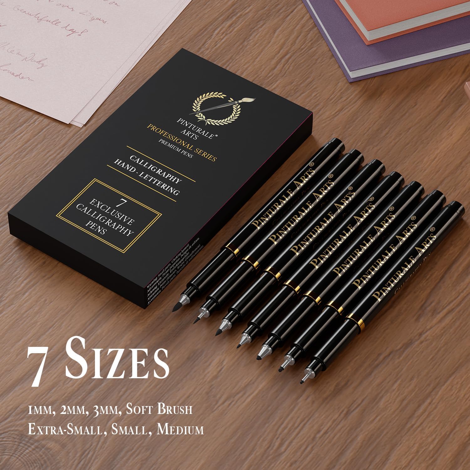 Massimo Controllo - Le punte dei pennarelli lettering sono sensibili alla pressione. Ciò ti assicura un controllo totale dei tuoi tratti per creare l'opera d'arte perfetta. Inchiostro Premium Resistente - Abbiamo progettato il set con inchiostro nero di massima qualità che garantisce che i pennarelli non si secchino mai. I nostri standard: pennarelli morbidi, consistenti e inchiostro a lunga durata. Totale Libertà Creativa - Lascia libera la tua creatività. Composto da 7 penne per lettering di diverse dimensioni, sono ideali per il lettering, la calligrafia e il disegno. 100% Soddisfazione - Pinturale Arts offre prodotti artistici di qualità superiore. La nostra priorità è la piena soddisfazione dei nostri clienti. Se hai domande su questo prodotto, non esitare a contattarci e saremo felici di aiutarti! Il Regalo Perfetto - Per gli amanti del lettering, della calligrafia e dell'arte, dai principianti agli artisti più esigenti. Una grande idea regalo per compleanni, Natale, anniversari o qualsiasi tipo di celebrazione. Non si dimenticheranno mai di voi!