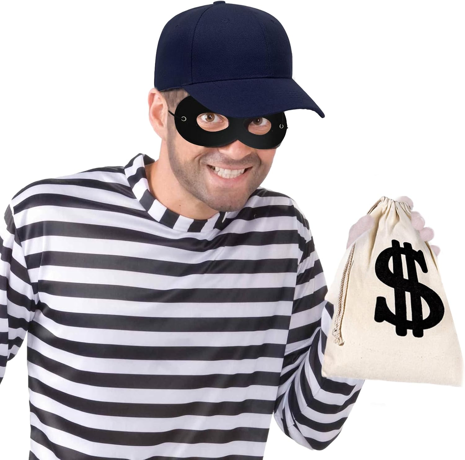Descrizione del prodotto Set di accessori per cosplay da ladro, maschera da ladro+cappello+guanti+borse, accessori per costumi da ladro, cosplay da ladro, costume cosplay/Carnevale/Festa a tema/Halloween Avviso di sicurezza Utilizzare sotto la supervisione di un adulto
