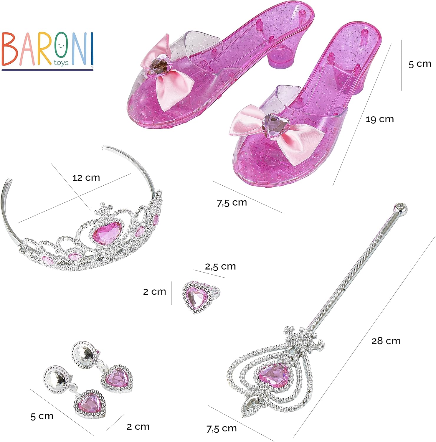 GIOCO PER BAMBINE ACCESSORI DA PRINCIPESSA – Il set da principessa Baroni Toys è composto da tantissimi accessori: corona, scarpe con il tacco, orecchini, anello e bacchetta magica. Una varietà di accessori realistici per il massimo divertimento delle tue figlie. GIOCARE E IMPARARE – Grazie al suo design realistico, il set per il travestimento da principessa giocattolo Baroni Toys, farà innamorare le tue bambine. Impareranno a riconoscere ed utilizzare gli accessori in dotazione e la loro funzionalità. GIOCO DI RUOLO EDUCATIVO E DIVERTENTE – Il set da principessa con corona Baroni Toys è pensato per favorire il gioco di ruolo e le abilità psico-motorie della tua bambina. Tua figlia imparerà a farsi bella sentendosi una vera regina! MATERIALI SICURI DI ALTA QUALITA’ – Noi di Baroni Toys utilizziamo solamente materiali sicuri e atossici. Tua figlia potrà utilizzare il set da parrucchiera da sola in piena autonomia e sicurezza, con te o in compagnia delle sue amiche. I bambini saranno felici e si sentiranno più autonomi, i genitori si sentiranno tranquilli e sereni. FAVOLOSA IDEA REGALO PER BAMBINI - I bambini e le bambine amano i giochi di ruolo manuali; amano sperimentare ed inventare andando a riproporre gli scenari e le azioni che vedono fare ai genitori o ai nonni. Questo è fondamentale per la creazione del carattere e della personalità. Utilizzabile da bambini dai 3 ai 7 anni.
