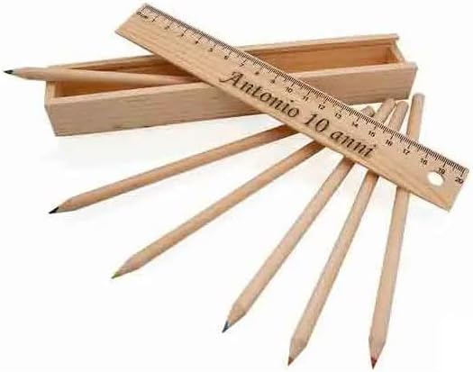 Sei stanco di regalare oggetti banali ? Allora questi set per disegno con 6 matite colorate e righello con incisione personalizzata fanno al caso tuo! Possono essere personalizzati con nome e con un testo o una dedica. Cliccate su “Personalizza Ora” per trasmetterci i vostri dati e noi realizzeremo un ricordo indelebile! Un modo originale per creare regalini fine festa e bomboniere o segnaposto per eventi di ogni genere. Ogni invitato rimarrà a bocca aperta. Indicate il testo che preferite e noi realizzeremo un ricordo indelebile! Un oggetto prezioso e di qualità. Ogni set è realizzato con un laser preciso che garantisce una bella rifinitura con dei bordi arrotondati. Ogni pezzo è unico e viene creato soltanto per voi! L'incisione viene fatta con il laser ed è dunque ben leggibile e definita. Se siete alla ricerca di un regalo originale e stupefacente questi set disegno personalizzati realizzati nel nostro laboratorio sono la scelta giusta!