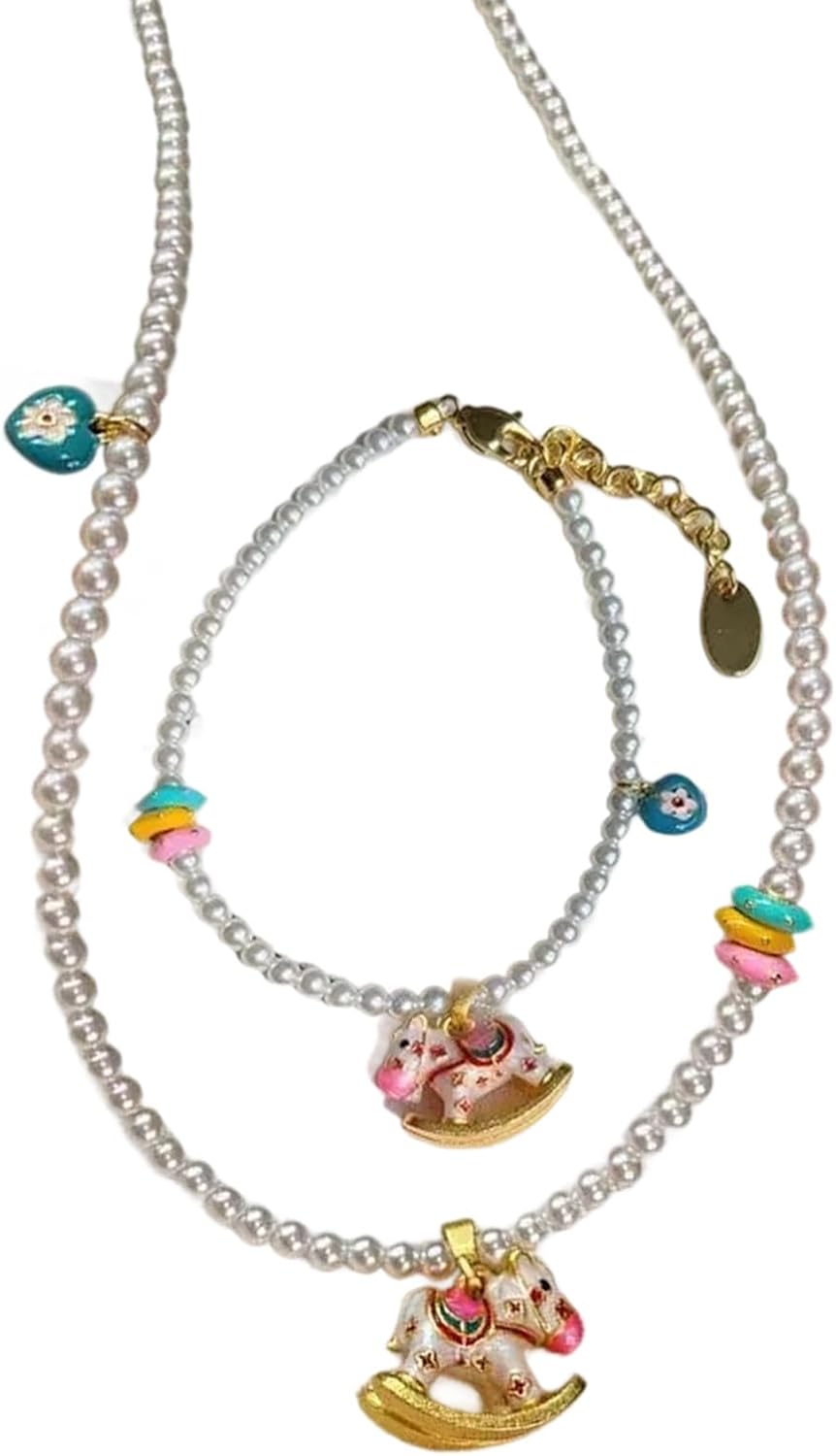 Elegante set accessori con perle ispirati cavallo a dondolo, chiusura e comoda vestibilità per donne e ragazze Caratteristiche: Questo set collana e braccialetti perle cavallo a dondolo presenta perle finte, che mostrano finitura naturale e consistenza fine per cene formali o riunioni lavoro. Progettati pensando all'ergonomia, la collana che i bracciali garantiscono comfort anche durante l'uso prolungato, ideale per occasioni prolungate o spostamenti quotidiani set può essere indossato separatamente o insieme, adattabile a varie situazioni dalle uscite casual all'ambiente professionale, esaltando stili personali. Realizzato con fermagli in lega e perle, questo set è progettato per prestazioni lunga durata, resistendo scolorimento e ai danni, adatto a chi cerca accessori lifestyle design del cavallo a dondolo aggiunge un tocco giocoso, evocando ricordi d'infanzia, rendendolo un'ottima aggiunta per legame genitore-figlio durante le riunioni o le attività famiglia. Specifiche: Materiali: perle finte, rame Dimensioni: collana 40+5 cm/15,75+1,97 pollici, bracciali 17+3,5 cm/6,69+1,38 pollici La confezione include: Set braccialetti con collana a cavallo a dondolo da 1 pezzo Nota: 1.Si prega consentire errori 1-2 cm dovuti alla misurazione manuale, assicurandosi che non ti dispiaccia prima ordinare. 2.A causa delle differenze tra i diversi monitor, l'immagine potrebbe non riflettere colore reale.