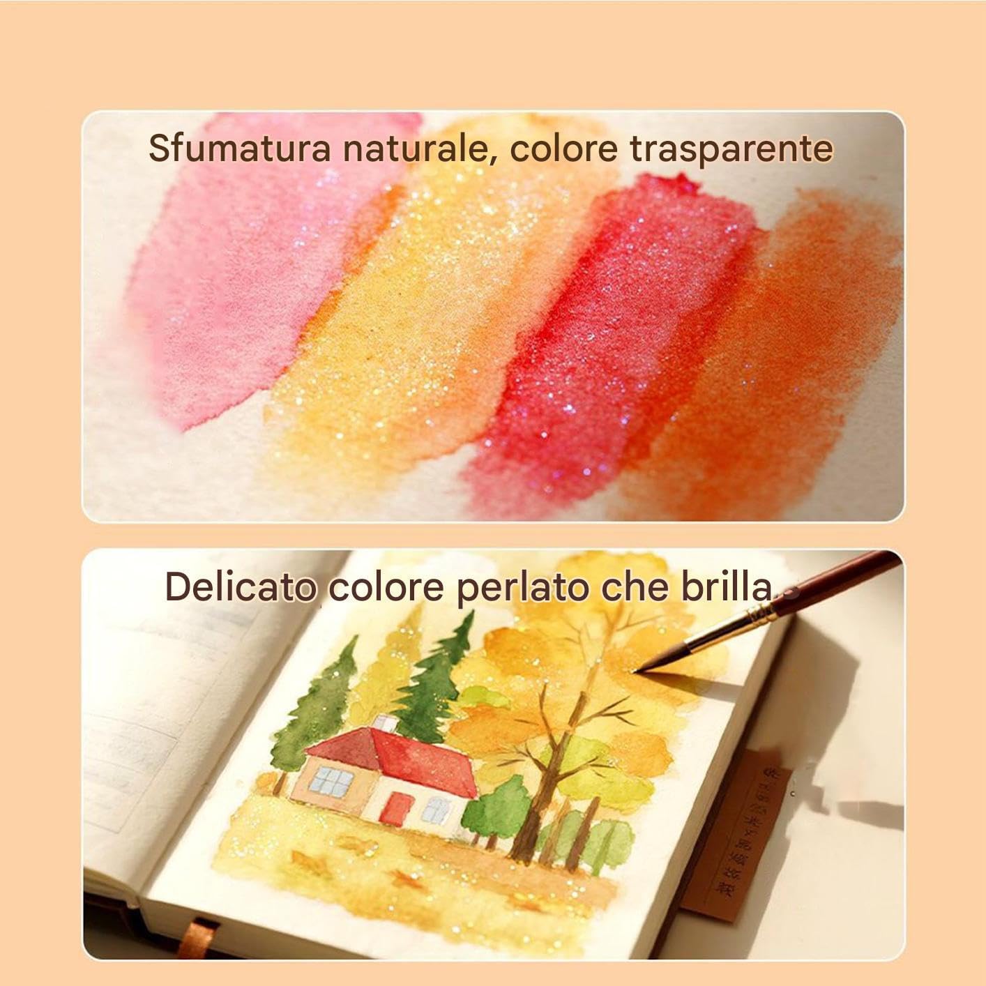 Utilizzi Versatili: I colori ad acqua sono strumento artistico ideale per la scuola, perfetti per graffiti durante i viaggi, creazioni creative nei caffè e schizzi all'aperto, offrendo agli artisti un mezzo affidabile per dare vita alle loro idee imaginative in diverse situazioni Regalo Ideale: Questo set di colori a tempera è la scelta perfetta per le feste, permette ai bambini di esplorare il loro lato artistico con ore di divertimento coinvolgente, ideale per occasioni speciali come compleanni e celebrazioni stagionali Ideale per Esterno: Il design portatile e compatto del set di acquerelli per adulti rende il dipingere all'aperto semplice e conveniente, permettendo di portare la creatività ovunque con dimensioni adatte a borse e zaini per accesso immediato a viaggi o attività nella natura Innovazione Pigmenti: Questo set di acquarelli unisce finiture perlati e opachi con effetti cromatici avanzati, creando profondità visiva stratificata per espressione artistica versatile. Ideale per studi professionali e progetti casual, permette di realizzare opere con texture coinvolgenti. Espressione artistica: Questo set di acquarelli favorisce la creatività attraverso la colorazione a mano e la pittura ad , semplificando la realizzazione di biglietti unici, decorazioni per journal e design per unghie con stile raffinato e risultati coerenti