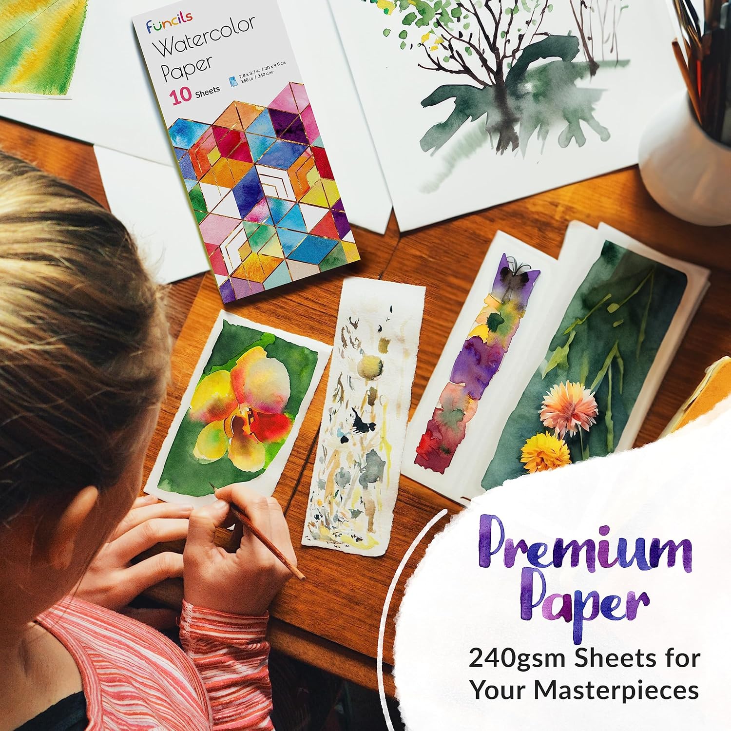 | Componenti incluse | 3 pennelli per acquerello, 10 fogli di carta, 1 matita, 1 gomma impastata, 1 penna per acquarelli, 1 pennarello nero, 1 spugna |