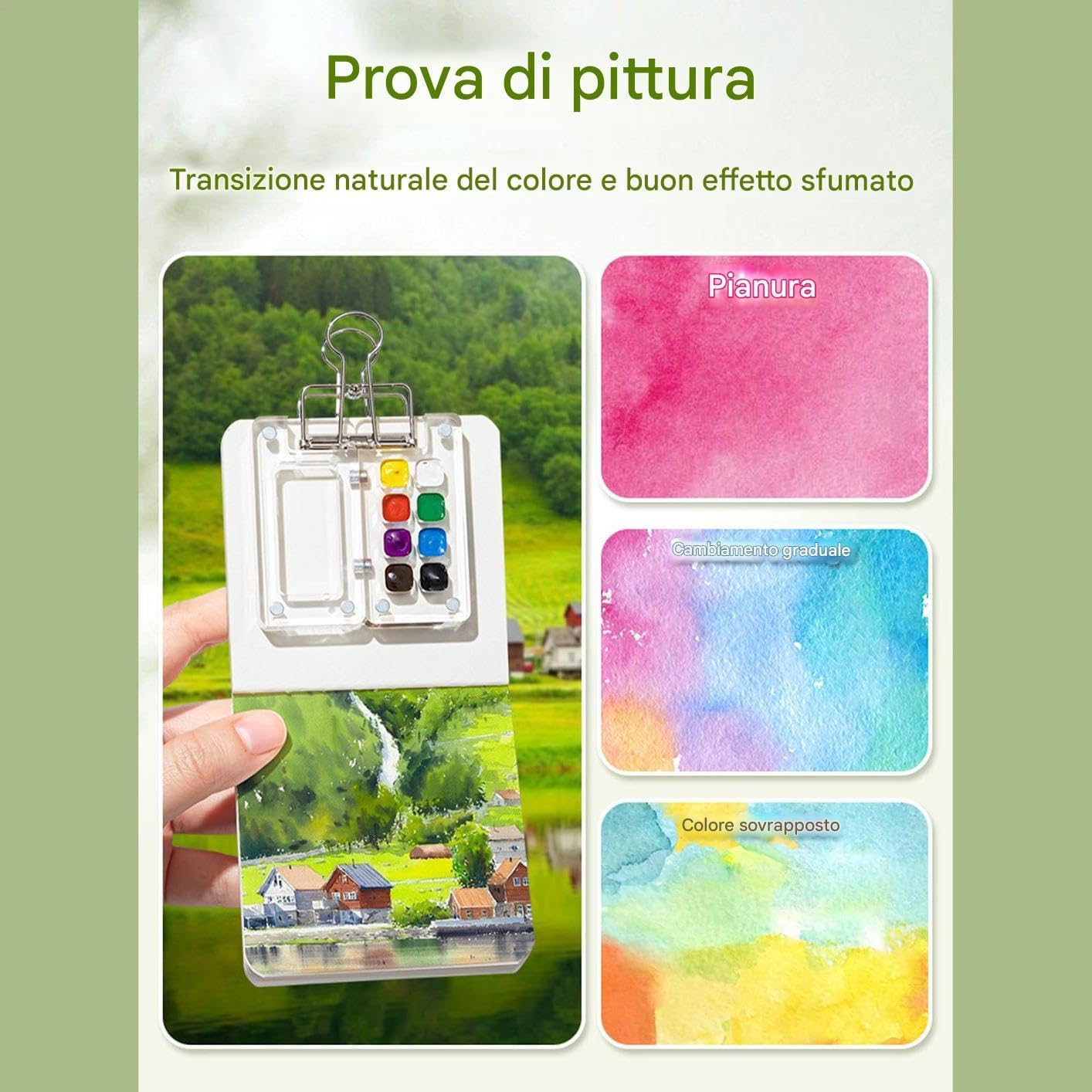 Cromatiche: Realizza rendering perfetti con sovrapposizioni morbide di colore, potenziate da un libro da disegno di qualità per dettagli espressivi in ogni creazione ad Praticità in Viaggio: Progettato per appassionati d'arte in viaggio o all'aperto, il kit compatto unisce leggerezza a funzionalità essenziali come un affidabile attacco e pennello per schizzi fluidi ovunque ti porti l'ispirazione. Per Tutte le Età: Strumento per affinare tecniche pittoriche in modo piacevole. I colori ad acqua stimolano creatività e apprendimento progressivo, garantendo un'esperienza soddisfacente a bambini, ragazzi e adulti appassionati d'arte. Kit Completo:Set acquerelli con scatola pittura compartimenti multipli, include vari colori per soddisfare esigenze creative, ideale per principianti e pittori esperti con palette integrata per sperimentazione artistica versatile Esprimi la creatività: Scatola con scomparti favorisce sviluppo artistico e creatività offrendo archiviazione strutturata per colori ad durante il lavoro