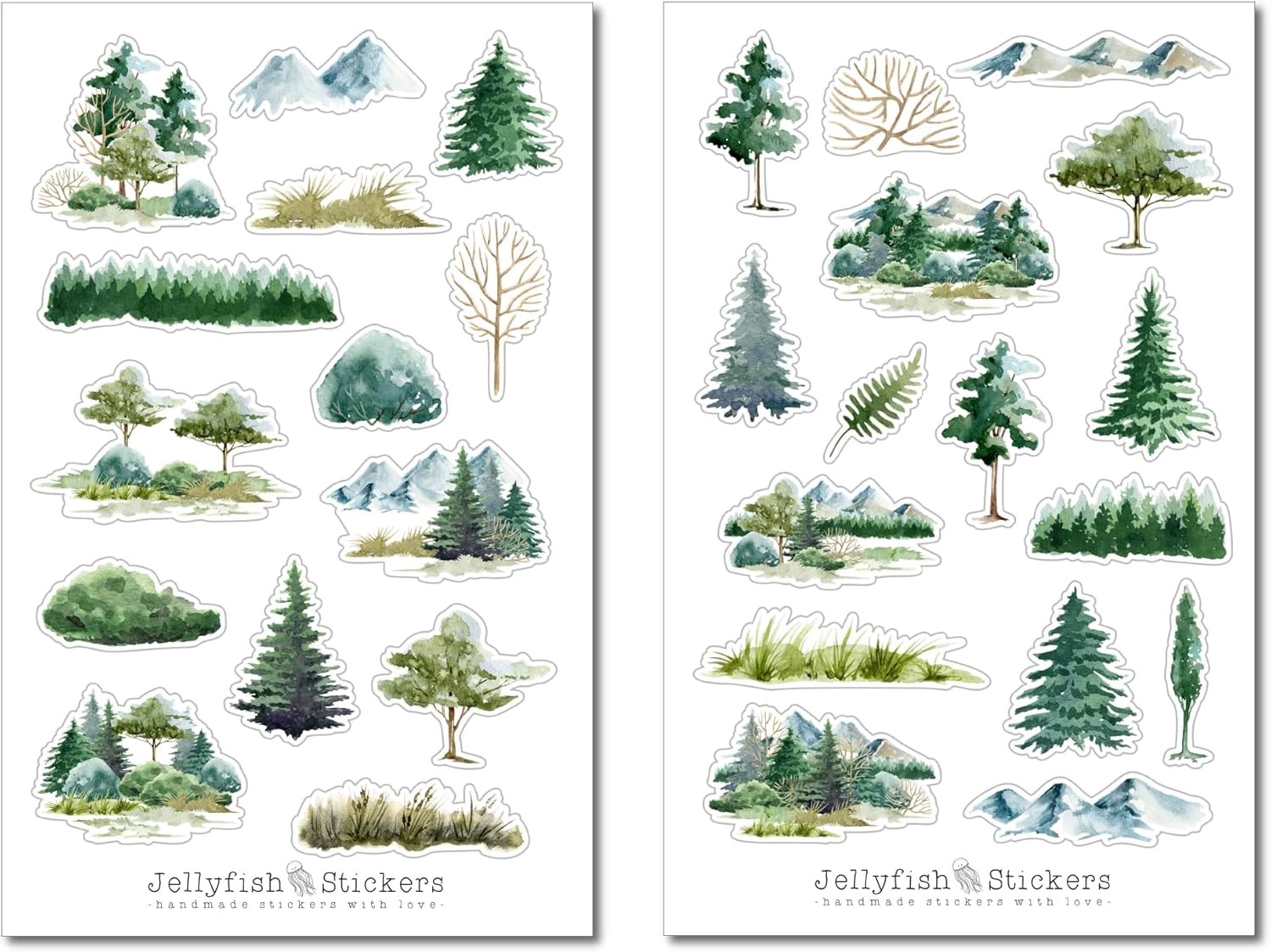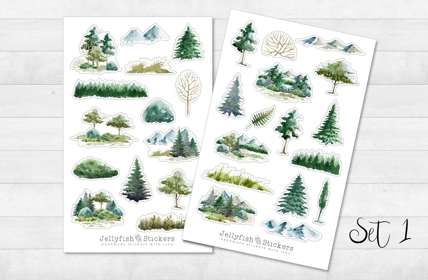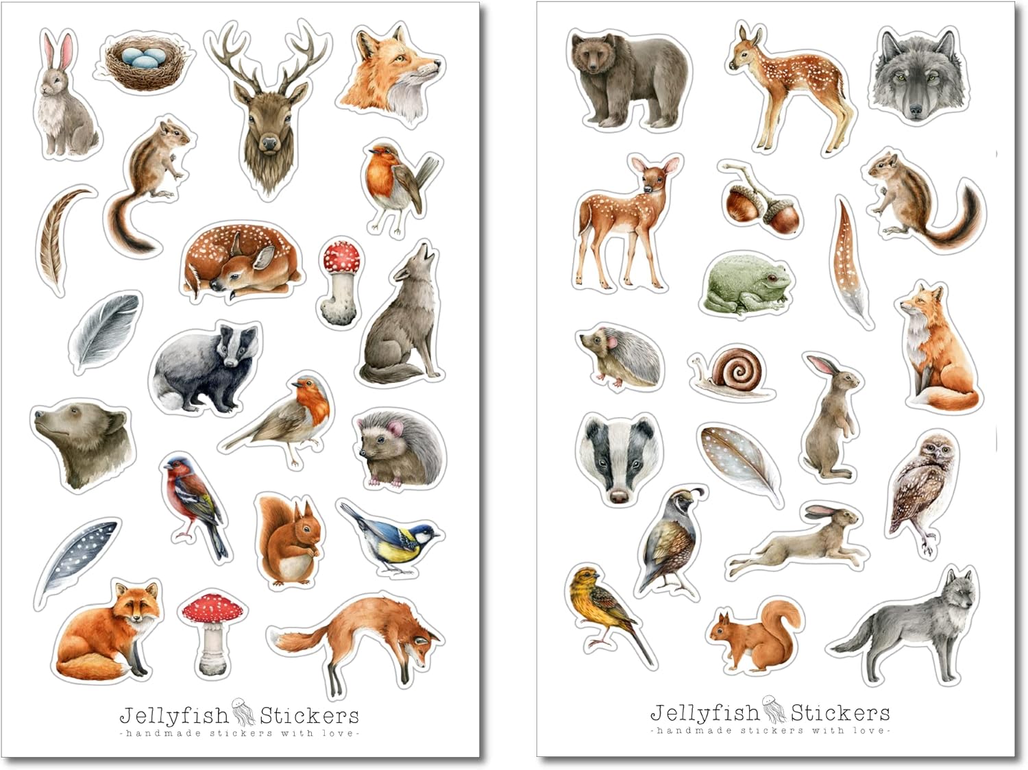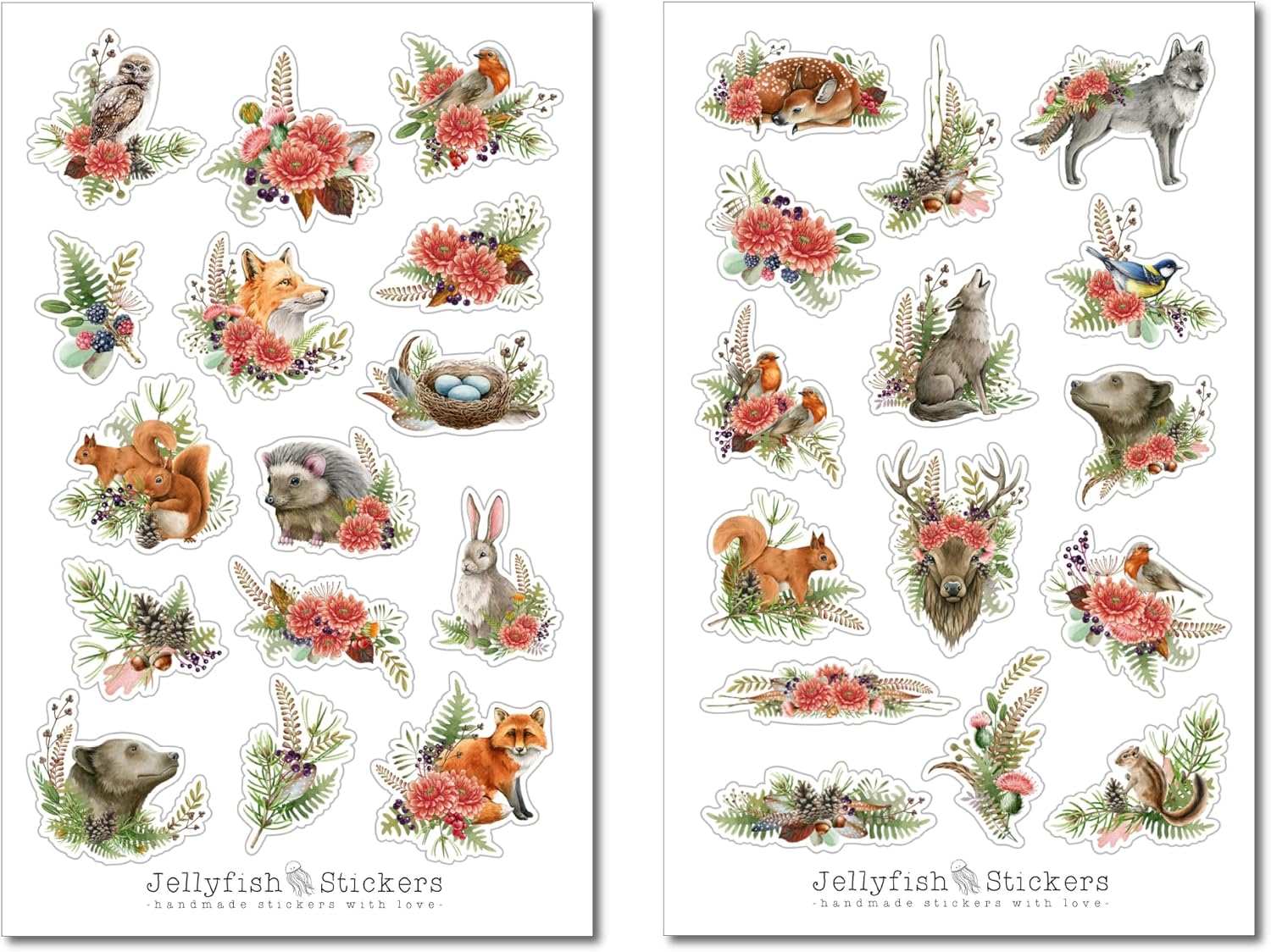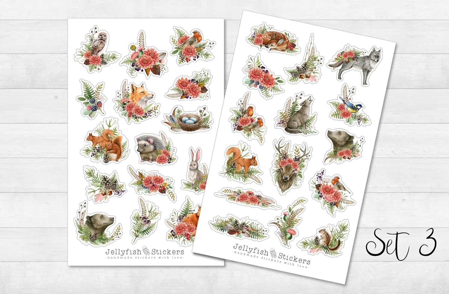 Set adesivi animali della foresta - Adesivi per diario, adesivi Natura, foresta, alberi, natura selvaggia, foreste, lupo, volpe, orso, cervo, fiori, foglie, piante