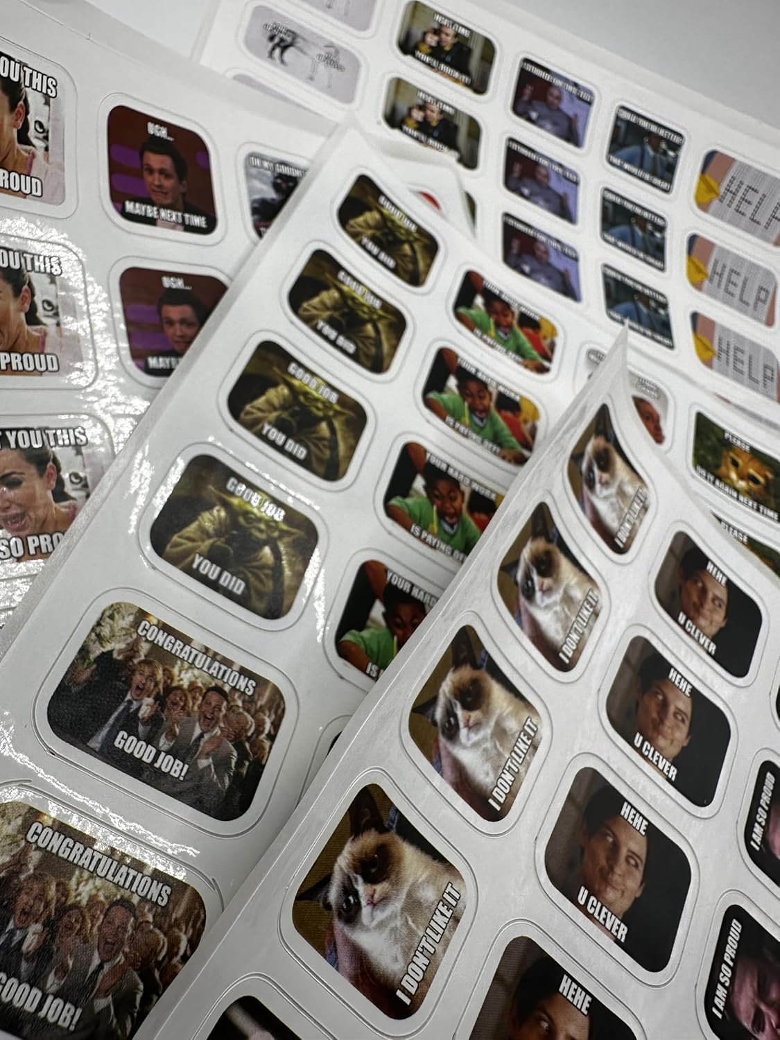 👩🏽🏫🧑🏼🏫 Gli insegnanti prestano attenzione. Dare i voti può essere difficile, soprattutto quando si tratta di voti brutti. Con i nostri adesivi meme hai l'opportunità di dare una svolta molto speciale al processo di valutazione e di mettere un sorriso sul tuo volto e su quello dei tuoi studenti, indipendentemente dal fatto che tu voglia lodarli o incoraggiarli. 🖼 Meme. I motivi dei nostri adesivi meme sono i meme più famosi e divertenti di Internet che sono diventati virali su piattaforme come Instagram, Reddit o Pinterest. 📐 Dimensioni. I nostri adesivi meme vengono inviati in una busta C4. Gli adesivi stessi hanno dimensioni comprese tra 24 x 24 mm e 33 x 24 mm. 🔢 Contenuto. Ogni confezione include quattro fogli di adesivi. In totale riceverai 55 adesivi diversi sei volte ciascuno, ovvero 330 adesivi. ✍🏼 Applicazione. Passaggio 1: rimuovere l'adesivo. Passaggio 2: incolla gli adesivi. Sì, a volte è così facile ;) Naturalmente gli adesivi meme possono essere utilizzati anche per decorare o personalizzare libri, laptop, ecc. oltre al lavoro in classe. ⭐️Garanzia di soddisfazione. Vogliamo che tu sia completamente soddisfatto. Se non ti è piaciuto qualcosa nel processo di acquisto, nella spedizione o nel prodotto finale, faccelo sapere e troveremo una soluzione! 🌈 Diversità. StickyMemes è sinonimo di adesivi meme unici e divertenti con innumerevoli motivi e possibili usi. Ci piace la diversità dei nostri adesivi quasi quanto la diversità dei colori della pelle, dei generi e della sessualità dei nostri clienti. Questo set include la nostra prima e seconda versione delle versioni originali degli adesivi meme in inglese
