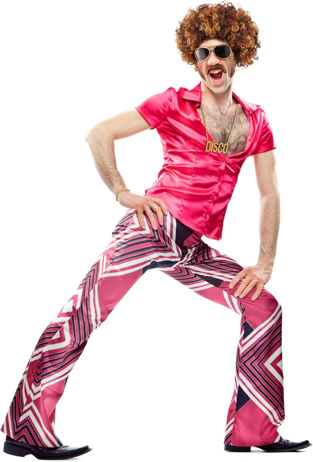 Costume afro completo: voluminosa parrucca riccia, baffi abbinati, occhiali alla moda e collana elegante per il massimo look retrò. Multiuso: perfetto per carnevale, Halloween, feste a tema, cosplay o addio al celibato. Unisex & Taglia Unica: design flessibile e materiali di alta qualità, comodo per bambini e adulti. Leggera e traspirante: fibre sintetiche per un comfort confortevole anche durante le feste lunghe. Splendido set regalo: ideale come pensierino divertente o per costumi originali e spettacoli di feste.