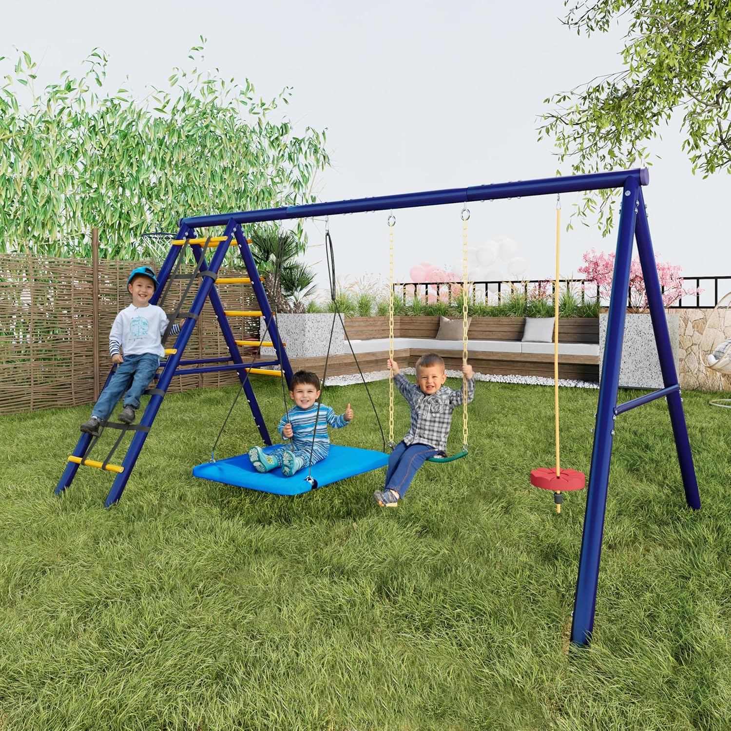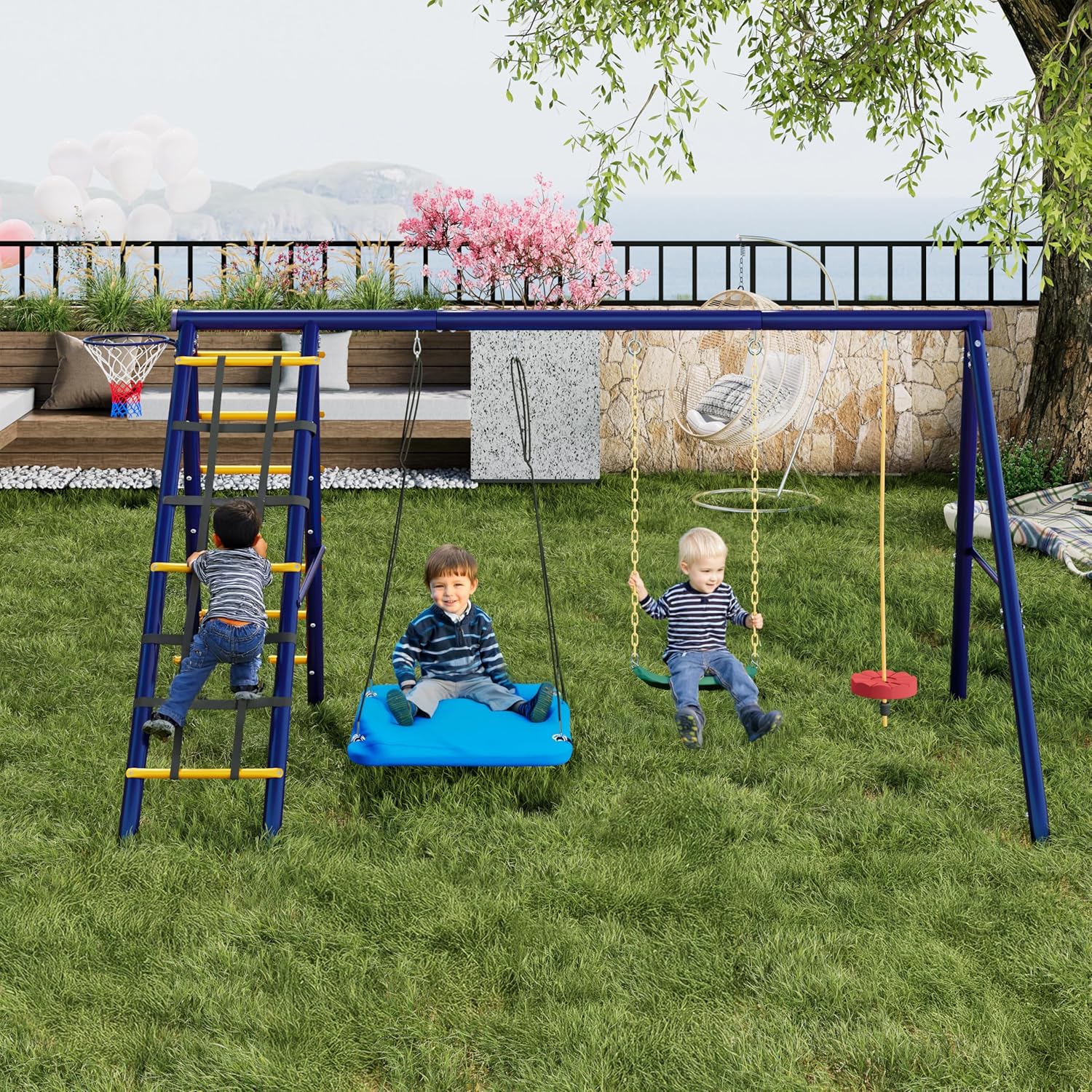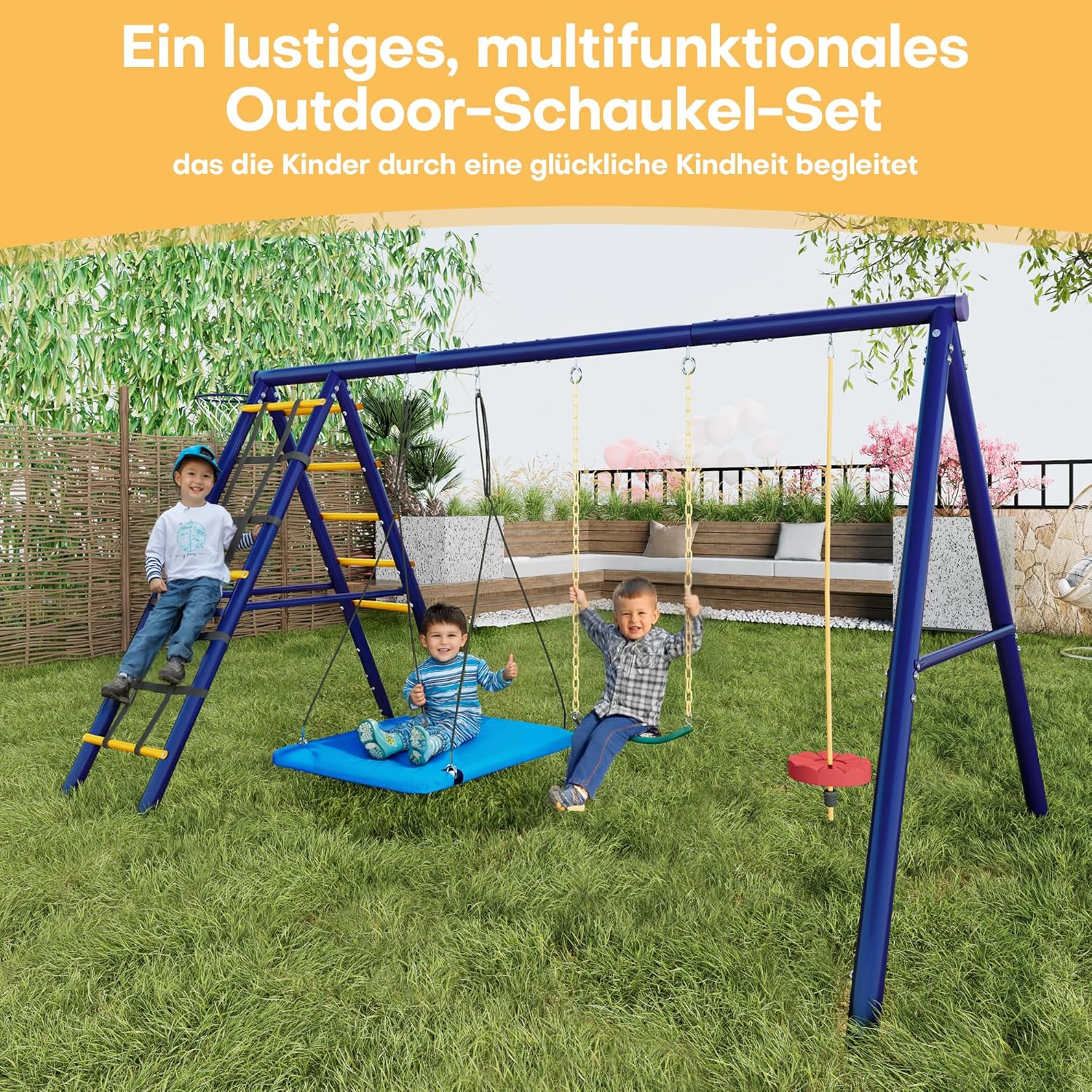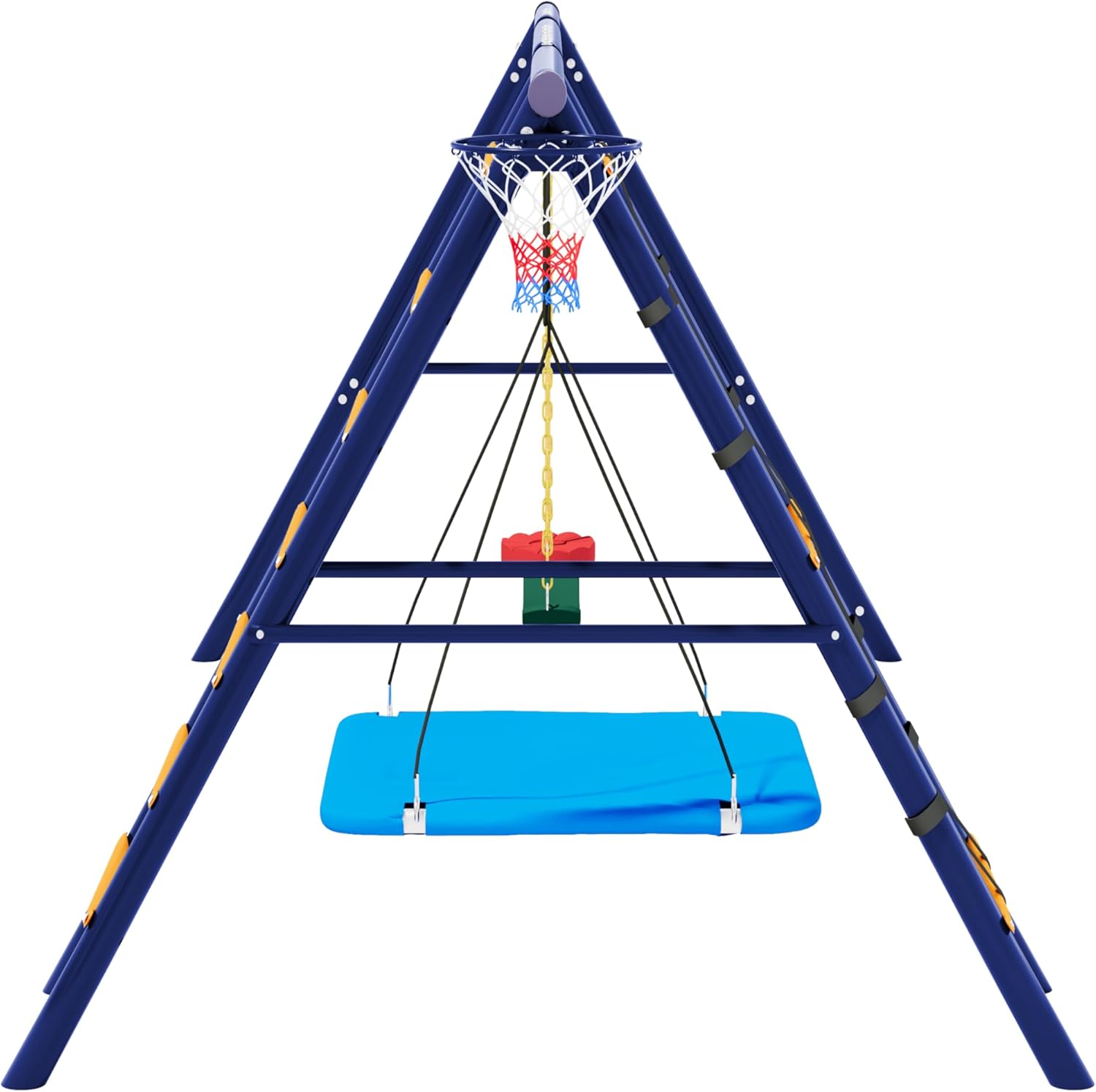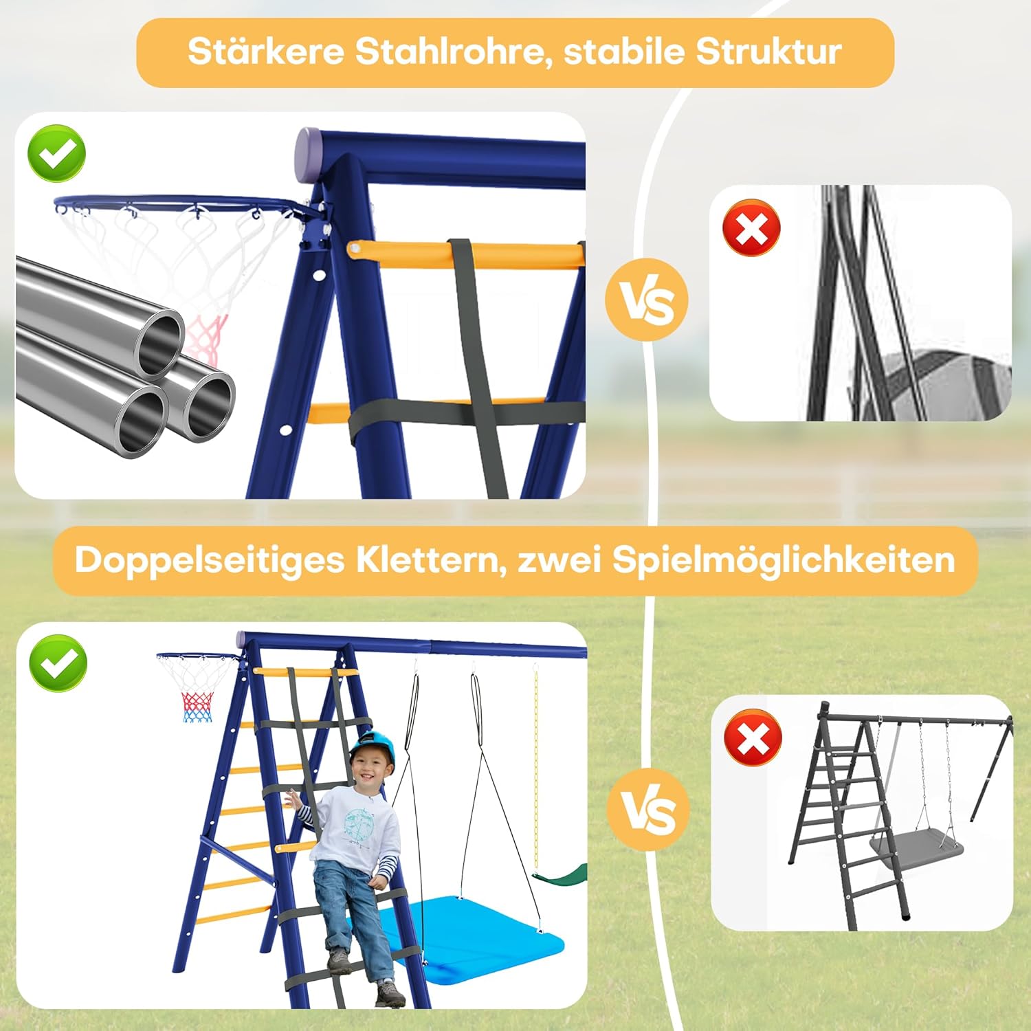 Set di altalene multifunzionali: attraverso l'integrazione di tre tipi di altalene (altalena sospesa, altalena con cinghia morbida, altalena con corda da arrampicata con piattaforma), impalcatura e canestro da basket, offre ai bambini una ricca esperienza di gioco, soddisfa le esigenze sportive di bambini di età diverse e consente loro di allenarsi felicemente. Sicuro e durevole: l'altalena è realizzata in acciaio ad alta resistenza, con una struttura stabile che resiste all'uso a lungo termine e non si deforma o danneggia facilmente. Seguire gli standard di sicurezza dei bambini per garantire la massima protezione durante il gioco e offrire ai genitori maggiore sicurezza. Promuove la crescita a tutto tondo dei bambini: diversi tipi di altalene possono allenare l'equilibrio e la coordinazione, le impalcature da arrampicata migliorano la forza muscolare e le capacità di arrampicata e i canestri da basket promuovono il lavoro di squadra e l'interesse per lo sport. Il gameplay versatile aiuta i bambini a migliorare la loro forma fisica stimolando la creatività e lo spirito di ricerca. Adatto a più persone con cui giocare: il design spazioso offre spazio a più bambini per giocare, aspettare ed evitare la competizione allo stesso tempo e migliorare le abilità sociali dei bambini e la consapevolezza della squadra. Molto adatto per cortili familiari, parchi giochi comunitari o attività scolastiche all'aperto, in modo che i bambini possano ottenere amicizia e felicità attraverso l'interazione. Installazione semplice: dotato di istruzioni di installazione dettagliate, semplici e facili da usare, i genitori possono facilmente configurare e creare rapidamente uno spazio di gioco sicuro e divertente per i loro bambini. Adatto a cortili, giardini e luoghi per eventi all'aperto, è la scelta ideale per l'intrattenimento familiare o le riunioni dei bambini.