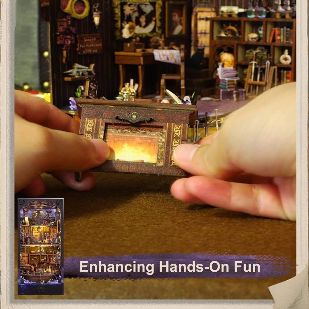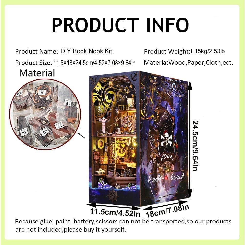 Questo set angolare per libri fai-da-te offre un'ottima esperienza di assemblaggio. È realizzato in legno di alta qualità ed è adatto a bambini dai 14 anni in su. Assemblalo con la famiglia e gli amici per una decorazione della libreria divertente e unica. Il bellissimo angolo per libri tridimensionale abbinato a una luce LED attivata da sensori dona alla tua libreria un effetto di luci e ombre da sogno. È una decorazione accattivante e creativa per il tuo soggiorno, studio o ufficio. Questo è un ottimo regalo per gli adolescenti, soprattutto per quelli che amano l'artigianato. È un regalo speciale e premuroso per compleanni, vacanze e altre occasioni. Il set contiene tutte le parti necessarie e viene fornito con istruzioni dettagliate in inglese. L'assemblaggio è semplice e non richiede attrezzi, anche i principianti possono completarlo rapidamente. L'angolo del libro finito ha una forma unica che si adatta a qualsiasi stile di casa. Non è solo una pratica decorazione per la libreria, ma anche un'aggiunta divertente e artistica alla tua casa.