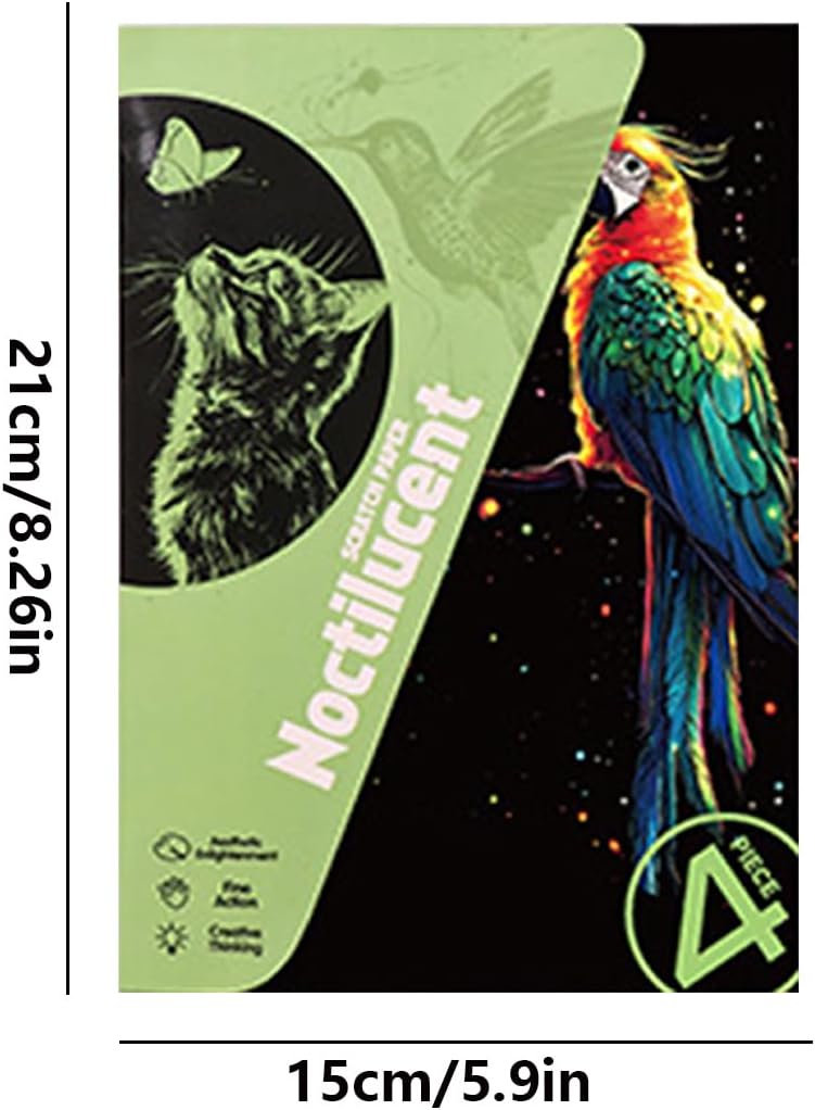 Proprietà luminose: rivela uno splendido e vibrante motivo fosforescente, basta raschiare delicatamente le linee stampate con il raschietto incluso ed esporle a luce intensa per un'esperienza visiva ipnotizzante Divertimento senza fine: i bambini possono liberare la loro creatività con la nostra incisione paesaggistica in formato A4, offrendo una deliziosa esperienza con motivi artistici animali per una maggiore esplorazione e divertimento Incoraggia l'esplorazione artistica: stimola l'esplorazione artistica con la nostra carta artistica, incoraggiando i bambini a utilizzare materiali per attività artigianali ed esercitare la coordinazione occhio-mano per una crescita educativa Materiale sicuro e ampio utilizzo: nessun odore o sostanze nocive rendono questa versatile carta artistica perfetta per un uso sicuro e ampio da parte di bambini, adolescenti e adulti Regalo: aggiungi un tocco artistico ai tuoi incontri con questa carta artistica, rendendola un regalo creativo per esprimere auguri alla tua famiglia e agli amici