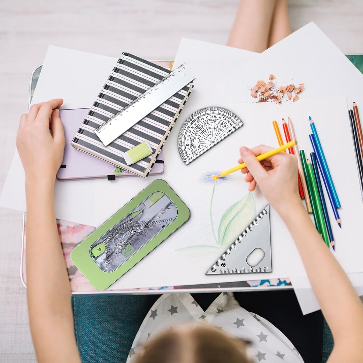 Precisione migliorata: progettato per precisione e creatività, il nostro set di geometrie include strumenti di alta qualità adatti a varie esigenze di disegno. Ideale per gli studenti che desiderano migliorare le proprie capacità di disegno Funzioni multiple: un set che include strumenti multifunzionali versatili e altri must-have per il disegno, ideali per soddisfare varie esigenze di disegno con comodità e praticità Durabilità assicurata: realizzato con materiali di alta qualità, questo set di geometrie vanta una struttura forte e robusta che garantisce misurazioni affidabili e precise, rendendolo strumento ideale sia per professionisti che per studenti Comodo da trasportare: non perdere più i tuoi strumenti di geometria. Trasportali e organizzali facilmente con il nostro set di geometrie. Perfetto per studenti e professionisti che necessitano di una soluzione di archiviazione compatta e ordinata Necessità di miglioramento: il nostro set di geometrie migliora la precisione nei concetti e nelle misurazioni geometriche; una necessità per gli studenti che avanzano nella loro comprensione della matematica