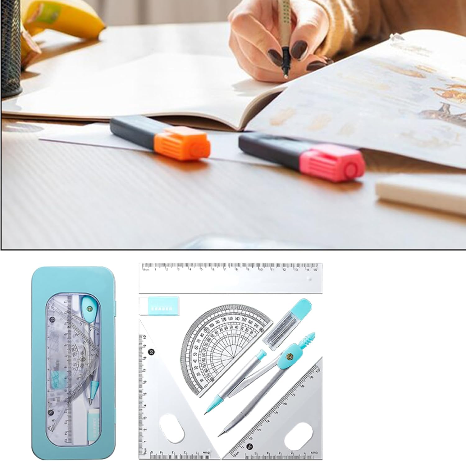 Migliora le capacità di disegno: strumenti di alta qualità, adatti a varie esigenze di disegno, con un design professionale, sono perfetti per gli studenti che desiderano migliorare la propria precisione e creatività Multifunzionale: dotato di una serie di strumenti multifunzionali e altri elementi indispensabili per il disegno, questo set offre un'esperienza di disegno semplice ed efficiente per diversi usi Utilizzo a lungo termine: il nostro set di geometrie è costruito per durare, utilizzando solo i materiali più resistenti e robusti disponibili per garantire strumento affidabile e duraturo per misurazioni e calcoli precisi, rendendolo la scelta ideale sia per professionisti che per studenti Comodo da trasportare: non perdere più i tuoi strumenti di geometria. Trasportali e organizzali facilmente con il nostro set di geometrie. Perfetto per studenti e professionisti che necessitano di una soluzione di archiviazione compatta e ordinata Indispensabile per l'apprendimento: questo set di geometria, una scelta ideale per gli studenti, aiuta ad apprendere i concetti matematici necessari, rendendolo una necessità per l'inizio della scuola