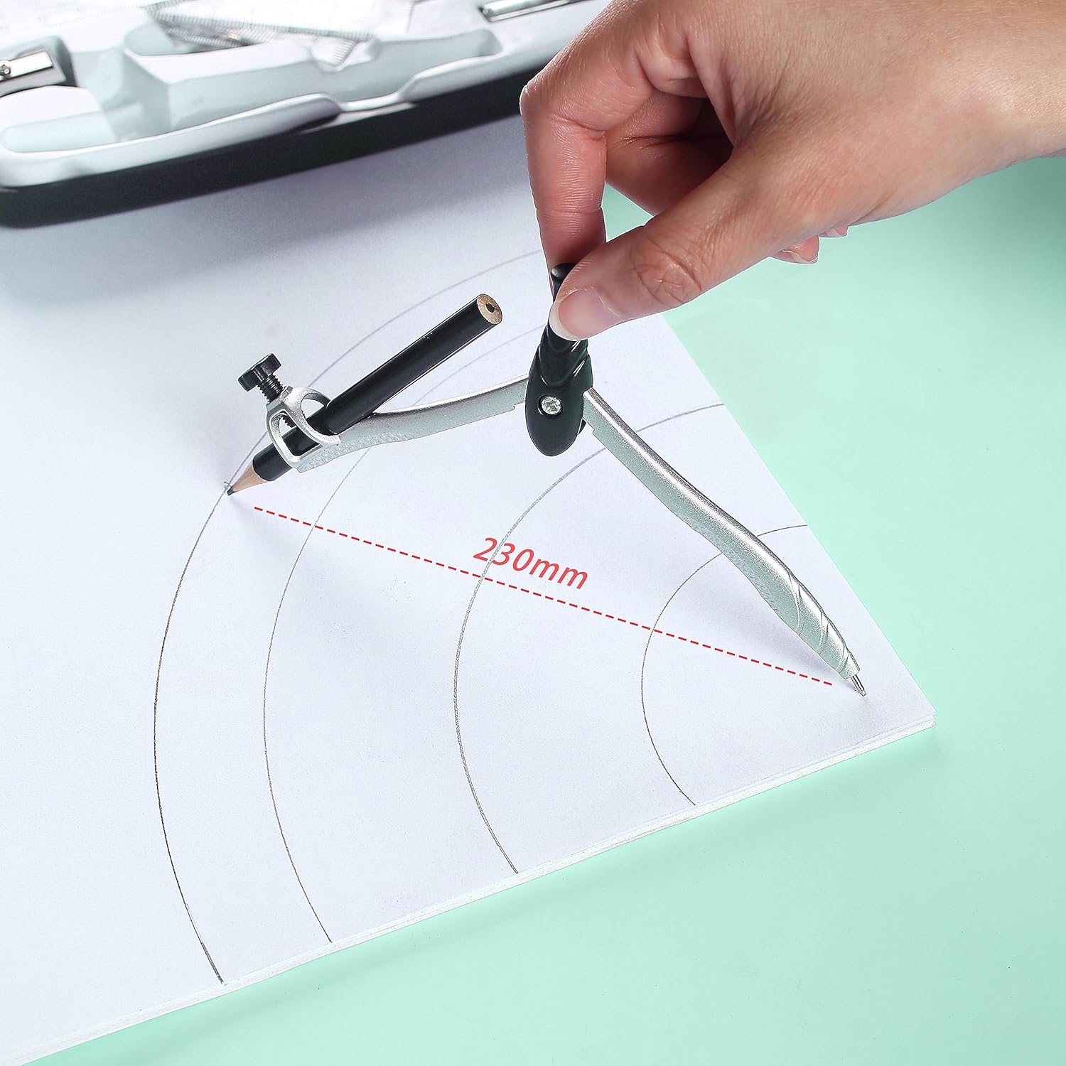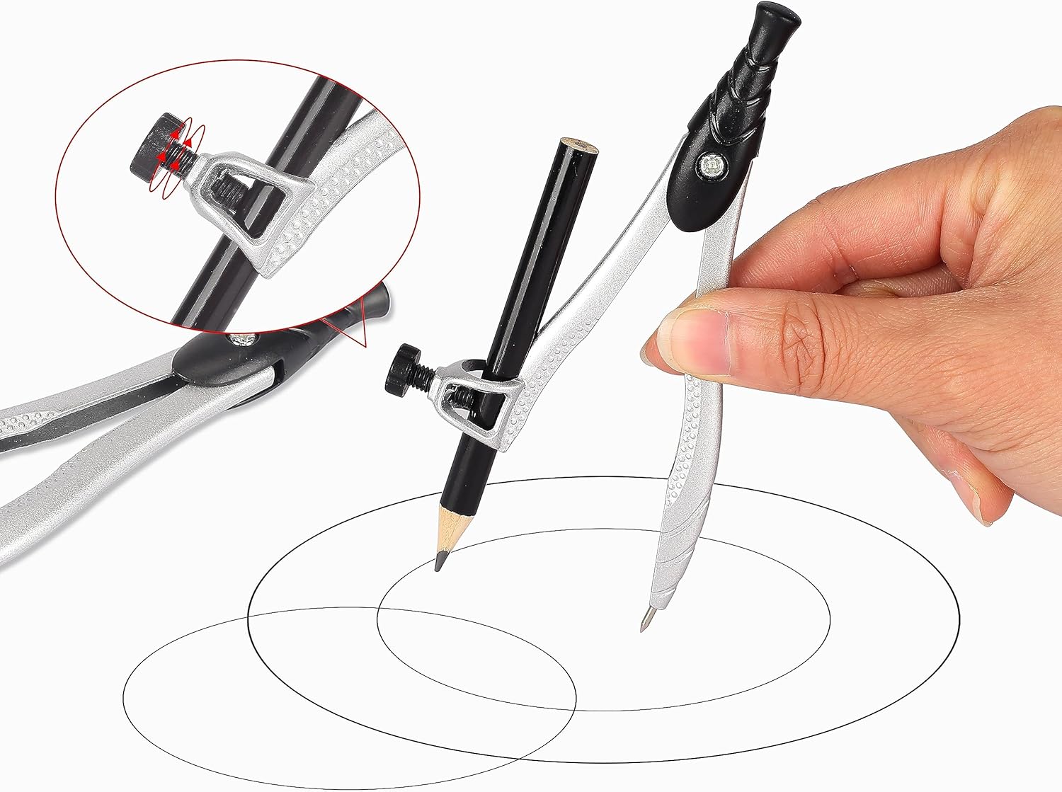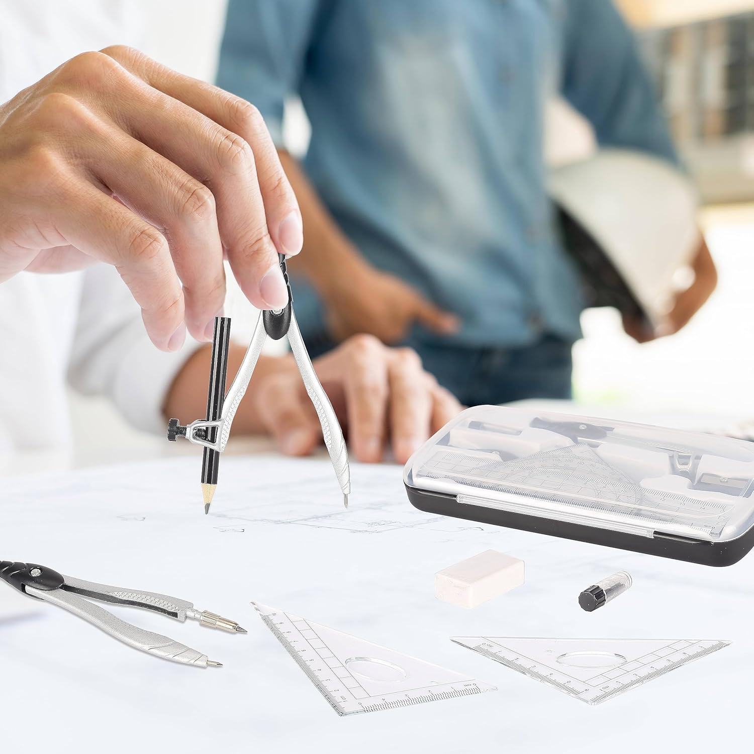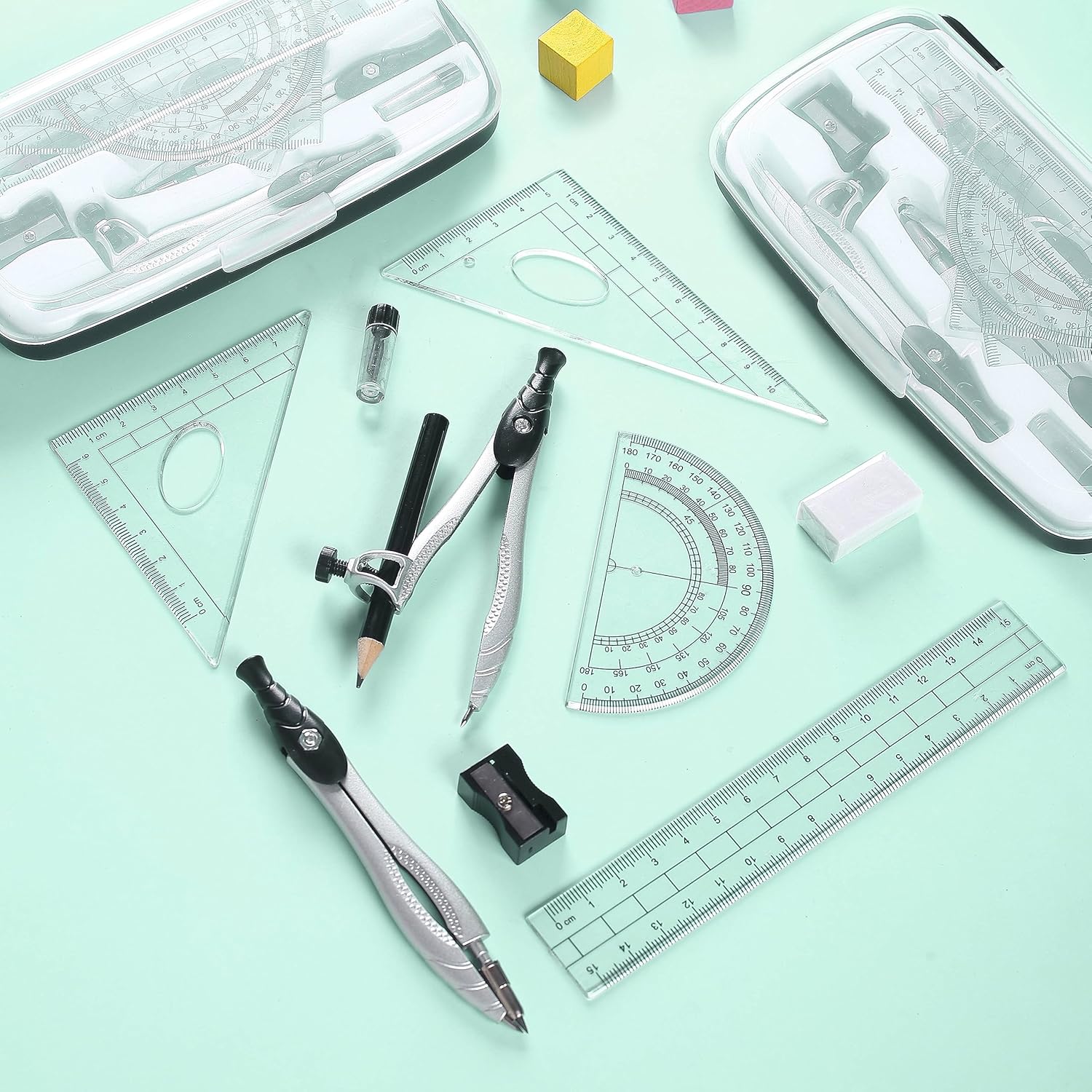 Il kit di geometria da 10 pezzi include: 2 bussole in metallo blu, 2 triangoli (45° e 30°/60°), righello da 6", goniometro da 4", matita, temperamatite, gomma, ricarica di piombo per studenti e disegni tecnici ♛ Set di geometria bussola professionale: le bussole in metallo resistenti non si piegano o si piegano durante l'uso, la testa ergonomica della bussola è comoda da tenere, la bussola universale funziona con qualsiasi matita o penna di dimensioni standard, righelli, triangoli e il goniometro presenta graduazioni per una facile identificazione. PERFETTO PER BAMBINI E ADULTI: questo set di goniometro e bussola è perfetto per studenti, insegnanti, esperti di matematica, architetti, ingegneri, artisti, designer di qualsiasi livello. Un buon goniometro e bussola per insegnanti e studenti. Può essere utilizzato a scuola, in ufficio, a casa o al lavoro. Con una scatola di immagazzinaggio resistente, facile da trasportare e riporre. Regalo perfetto: è anche un regalo perfetto per la tua famiglia e i tuoi amici, facile da portare in classe e riporre in classe e a casa. È un'ottima scelta regalo per il rientro a scuola, Natale, Black Friday ♛ Servizio di soddisfazione del cliente al 100%: questa è la nostra garanzia incondizionata! Se non sei soddisfatto al 100% del tuo acquisto, ti promettiamo di offrirti un rimborso completo e tempestivo o di spedirti un prodotto sostitutivo, così potrai acquistare in tutta tranquillità.