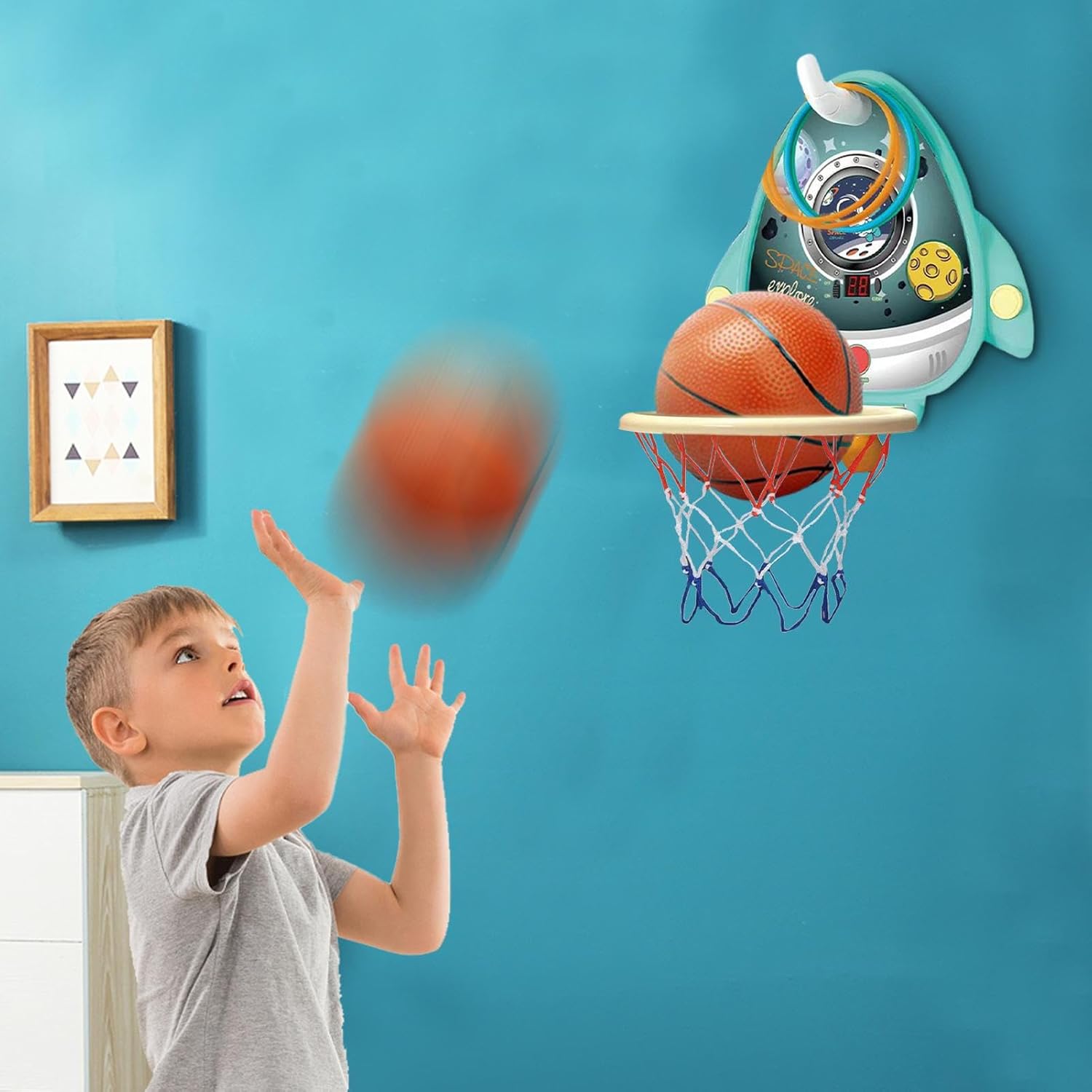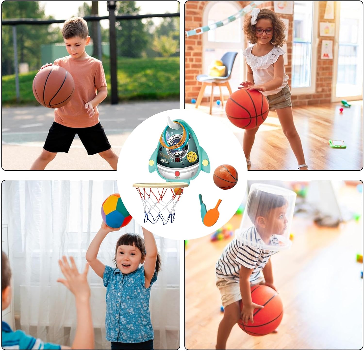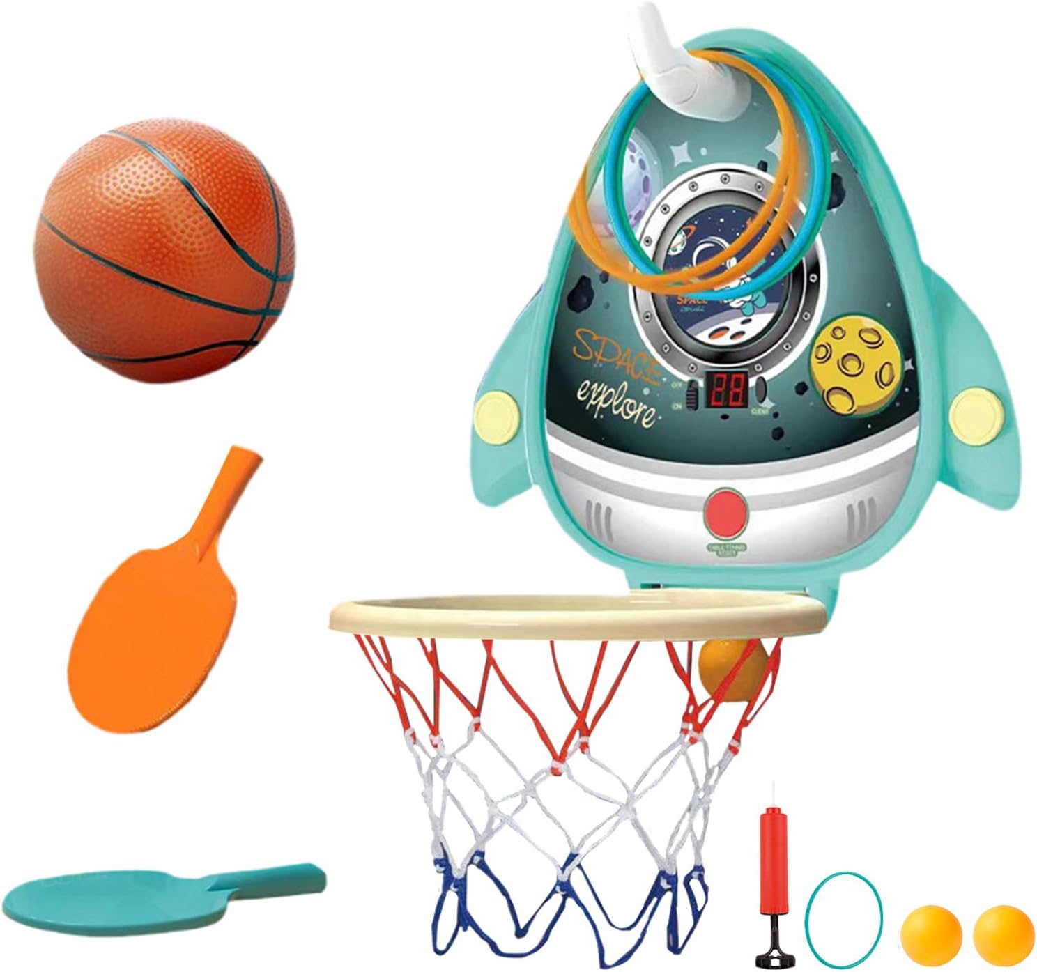 Gioco competitivo migliorato: il tabellone segnapunti elettronico interattivo migliora il valore 'intrattenimento offrendo varie opzioni di gioco divertenti, mentre il versatile design 4 in 1 include palla da basket, anello e pallina da , ideale per bambini dai 3 ai 6 anni Potenziale di crescita: instilla l'amore per il basket nel tuo bambino con un set di canestri regolabile. Man mano che il tuo bambino avanza nella sua infanzia, l'altezza del supporto si adatta alla sua crescita Installazione semplice: dotato di una potente ventosa, non è necessario praticare fori; il design pieghevole lo rende facile da riporre quando non in uso, risparmiando spazio, adatto per uso interno, facilmente installabile su qualsiasi esterno liscio Materiale resistente: il robusto design strutturale può resistere ai giochi attivi dei bambini, realizzato in materiale ABS sicuro per garantire la sicurezza dei bambini durante il gioco, non facilmente danneggiabile dopo un uso a lungo termine di gioco attivo: il nostro set di canestri da basket per bambini va oltre il semplice miglioramento e capacità motorie e a forma fisica. Incoraggia i bambini a comunicare e a legarsi con gli altri in campo, promuovendo un sano sviluppo sociale insieme alla coordinazione occhio-mano