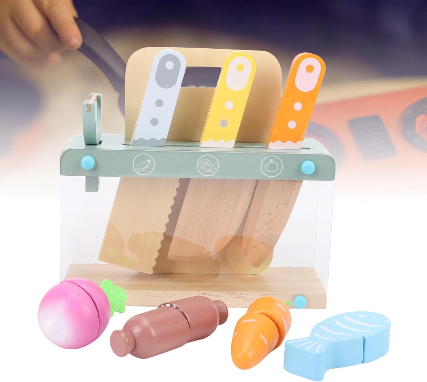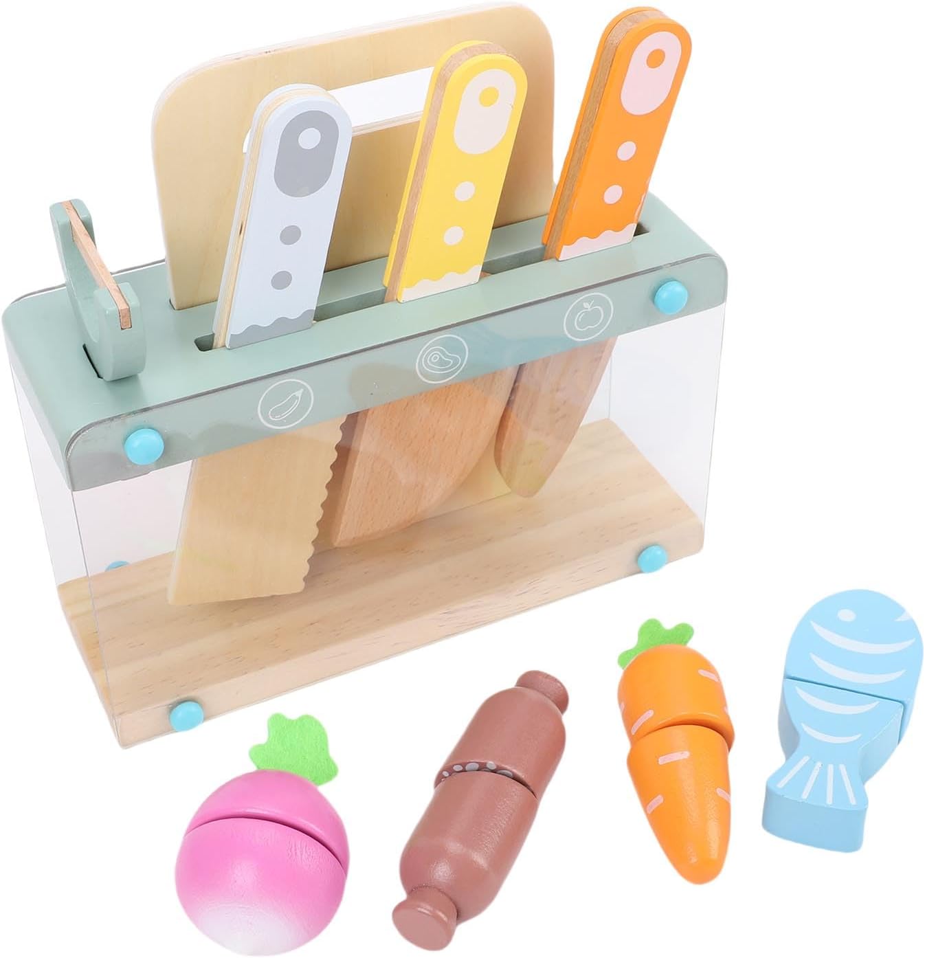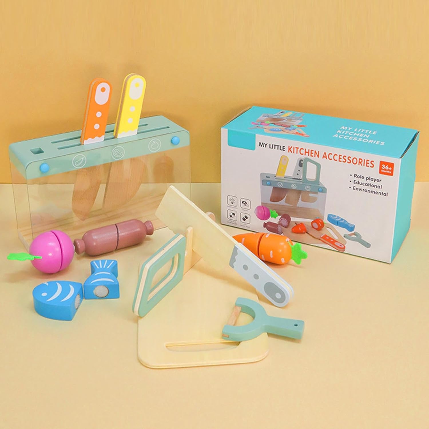[Gioco creativo] Incoraggia avventure culinarie fantasiose con un set da gioco completo da cucina in legno. [Sviluppo delle abilità] Migliora le capacità motorie e la coordinazione attraverso attività di taglio coinvolgenti. [Materiali sicuri] Realizzato in resistente legno di faggio, progettato per consentire ai giovani chef di esplorare in modo sicuro. [Apprendimento interattivo] Promuove la comunicazione e il gioco cooperativo rafforzando i legami familiari. [Colorato e divertente] Pezzi di cibo vivaci introducono il linguaggio precoce e la consapevolezza alimentare in modo coinvolgente.