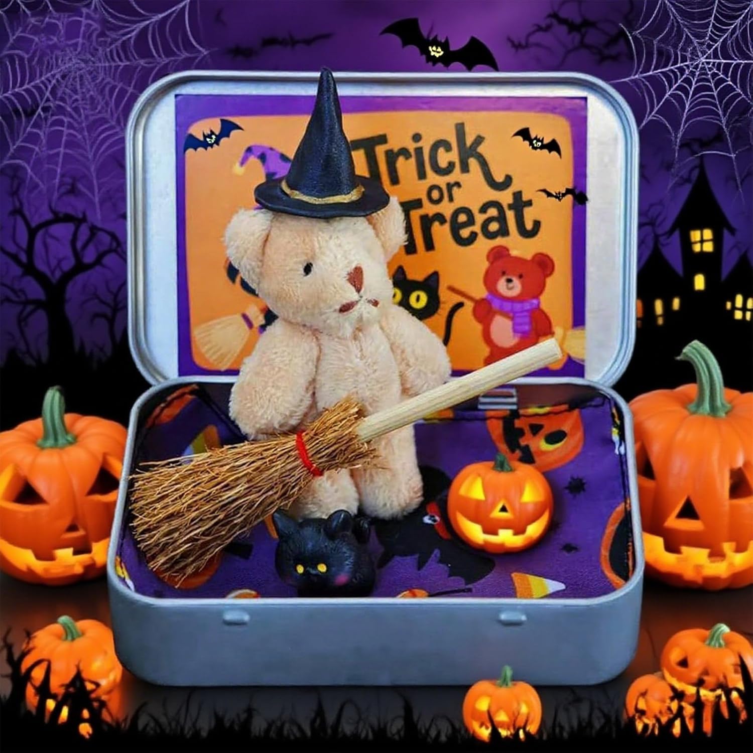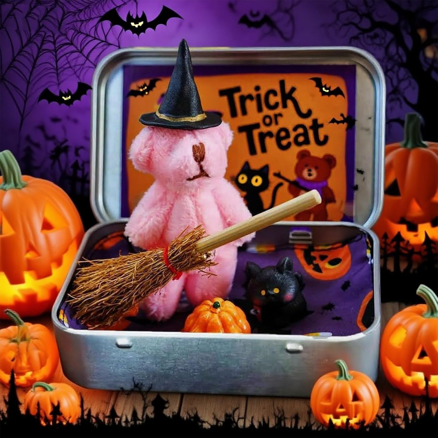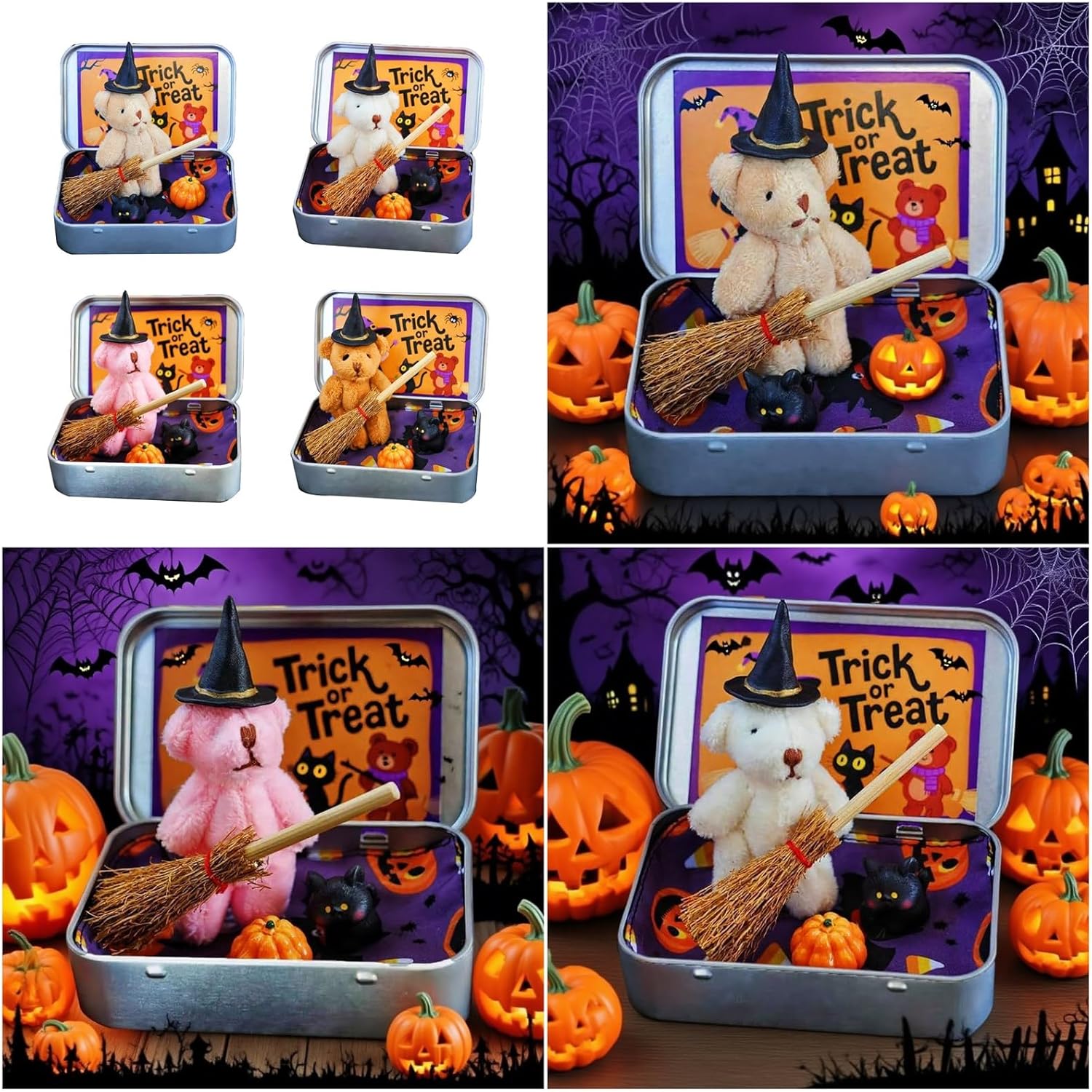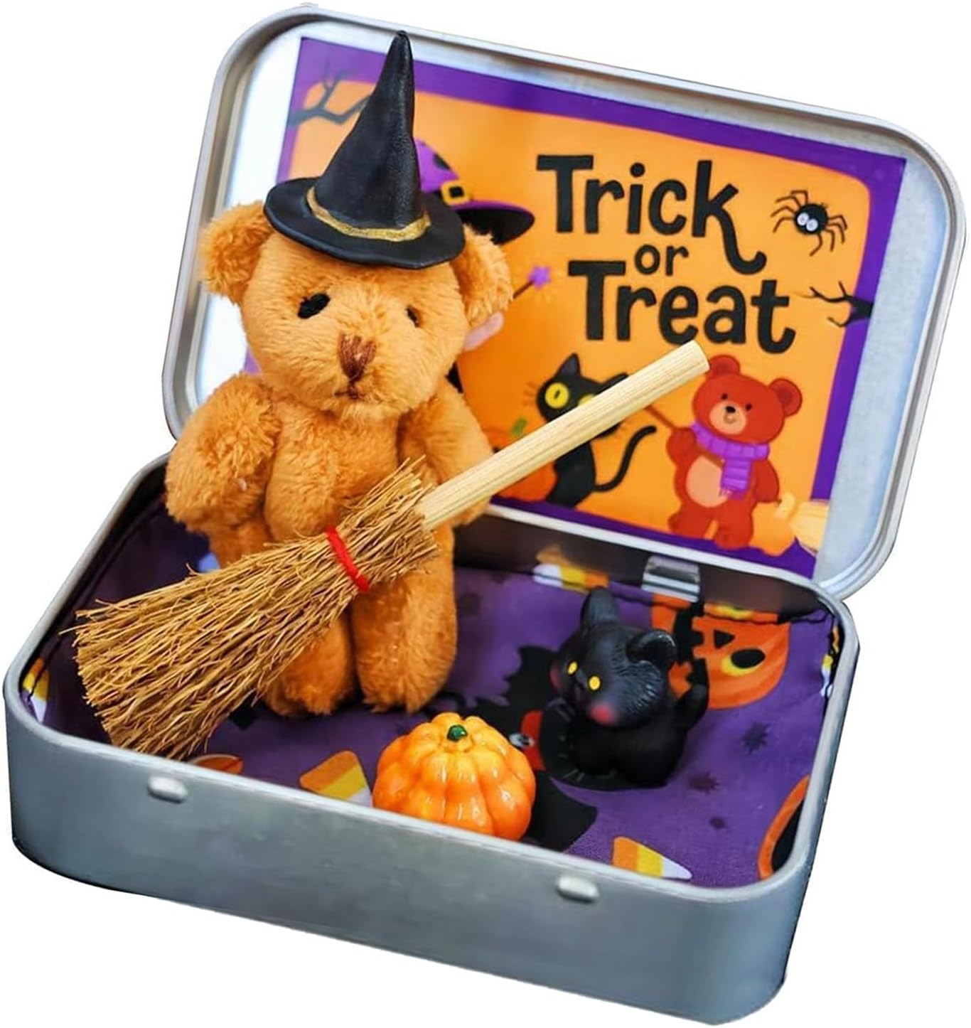 Festeggia Halloween con questo adorabile set di peluche da mago in miniatura, contenente un orsetto di peluche, un comodo palo per la pulizia e un gatto giocoso, perfetto per decorazioni per feste e regali. Unisci fascino festivo e comfort, questo set multifunzionale funge da souvenir decorativo e da abbracciare per indimenticabili celebrazioni di Halloween. Esponi l'attraente orsetto di peluche su scrivanie, scaffali o tavoli da festa a casa tua o aggiungi un tocco di fantasia allo scambio di regali. Realizzato con tessuto di peluche di alta qualità e alloggiato in una scatola di ferro decorativa, questo colore da collezione in quattro colori per diversi concetti estetici di Halloween è per le vacanze. amanti, collezionisti e cercatori di regali alla ricerca di una sorpresa stagionale o memorabile unica per la famiglia