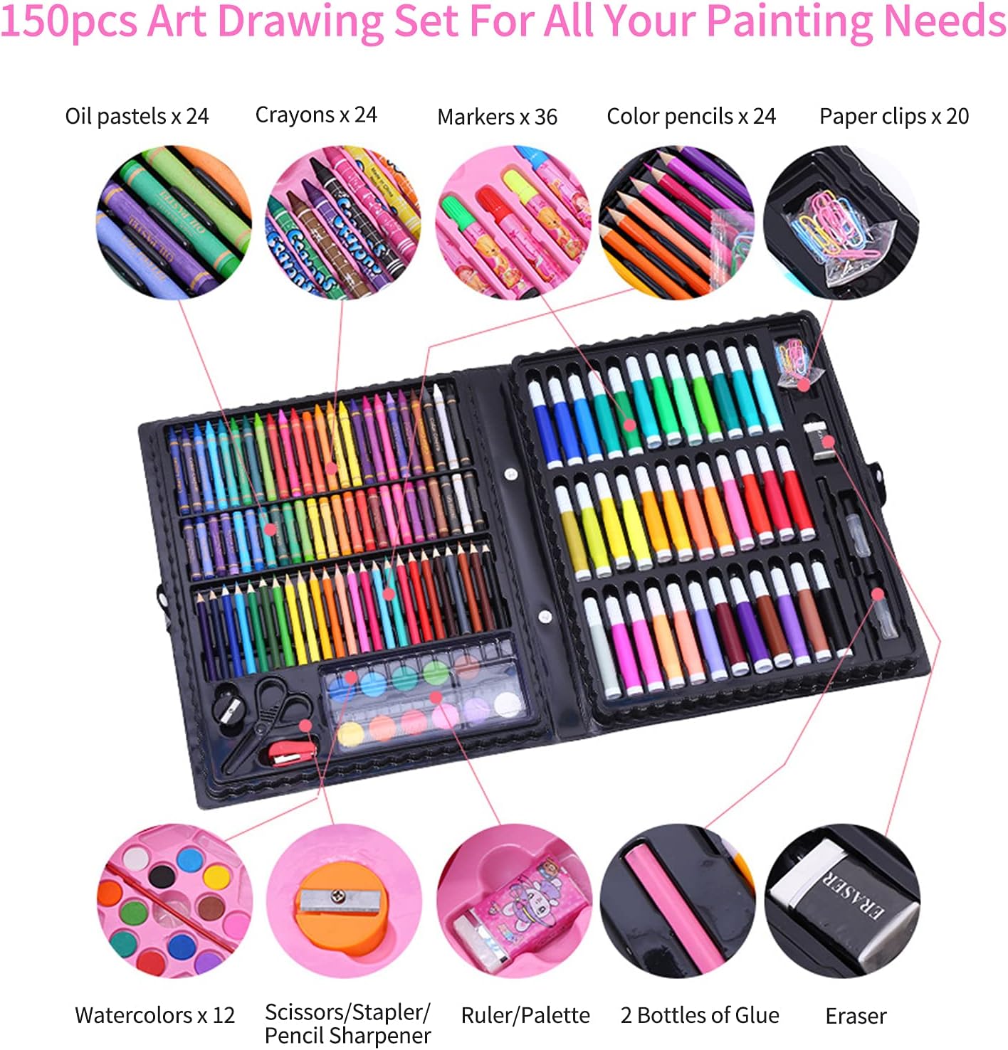 ✅ Сезопасный: изготовлен из материала, безвредного для организма. ✅ изысканнай упаковка: Внесний вид продукта модный, а корпупус коробки прочный, хтобы удовлетвориту разлии іные потребности в рисованииииииии. ✅ Разнообразие цветов ветов: саправка ручки имееет однороднуй текстуру и сильное сцеплениее цвета, что делаает процесс рисованиийййй болеее е плавным. ✅ ирокий ассортимент наборов для рисований: Вклигочай 24 маслиные палокки, 24 мелка, 36 акварелельныхихихих Per il trasporto. к, 24 цветных карандаса, 20 скрепок, 12 видов гуасии, ногуницы/степлер/точилка длиндасей, линеййка /палии тра, два флакона клей и ластик. ✅ Адовлетворение разлиных потребностей в рисованиииииии: Вы мозлете рисоватрем, акварелельйй, илллистрррррррро. ациии и так далее.